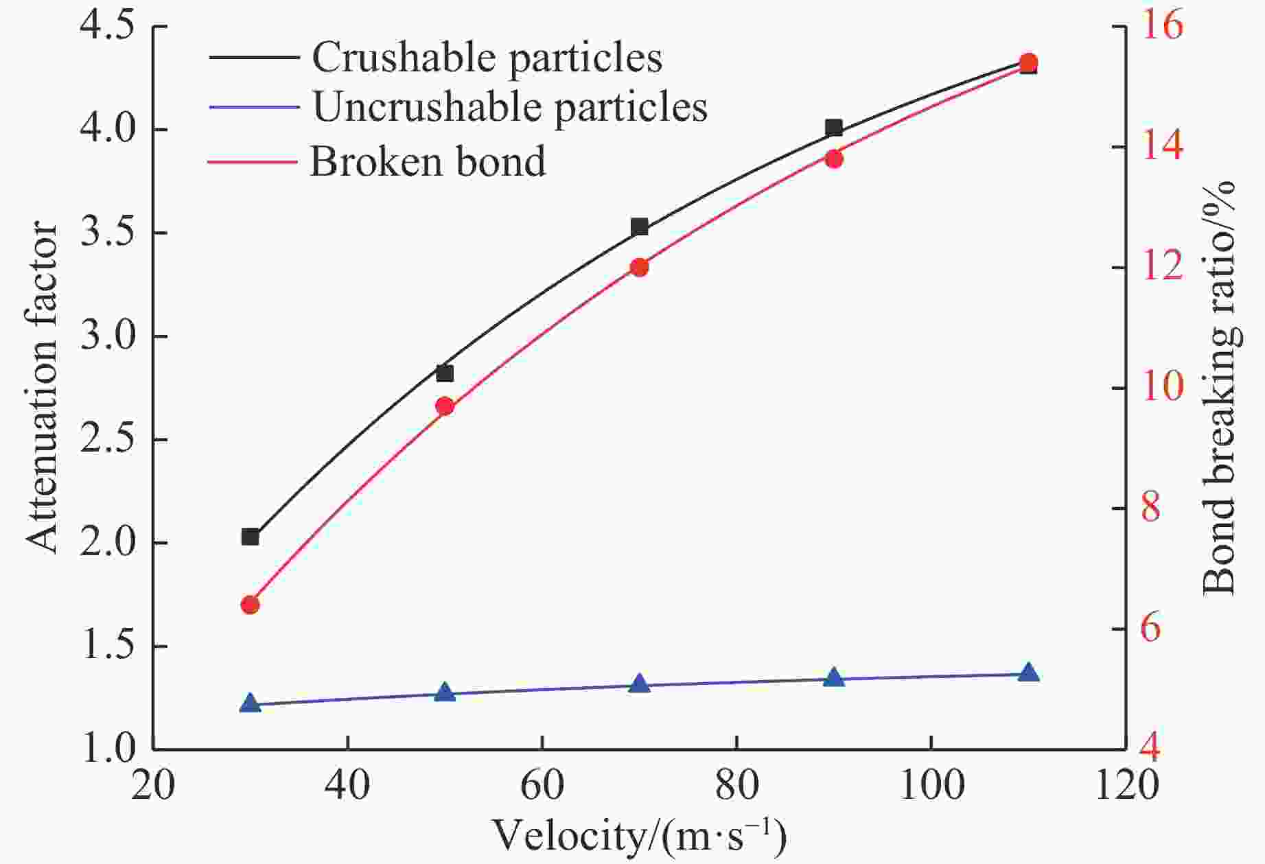 Figure  8.  Attenuation laws of stress wave when particles are broken/unbroken