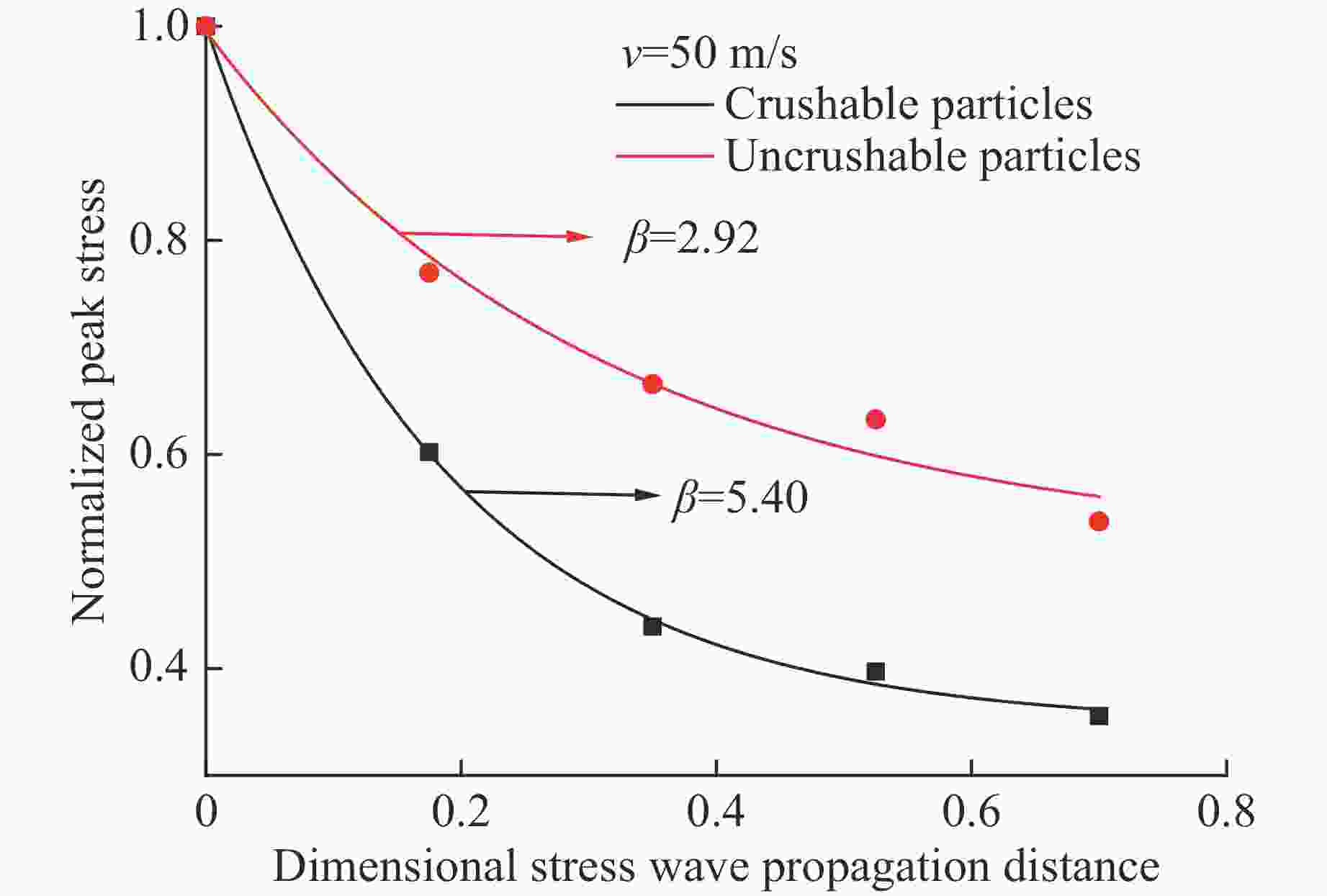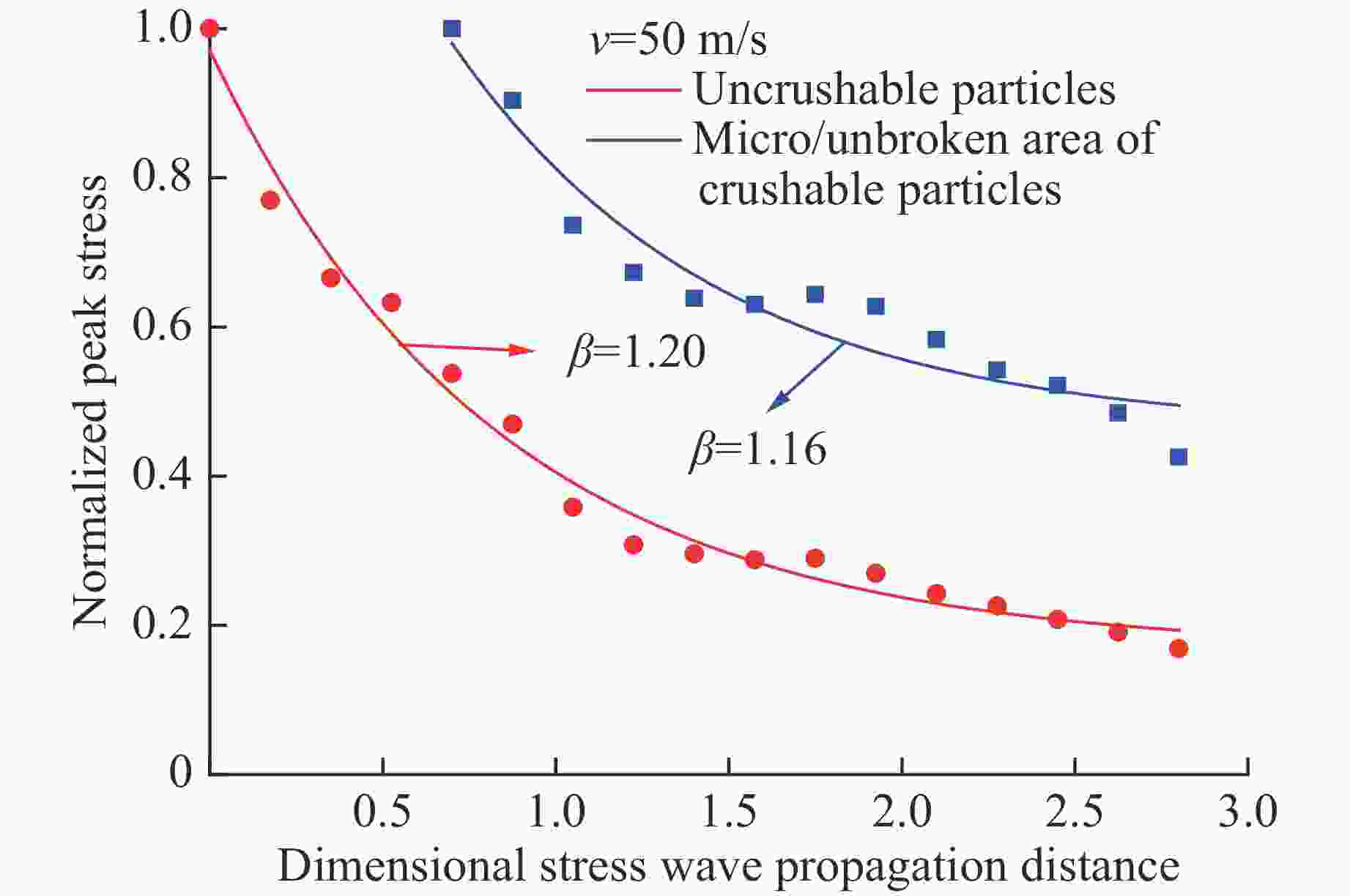 图  应力波在颗粒破碎/不破碎时的衰减规律