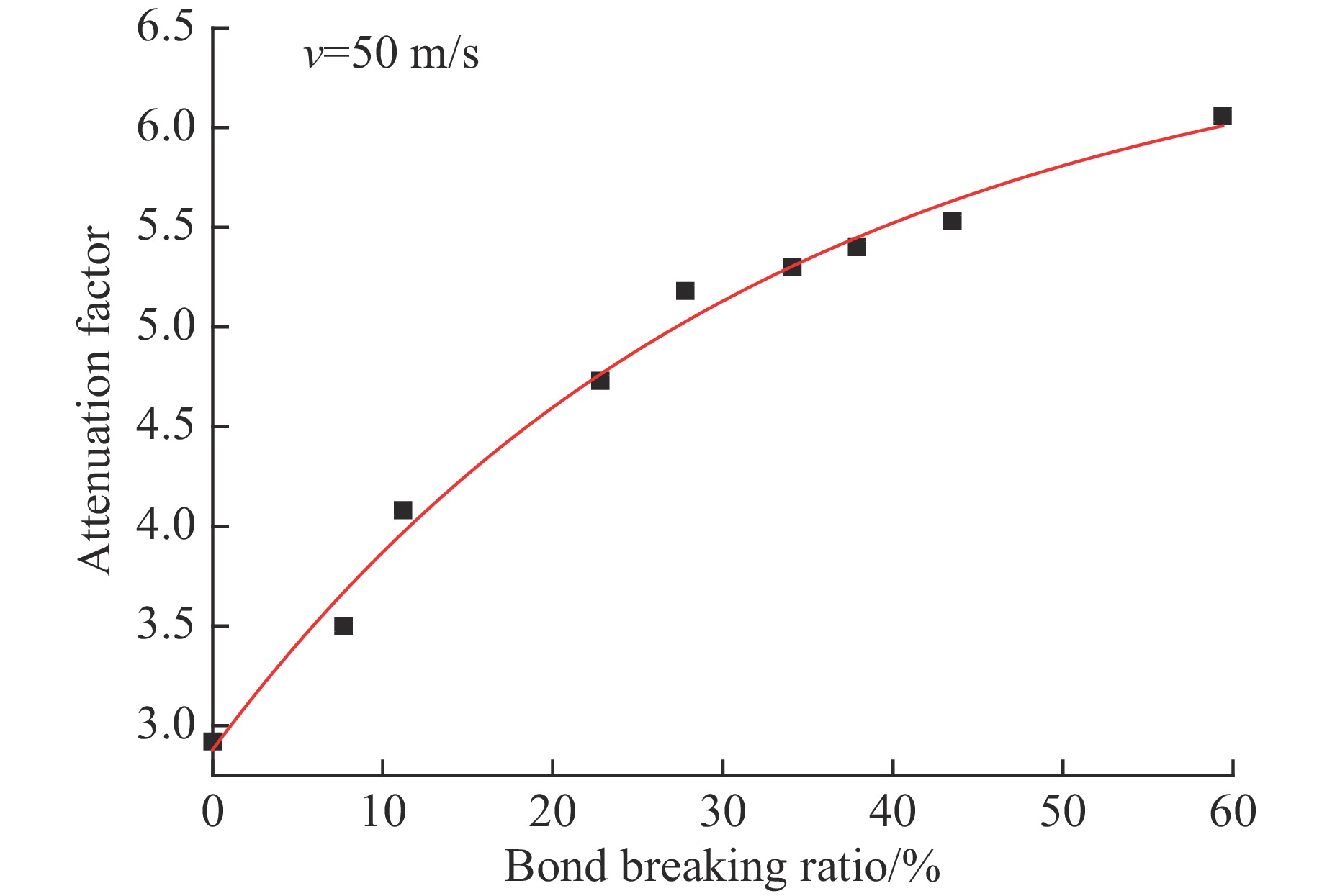 Figure  14.  Relationship between attenuation factor, bond breaking ratio and loading velocity