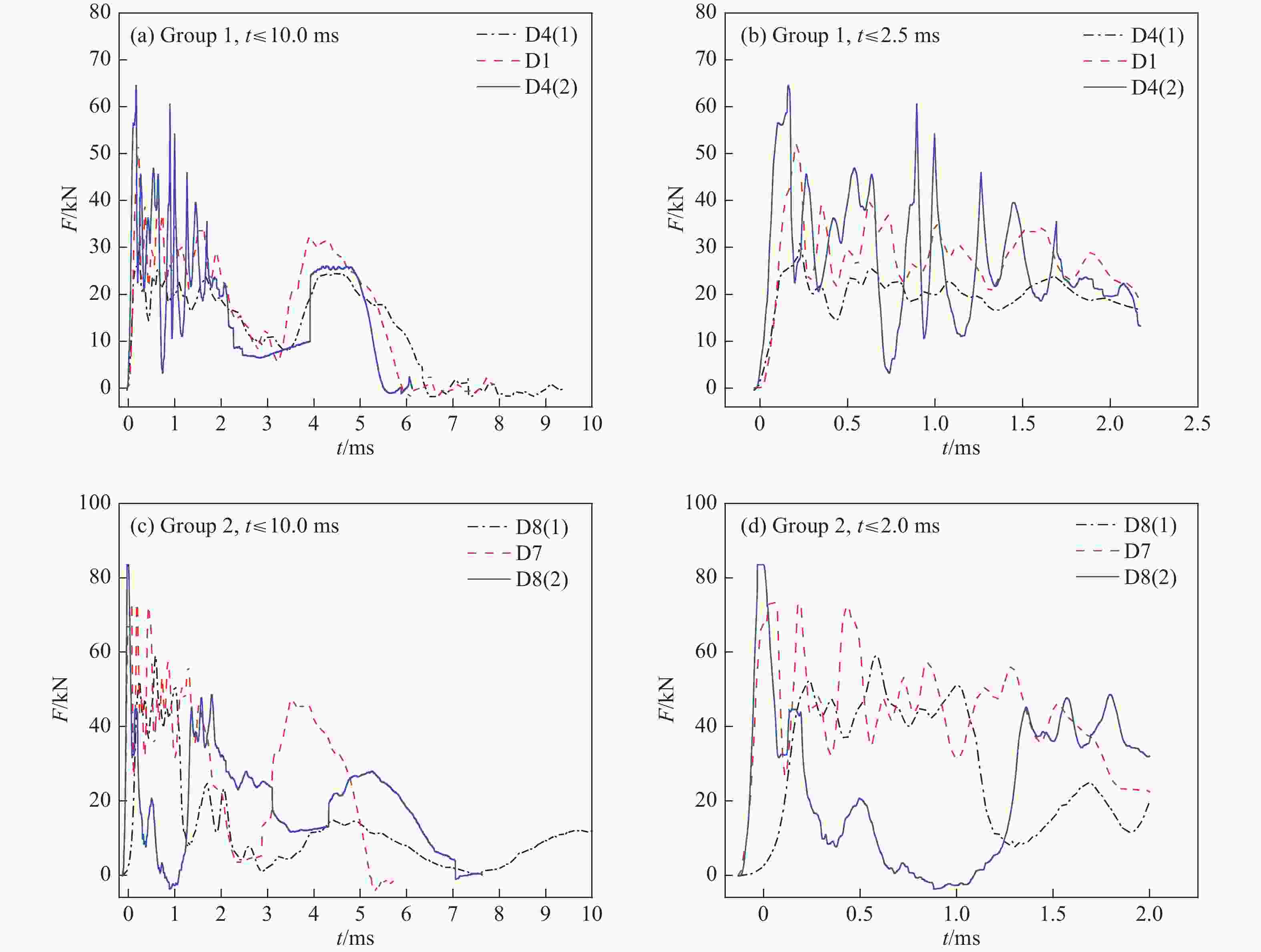 Group No. dt/mm Serial No. d/mm ds/mm Glass PVB Glass Air Glass PVB Glass 1 41.04 D4(1) 6 1.52 8 6 8 1.52 10 6 41.04 D1 8 1.52 8 6 8 1.52 8 8 41.04 D4(2) 10 1.52 8 6 8 1.52 6 10 2 49.04 D8(1) 8 1.52 10 6 10 1.52 12 8 49.04 D7 10 1.52 10 6 10 1.52 10 10 49.04 D8(2) 12 1.52 10 6 10 1.52 8 12 表 2 方案2结构配置