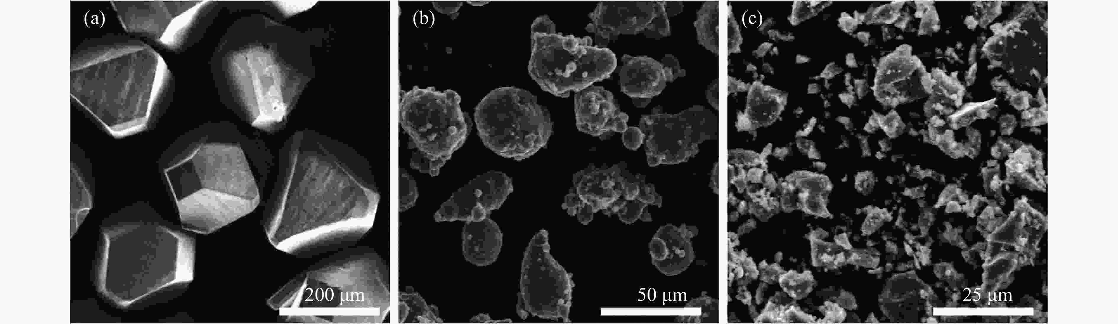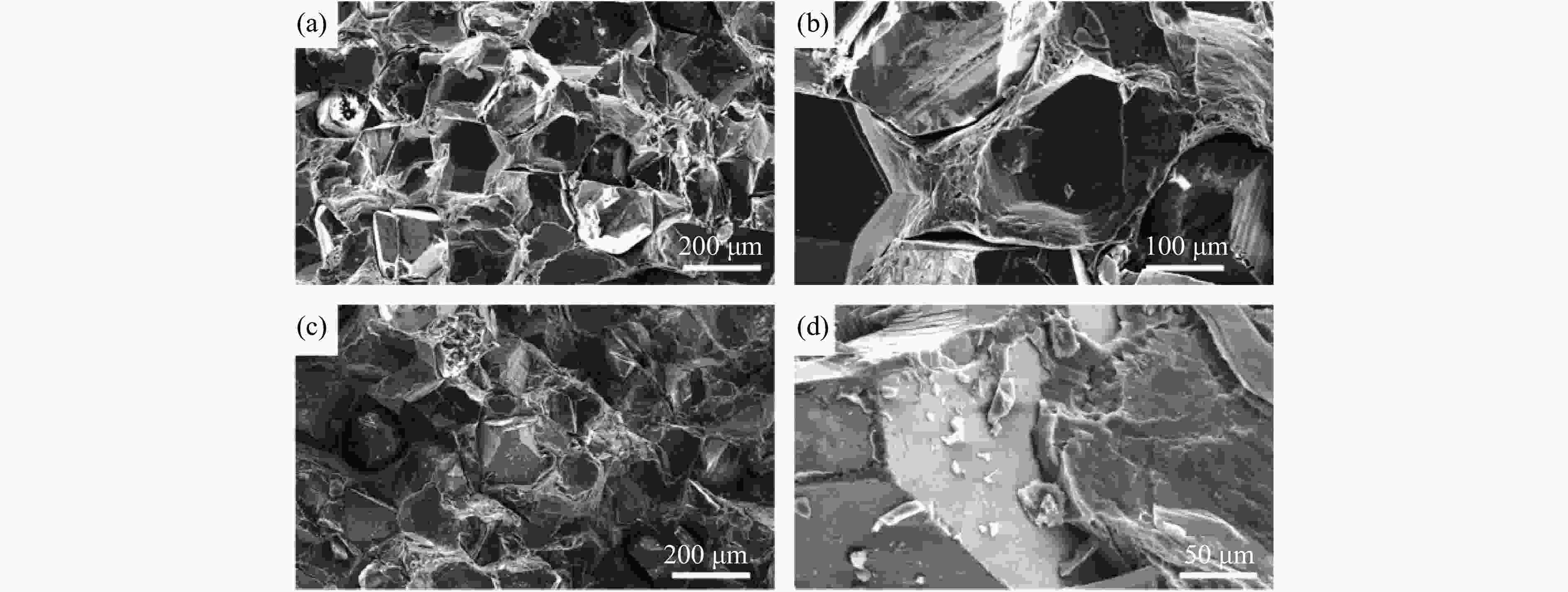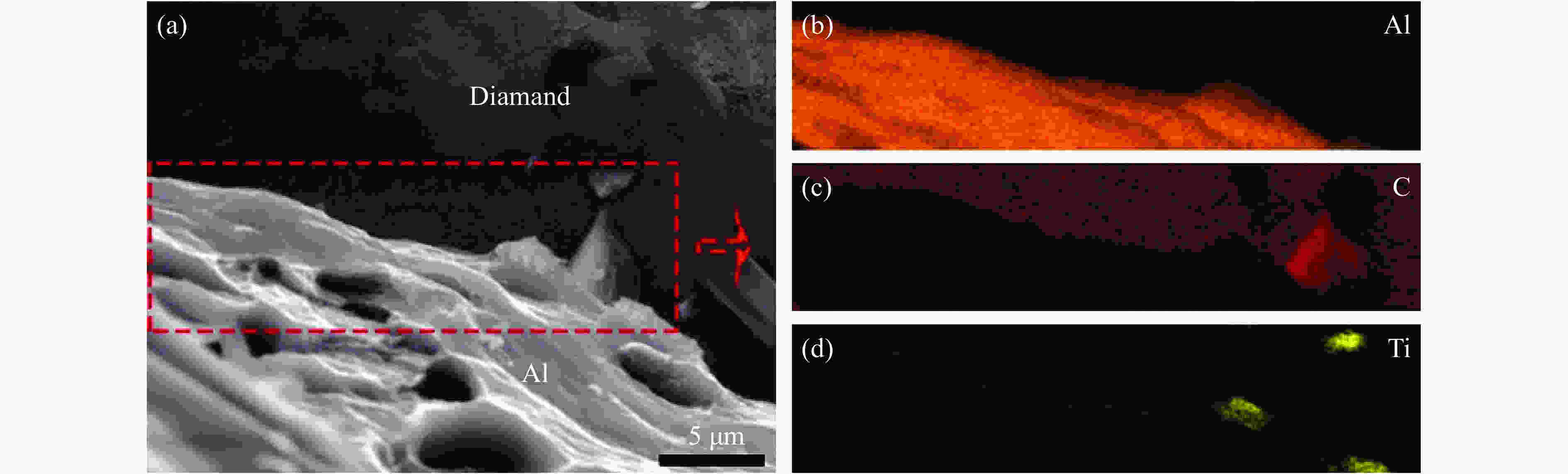 摘要: 以纯铝为基体,使用体积分数为50%的200 μm镀钛金刚石为填充材料,利用高温高压粉末冶金法在压力3 GPa、温度700 ℃条件下烧结10 min得到热导率为529 W/(m·K)的高导热金刚石/铝复合材料。通过光学显微镜和X射线衍射对镀钛金刚石的形貌和物性进行表征,并利用激光导热仪、扫描电镜和热膨胀仪对制备的金刚石/铝复合材料进行性能测试。研究发现,使用放电等离子体烧结制备的镀钛金刚石镀层成分主要是单质钛,并伴有少量碳化钛生成。通过对比在相同制备条件下没有经过镀覆处理的金刚石发现,使用镀钛金刚石能够有效提高金刚石/铝复合材料的热导率。同时,高温高压法能够制备全密度的金刚石/铝复合材料,有效提高铝基体与金刚石的界面结合,减少界面空隙,进而有效提高复合材料的热导率。相比真空热压、放电等离子体烧结、气压熔渗等常规方式,高温高压粉末冶金制备方式具有样品制备周期短(数分钟)的特点。此项研究有助于拓宽高导热复合材料的制备方式,同时能够扩大国内六面顶压机的产品种类,为其他金属基体导热复合材料的制备提供技术支持。Abstract: Diamond/aluminum composites with a high thermal conductivity of 529 W/(m·K) were prepared using pure aluminum as the matrix and 50 vol.% Ti-coated 200 μm diamond as the filling material within10 min by high temperature (700 ℃) and high pressure (3 GPa) powder metallurgy method. The morphology and properties of Ti-coated diamond were characterized by optical microscope and X-ray diffraction. The properties of the prepared diamond/aluminum composite were tested by laser thermal diffusion instrument, scanning electron microscope and thermal expansion instrument. It is found that the Ti-coating diamond prepared by spark plasma sintering is mainly composed of titanium and a small amount of titanium carbide. Compared with raw diamond under the same preparation conditions, the Ti-coated diamond could effectively improve the thermal conductivity of diamond/aluminum composites. Meanwhile, the high temperature and high pressure method can be used to prepare the full density of diamond/aluminum composites, which can effectively improve the interface bonding between aluminum matrix and diamond particles, reduce the interface spaces and effectively improve the thermal conductivity of composites. Compared with the conventional methods such as vacuum hot pressing, spark plasma sintering and gas pressure infiltration, the sample preparation period of high temperature and high pressure powder metallurgy is short (several minutes). This research is helpful to expand the preparation method of high thermal conductivity composites, expand the product types of domestic six-sided top press, and provide technical support for the preparation of other metal matrix thermal conductive composites.