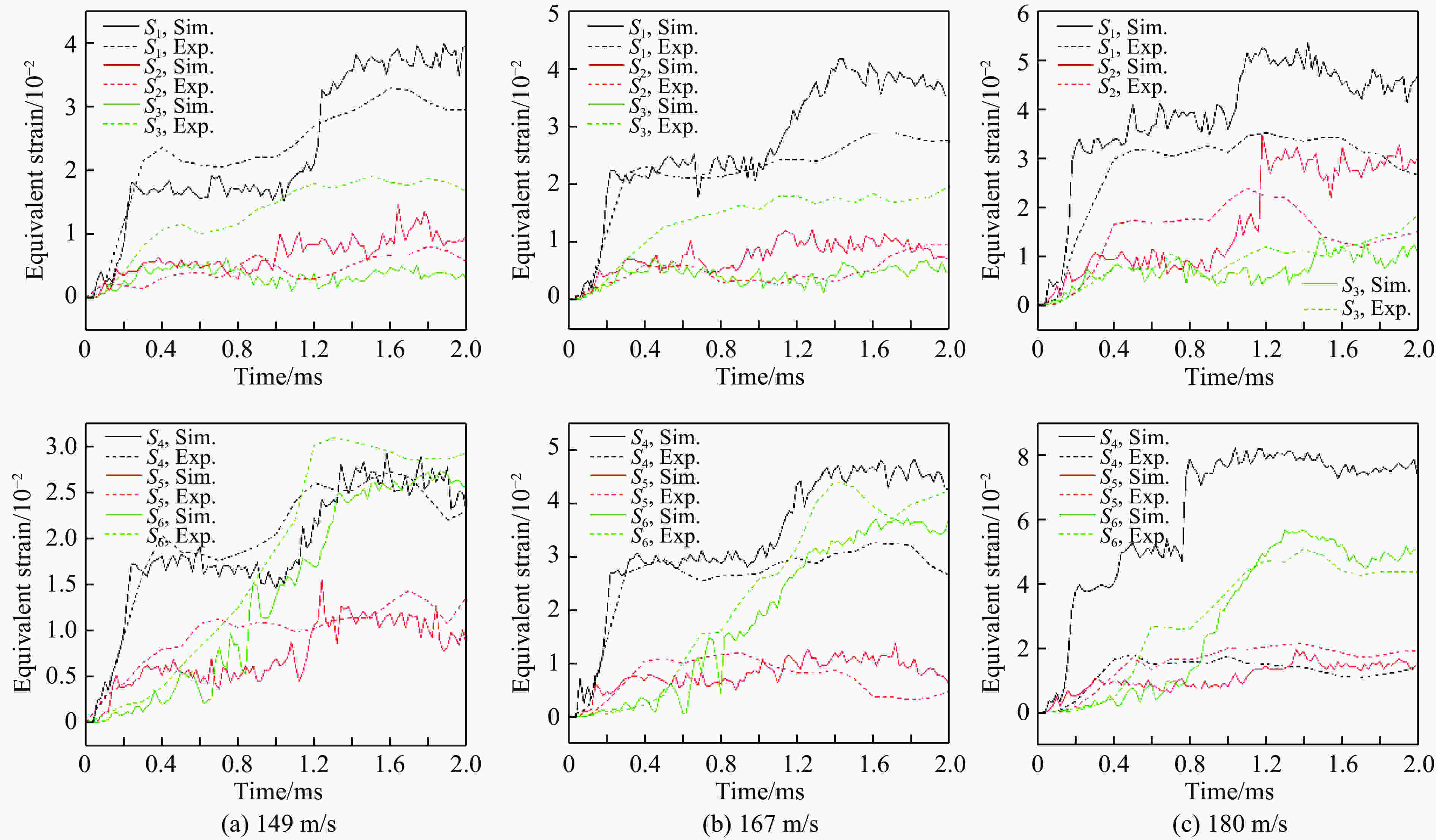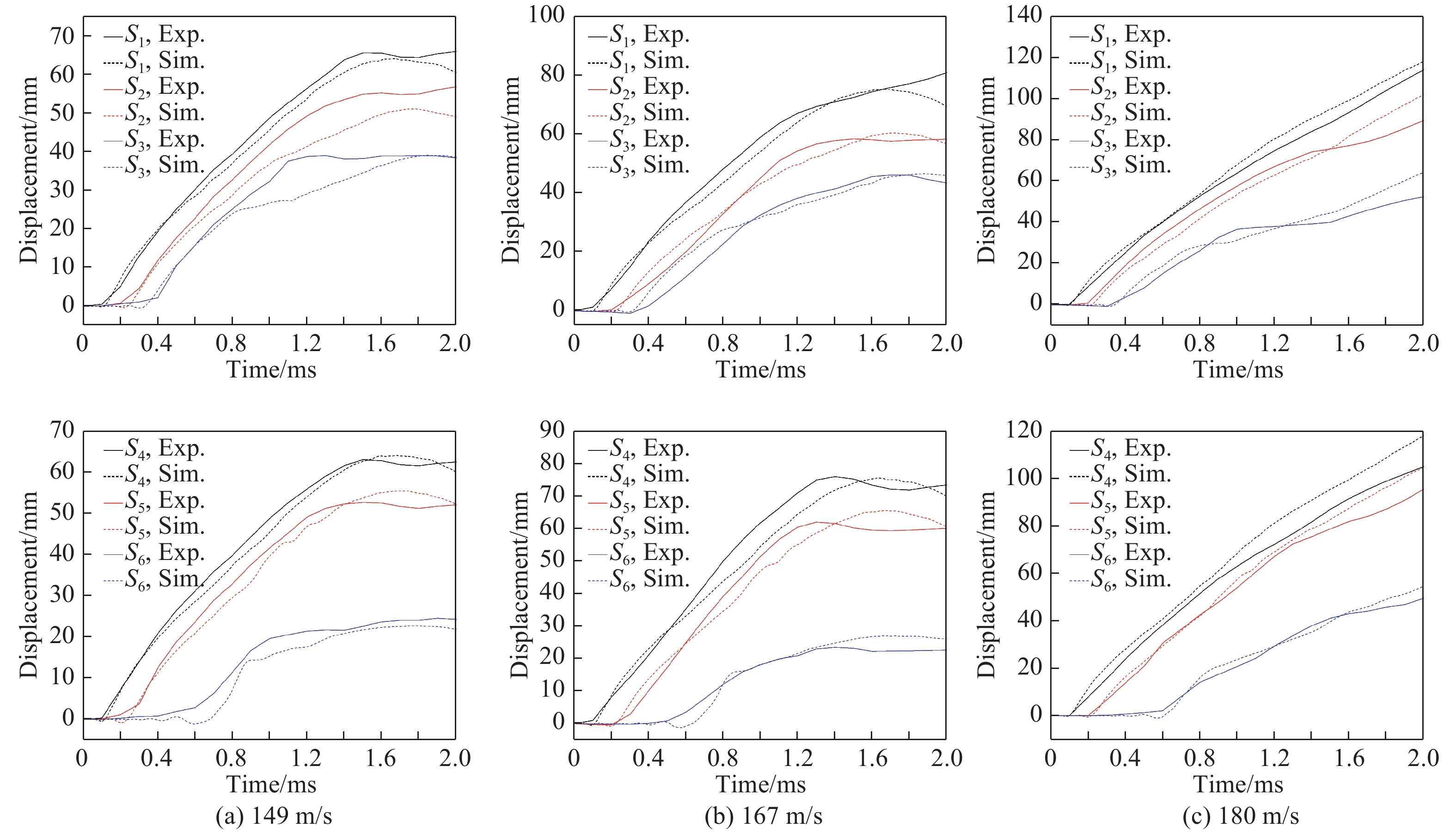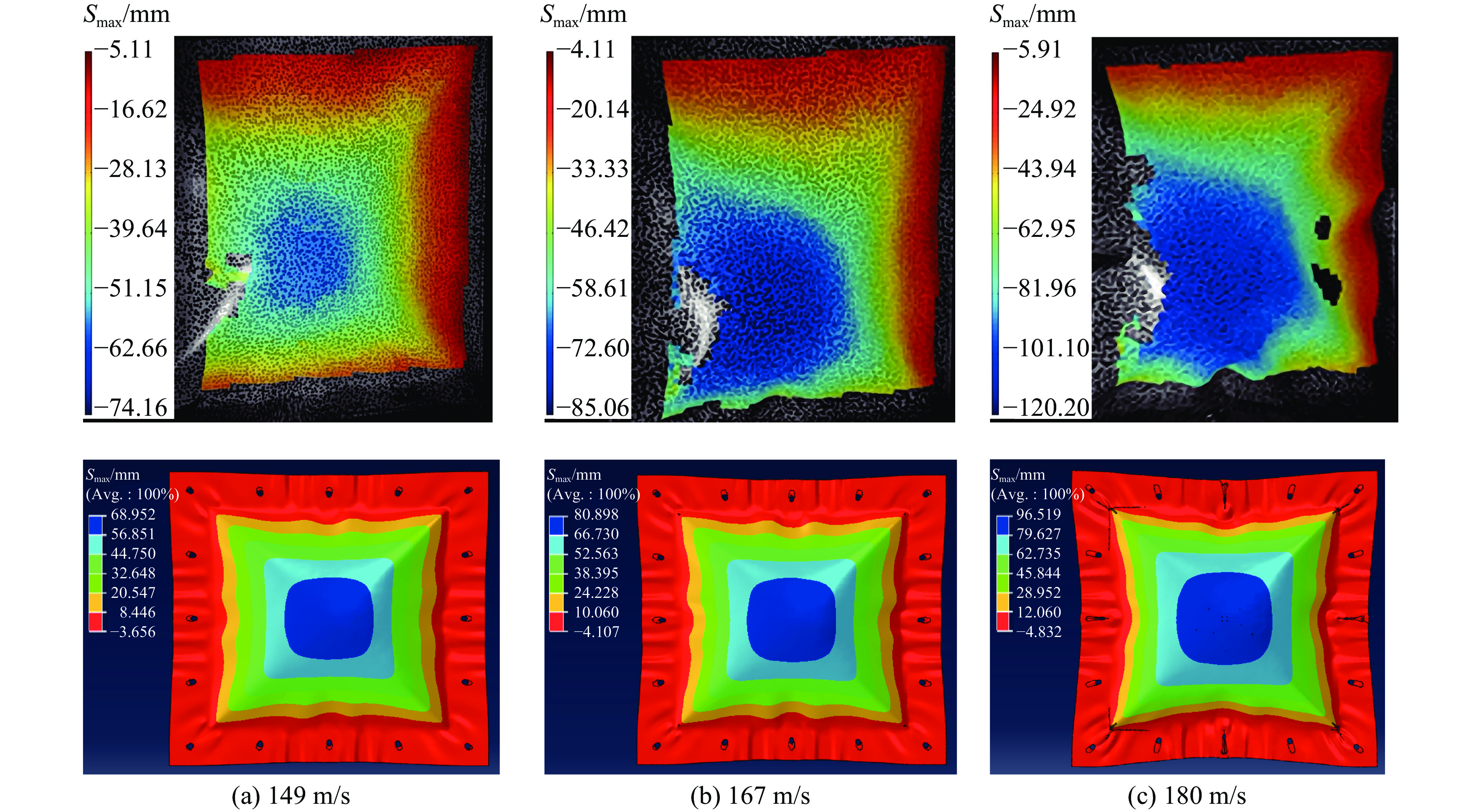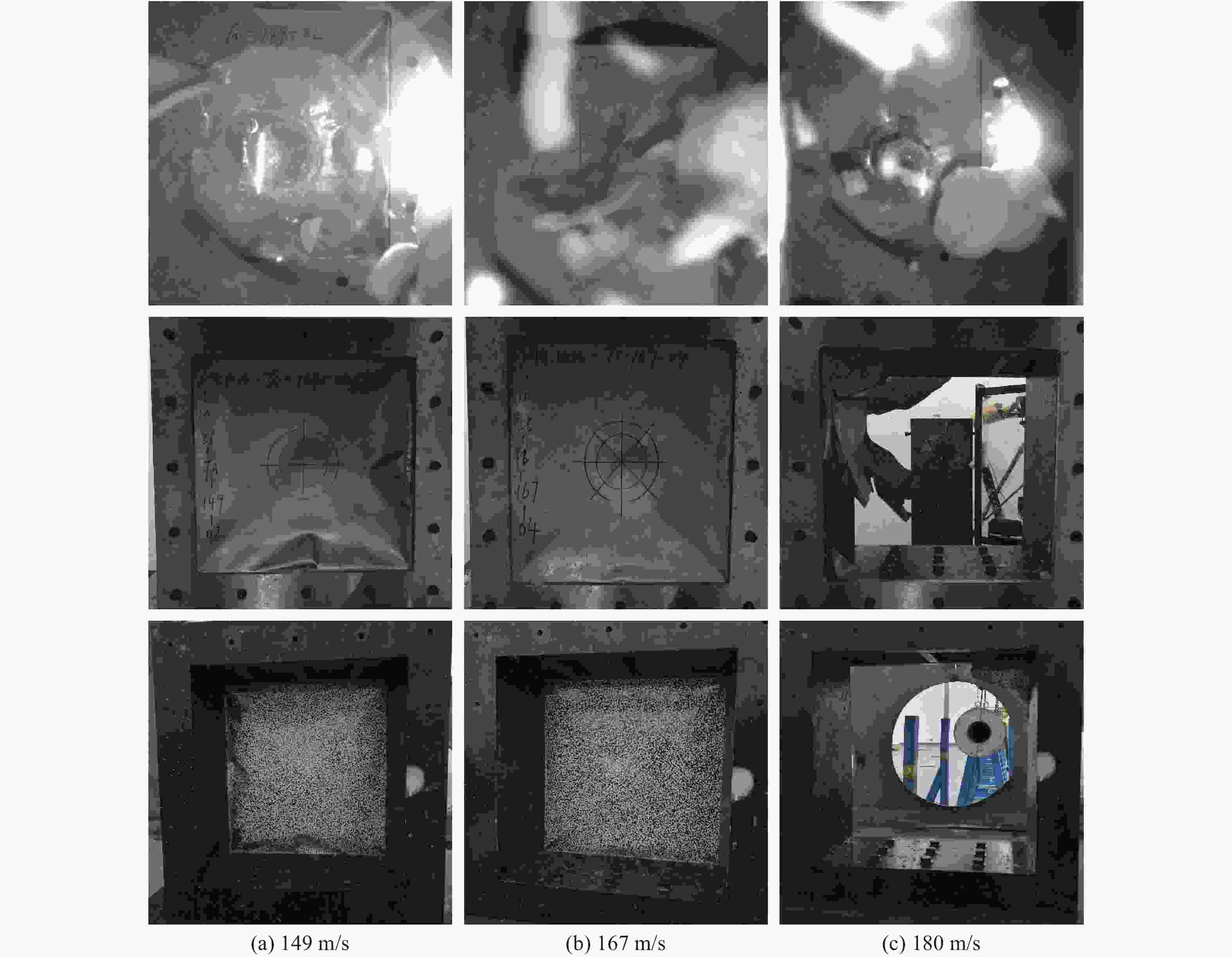 图  149、167和180 m/s的鸟撞实验结果