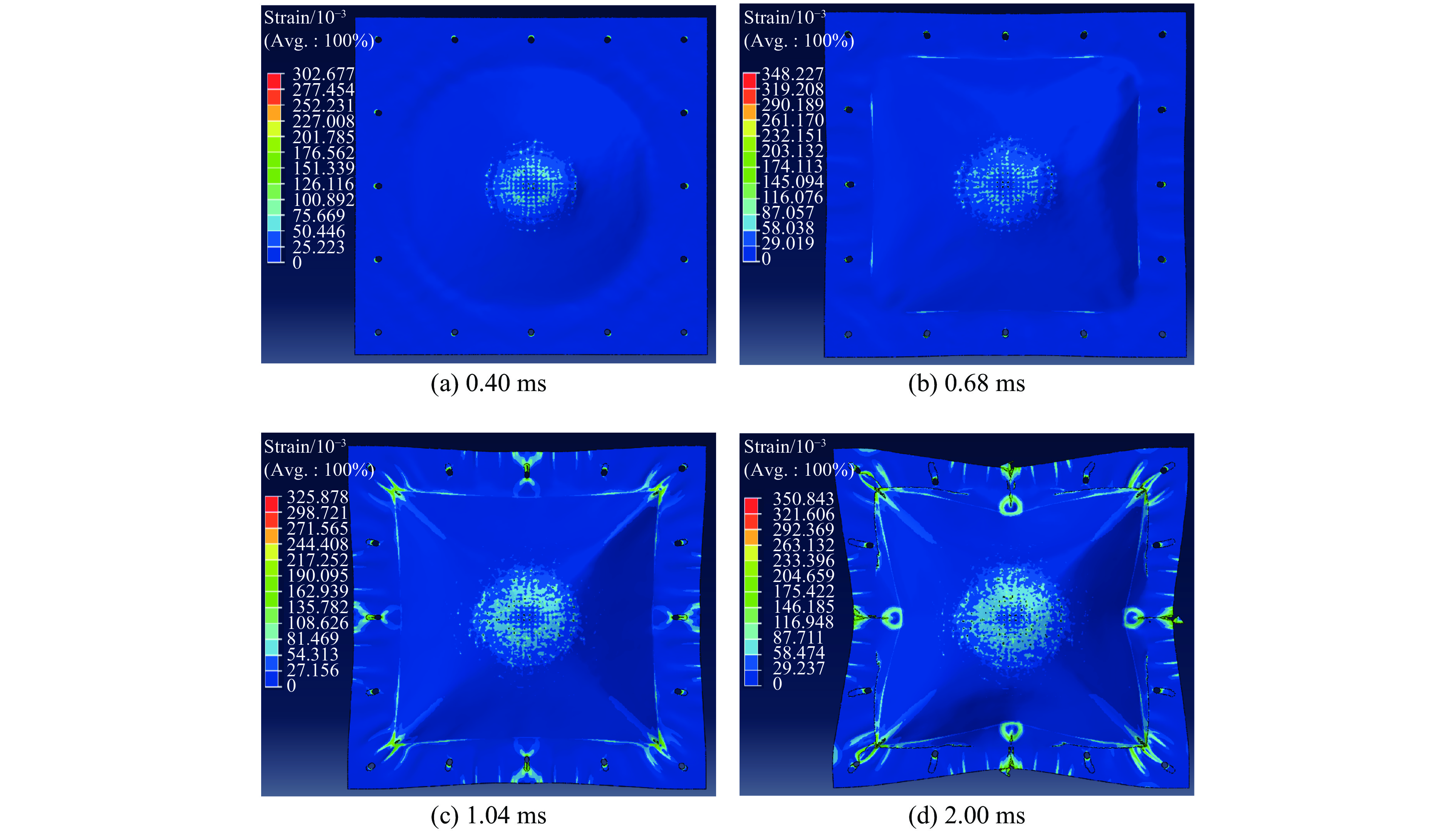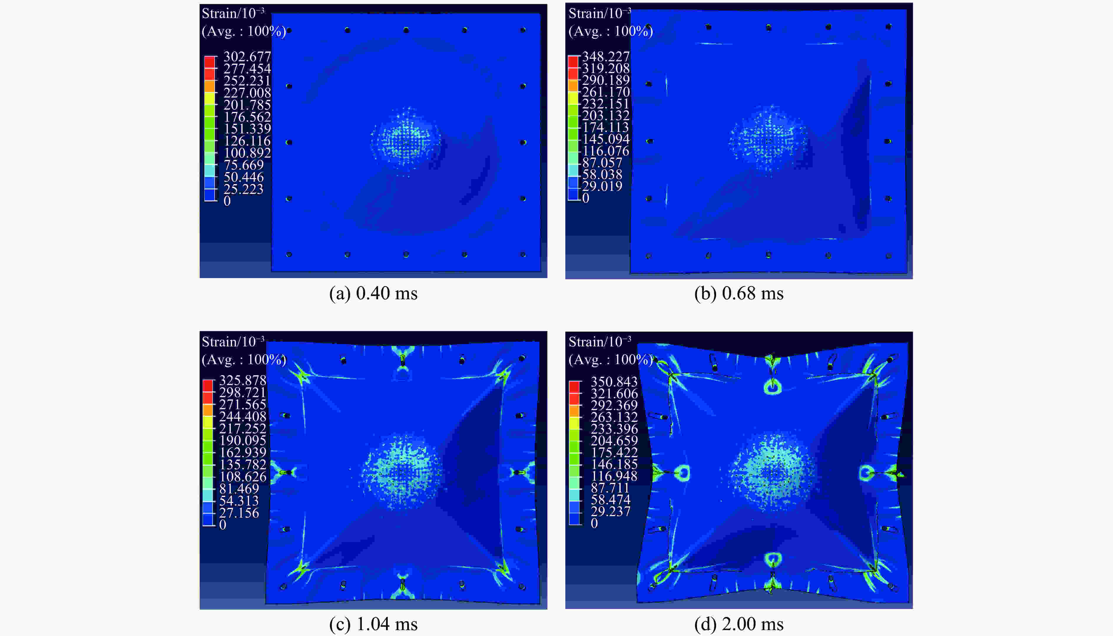 Figure  11.  Failure process of TC4 titanium alloy plate calculated at 180 m/s