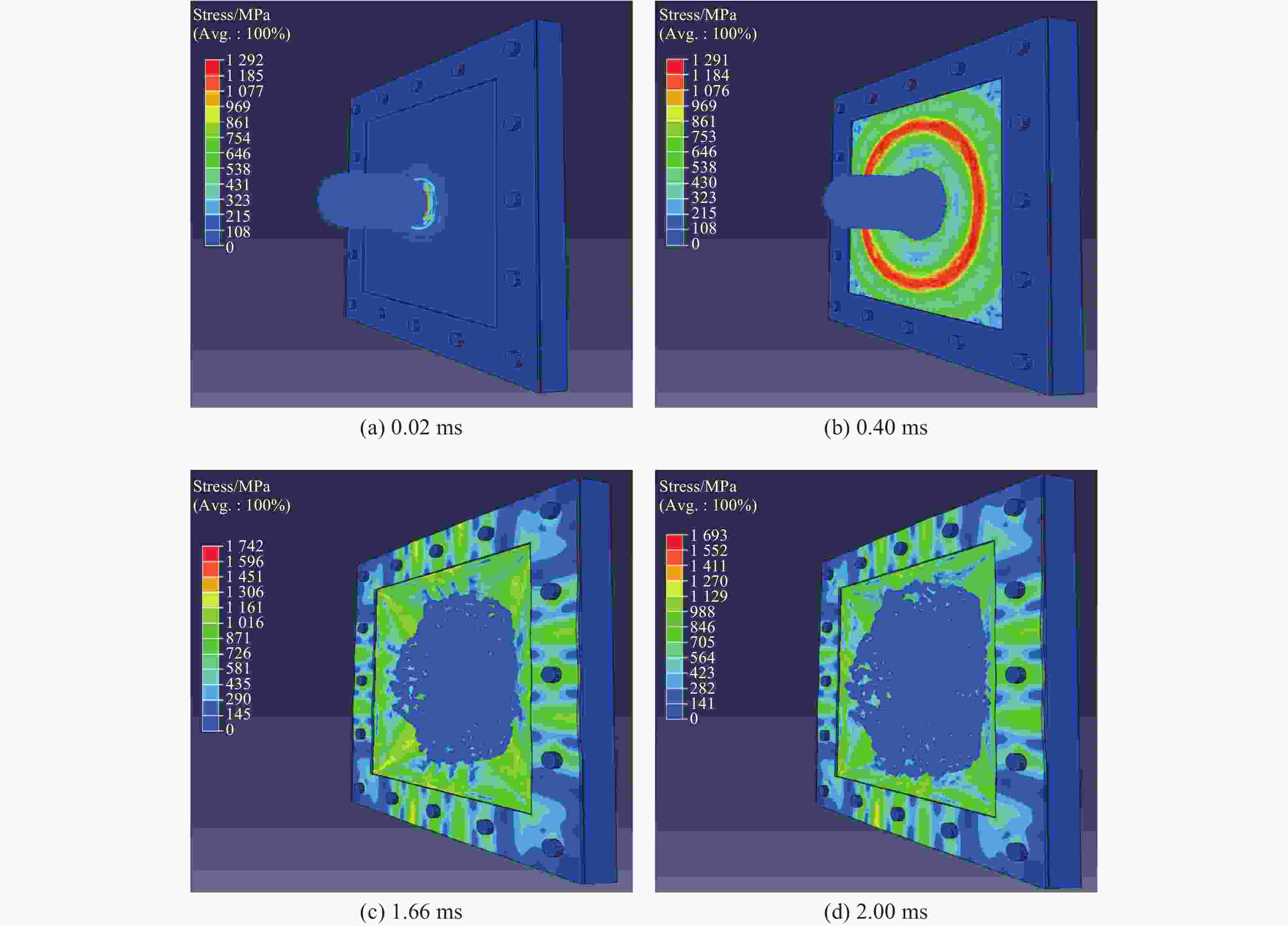 Figure  9.  Equivalent stress nephograms of bird impacting with the velocity of 149 m/s
