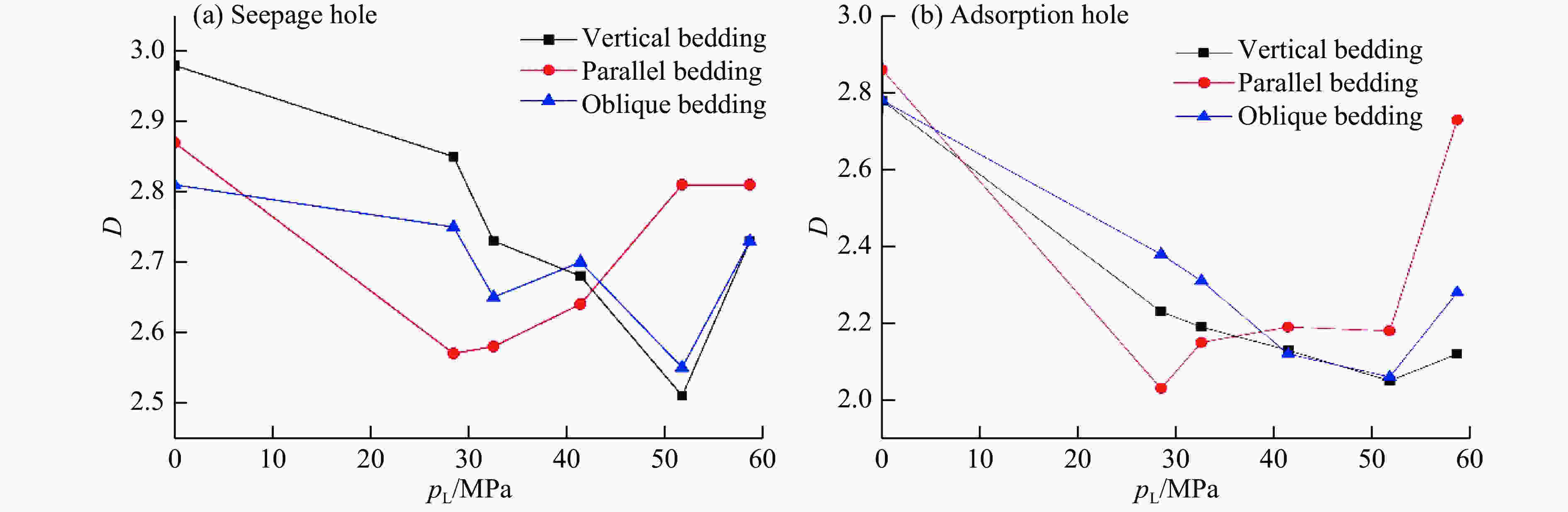 Direction pI/MPa pL/MPa No. Size/mm × mm $ D_{\rm{s} }$ $\bar D_{\rm{s} }$ $R_{\rm{s} }^2$ $ D_{\rm{x} }$ $\bar D_{\rm{x} }$ $R_{\rm{x}}^2$ $d $ $\bar d$ Vertical