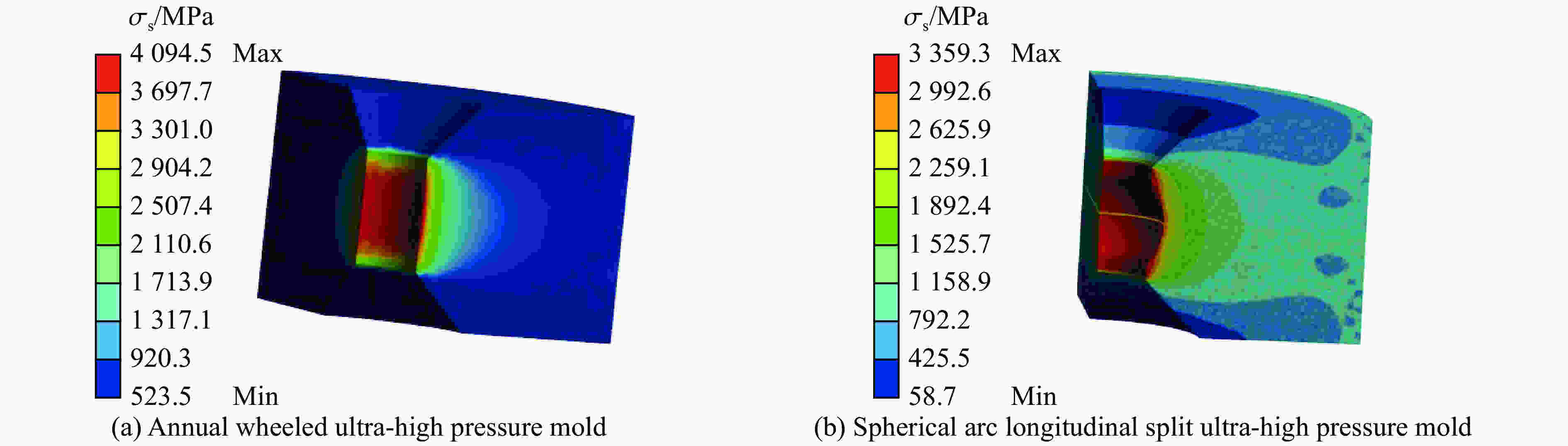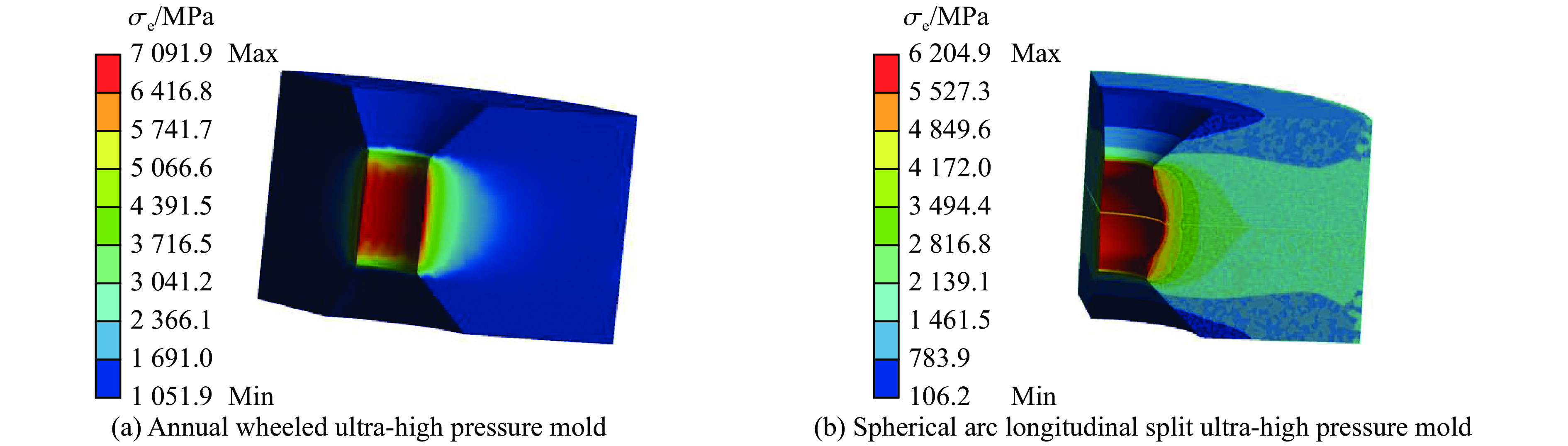 图  10  两种超高压模具的等效应力分布