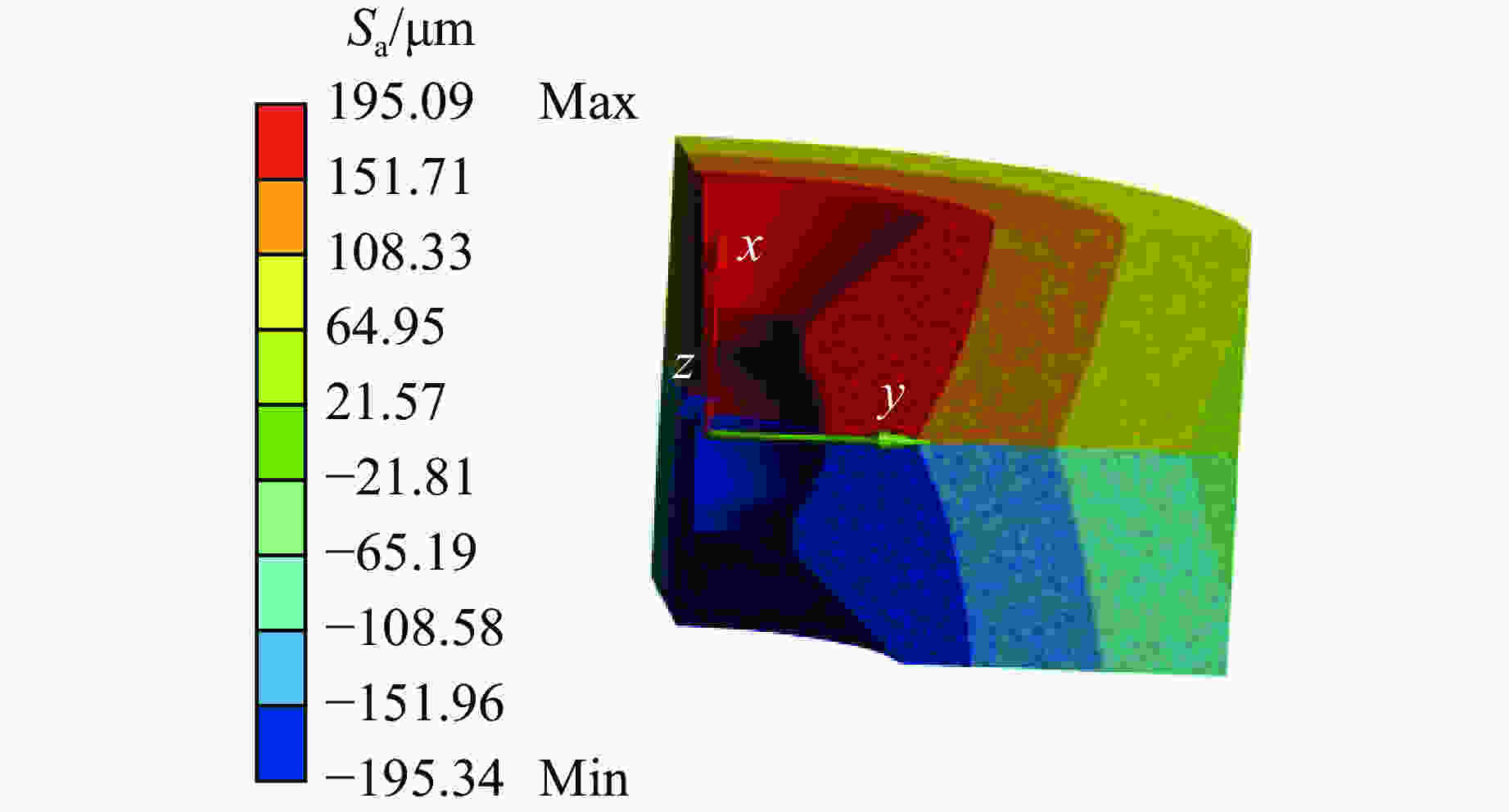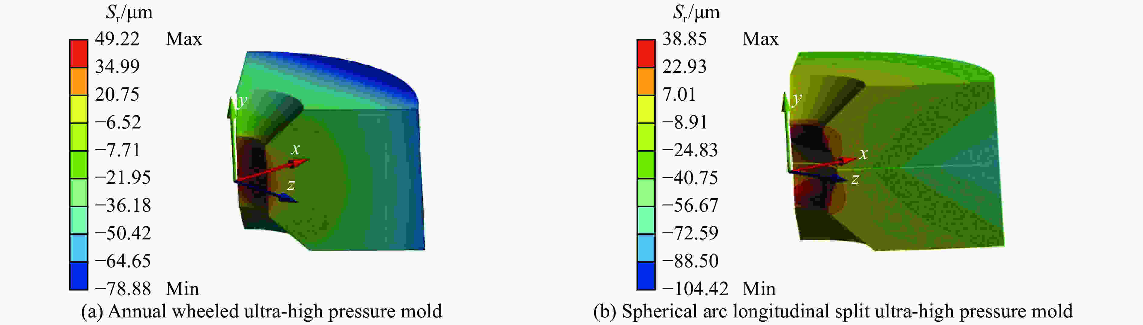图  球弧式纵向剖分超高压模具的轴向位移分布