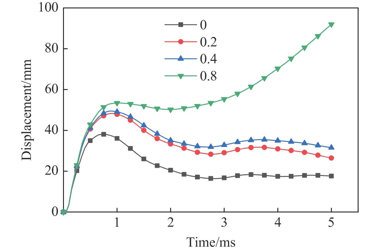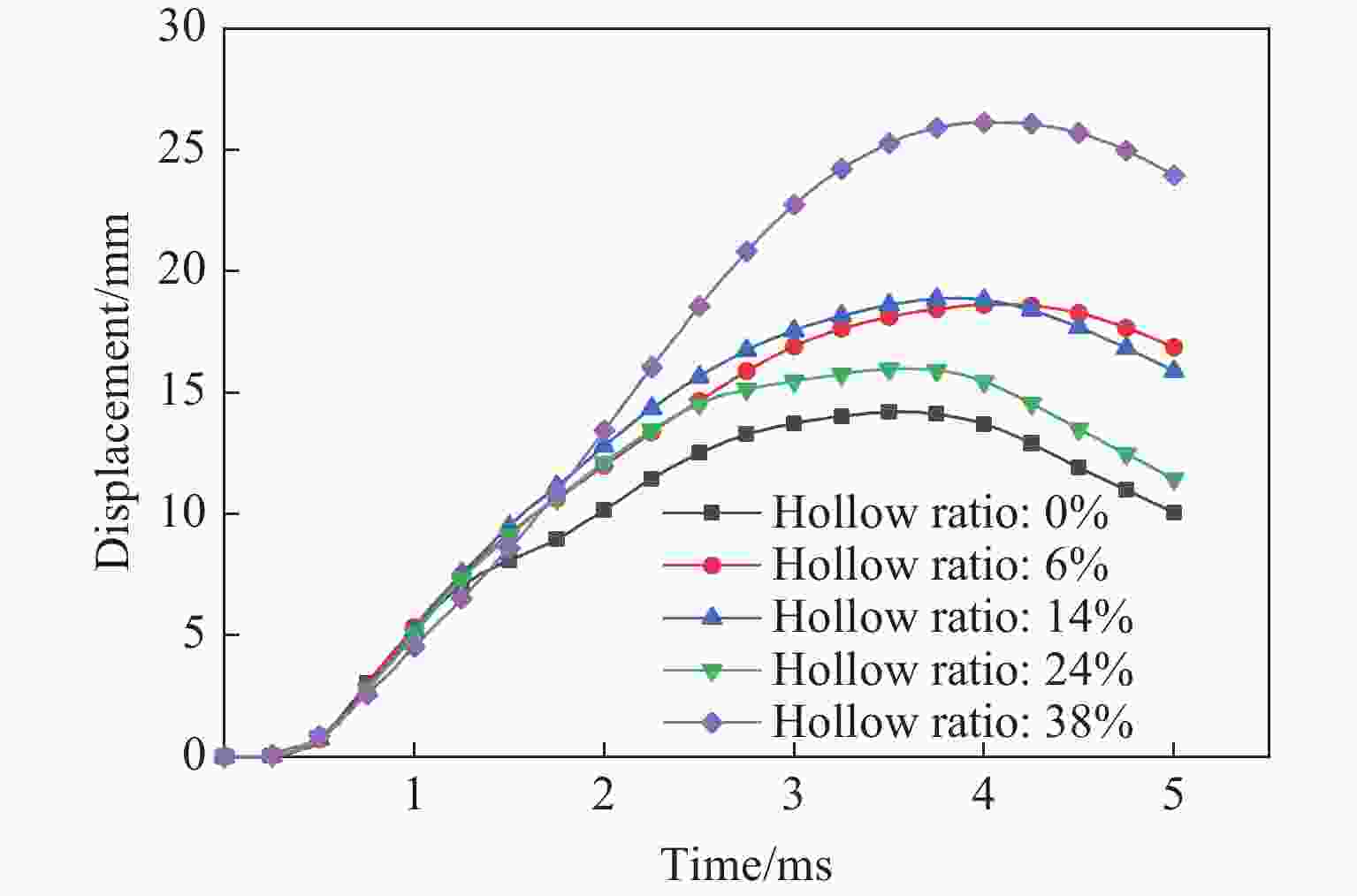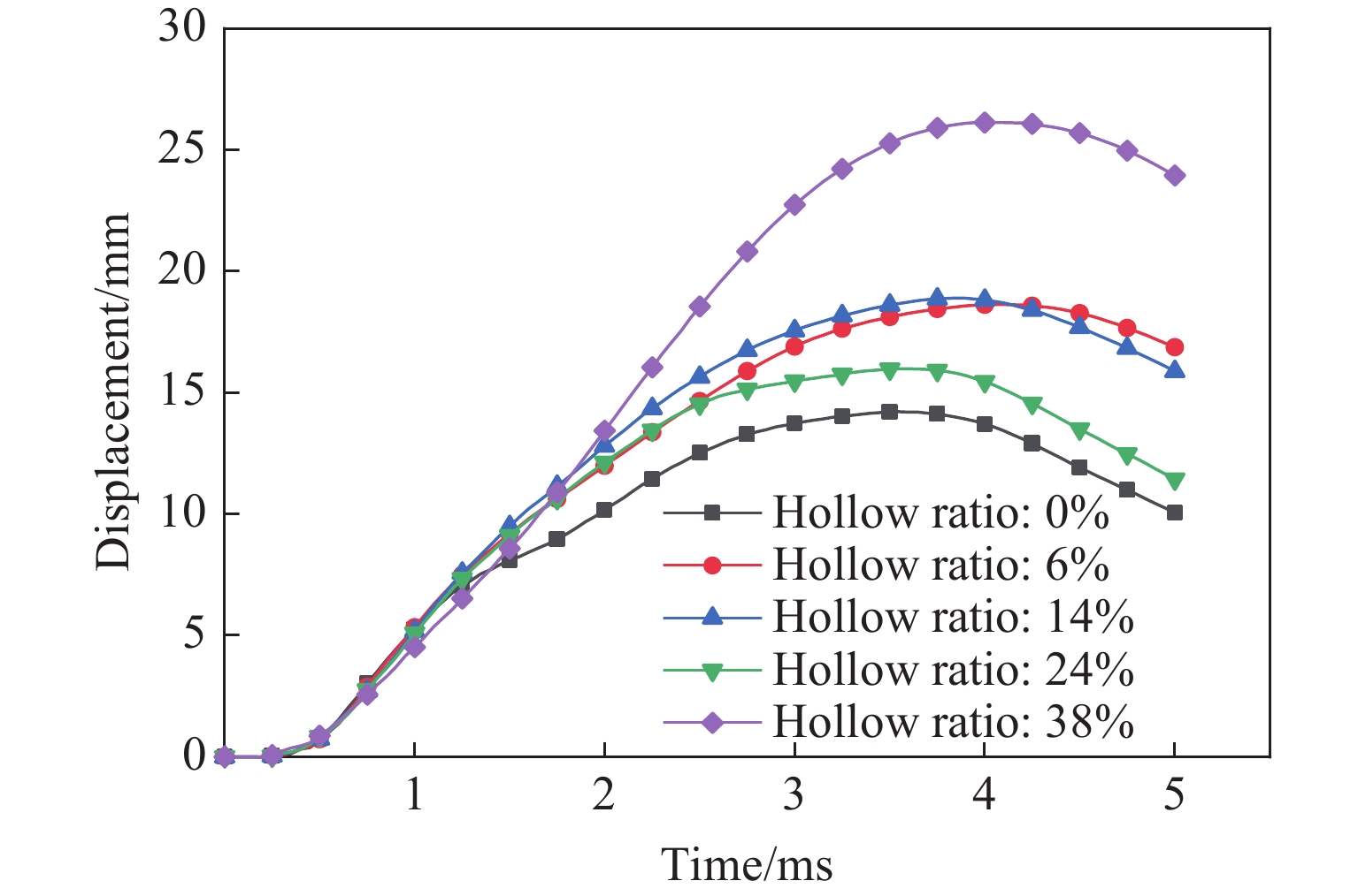 Figure  14.  Overall deformation-time history curves of the UHPCFDST column with different hollow ratios