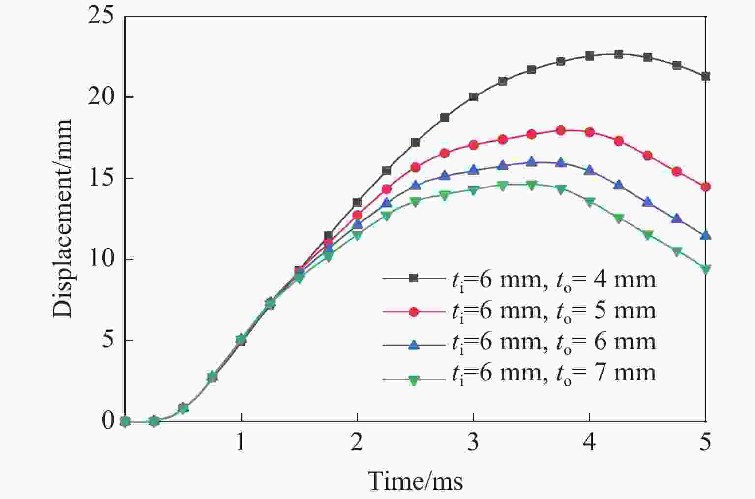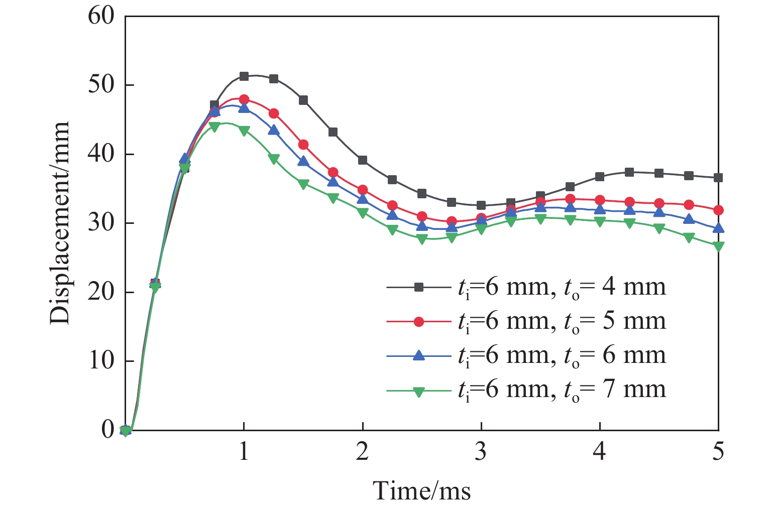 图  17  外钢管厚度变化时UHPCFDST柱的整体变形时程曲线