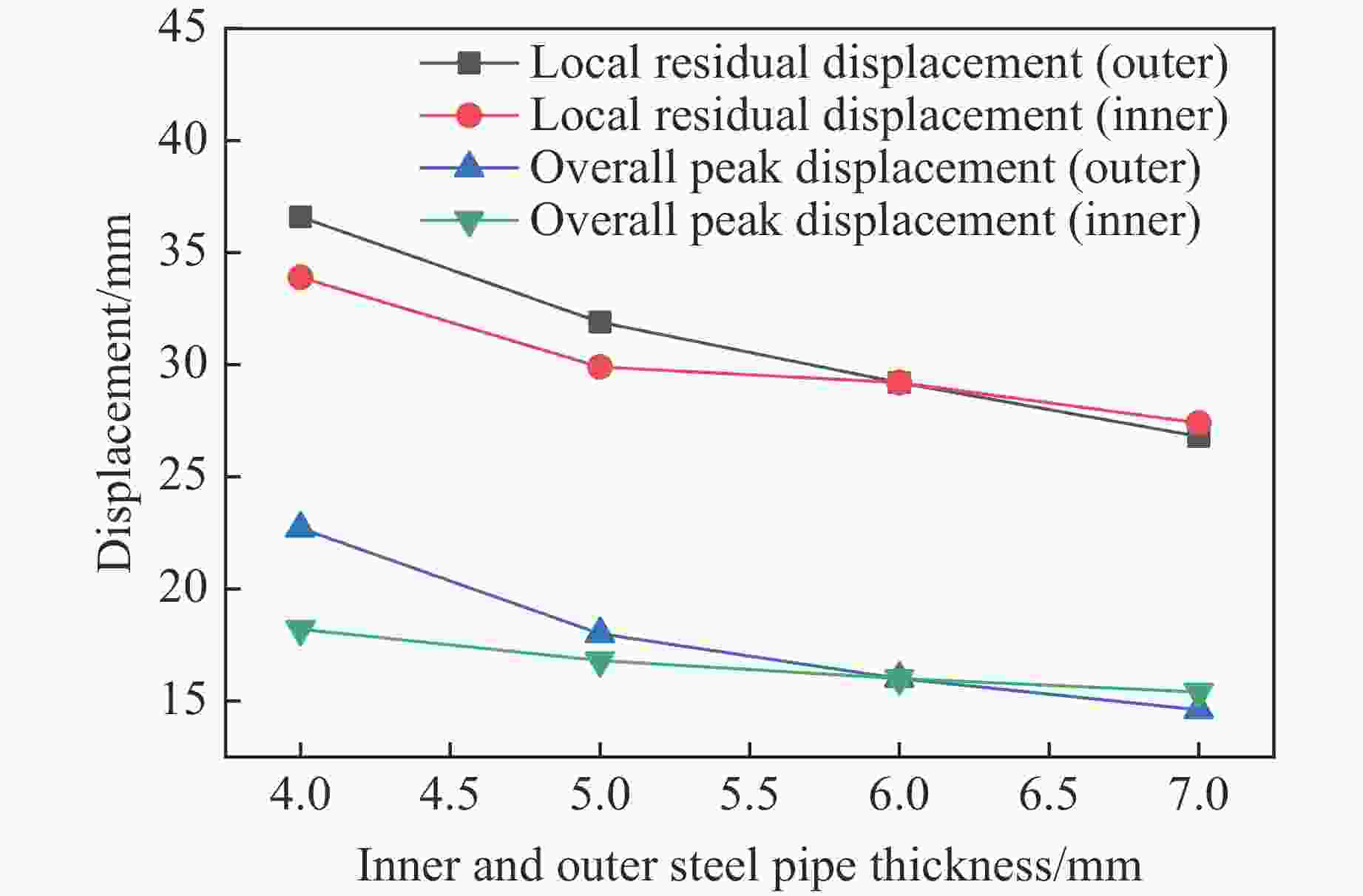 Figure  18.  Influence of the thickness of inner and outer steel pipes on the UHPCFDST column deformation
