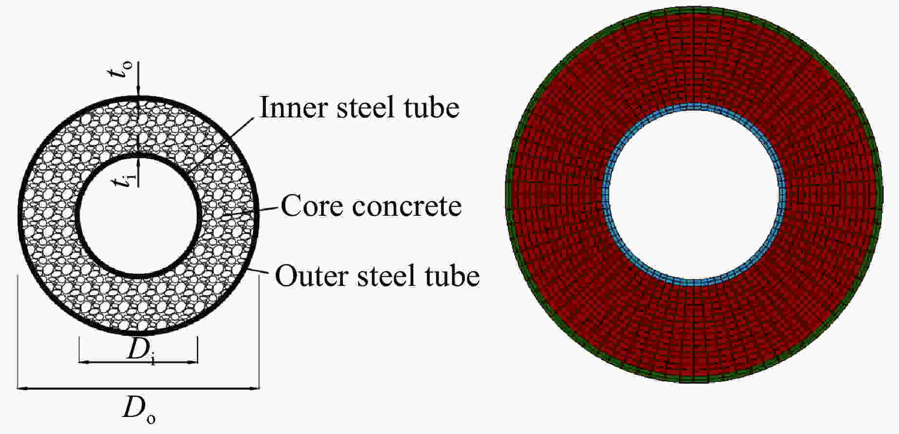 图  UHPCFDST柱横截面几何尺寸和网格划分