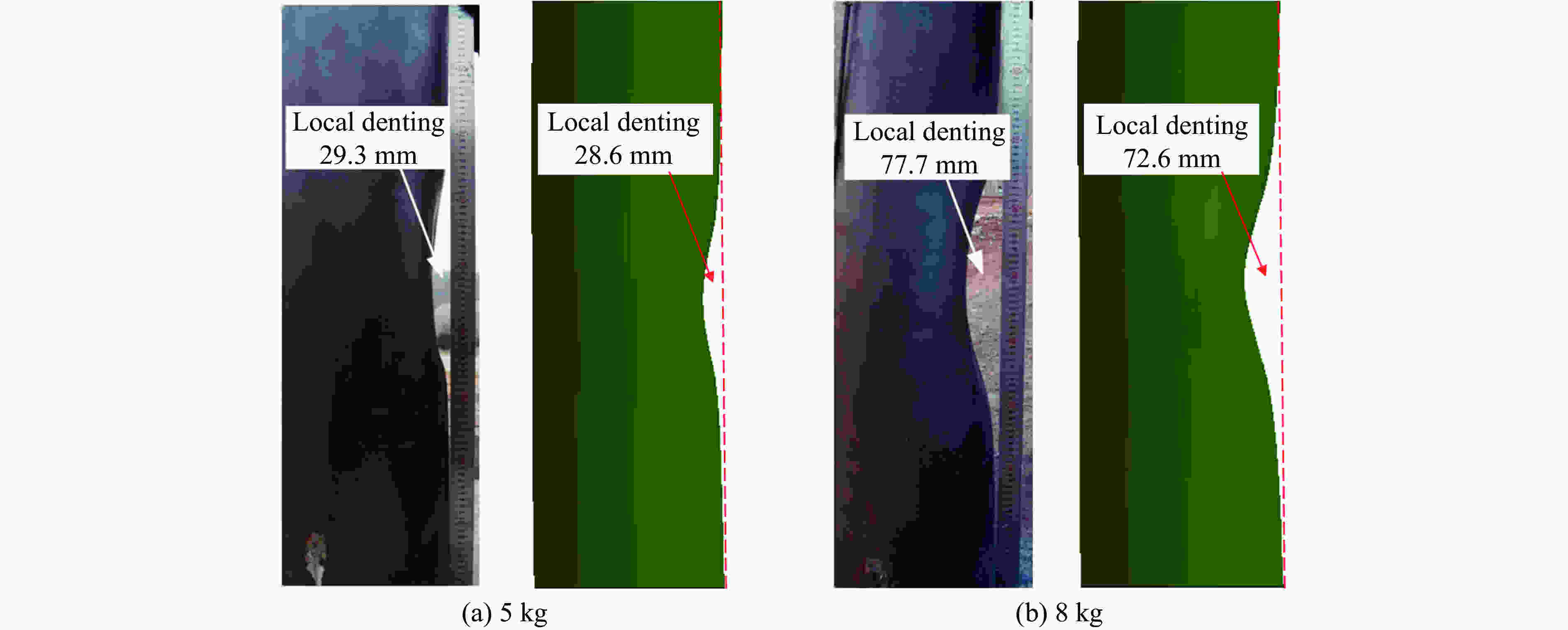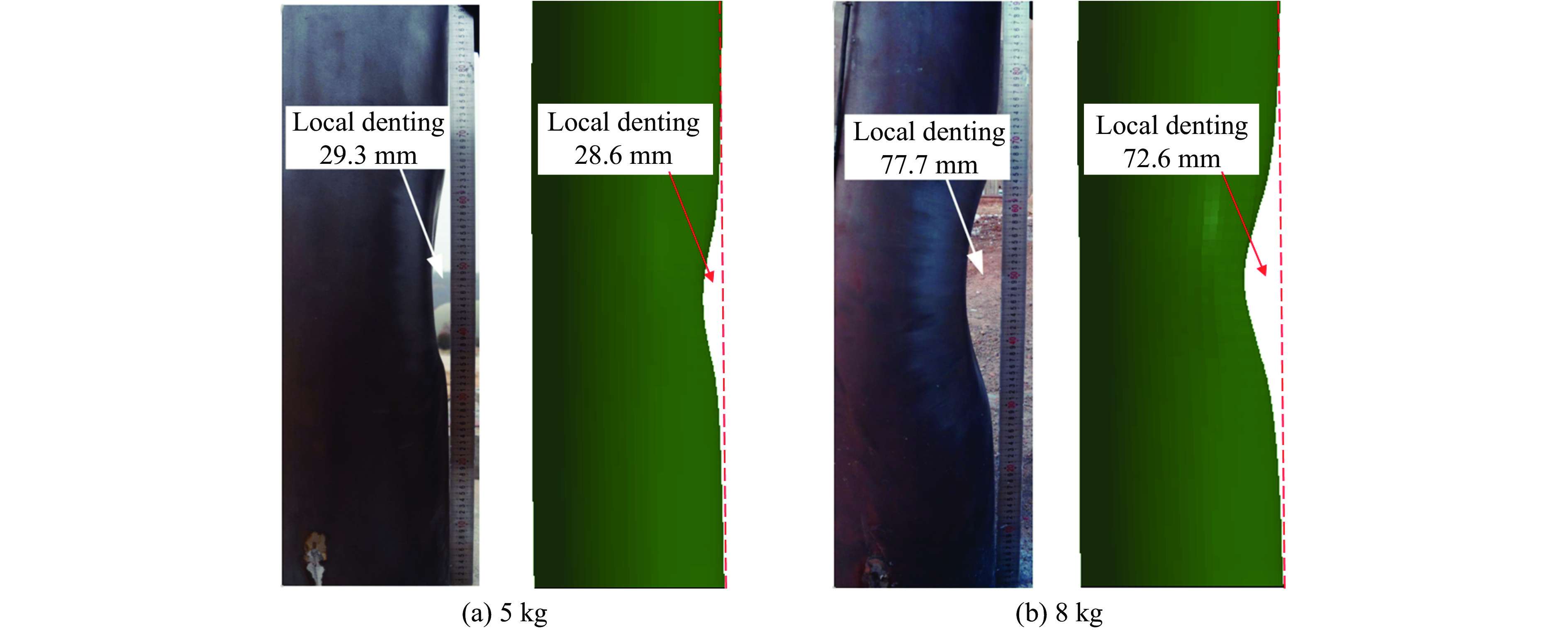 图  不同炸药当量下实验与数值模拟凹陷变形对比