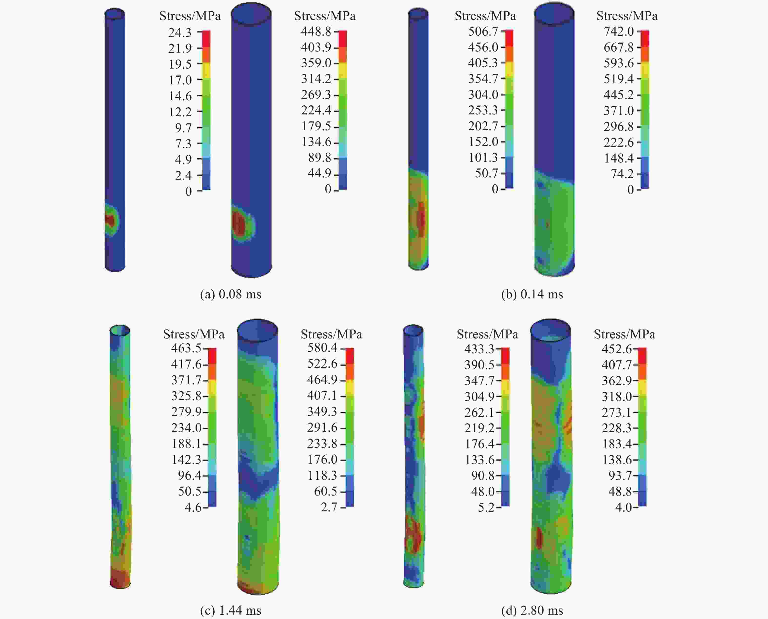 图  UHPCFDST柱钢管不同时刻的应力云图