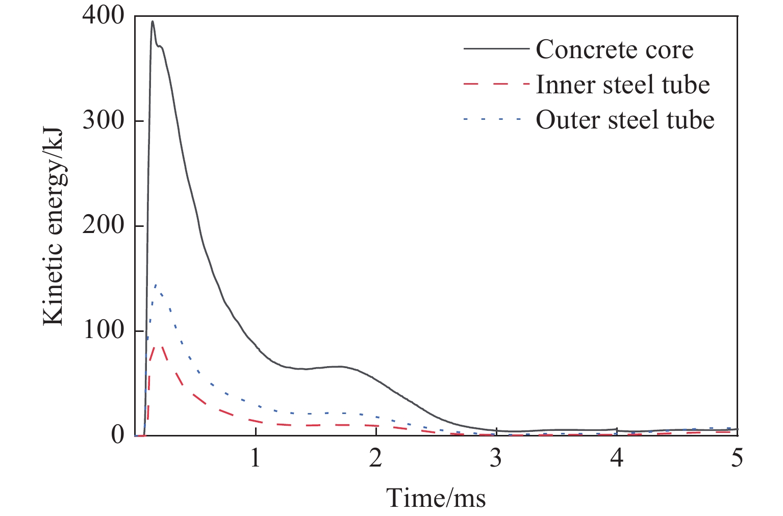 Figure  9.  Kinetic energy-time history curves of the UHPCFDST column