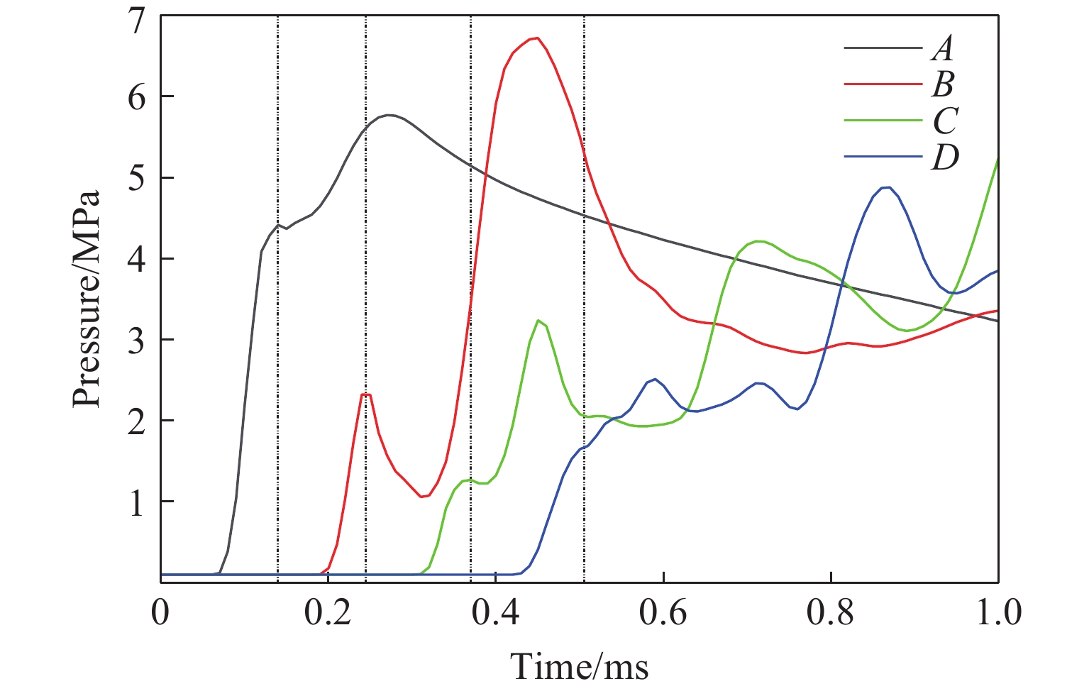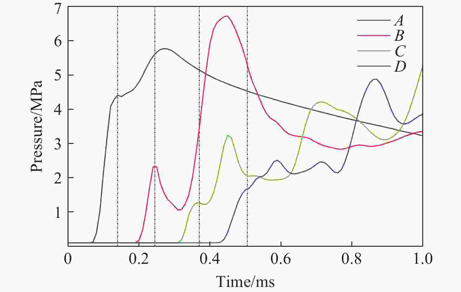 图  11  腔内各点压力随时间变化