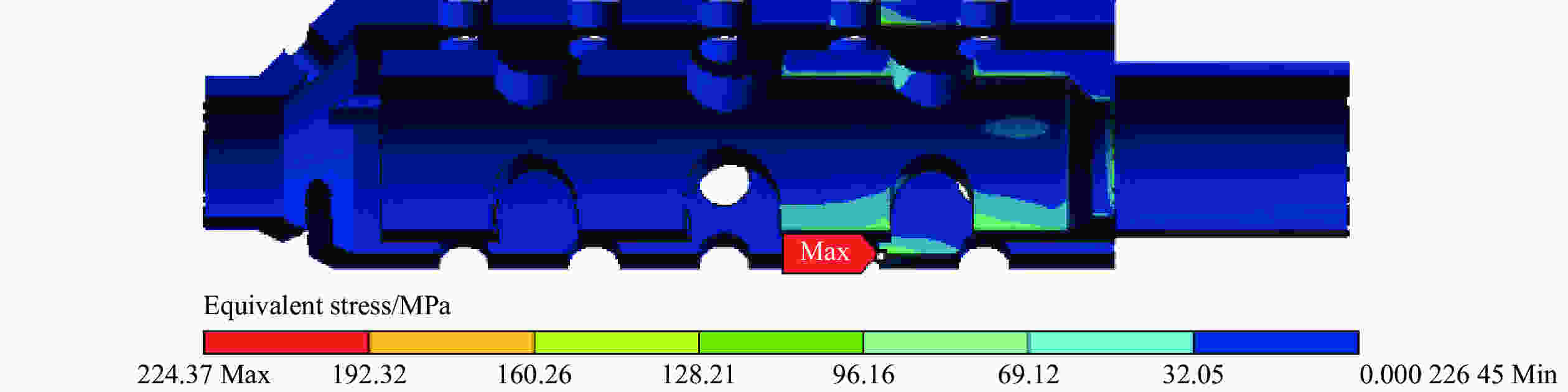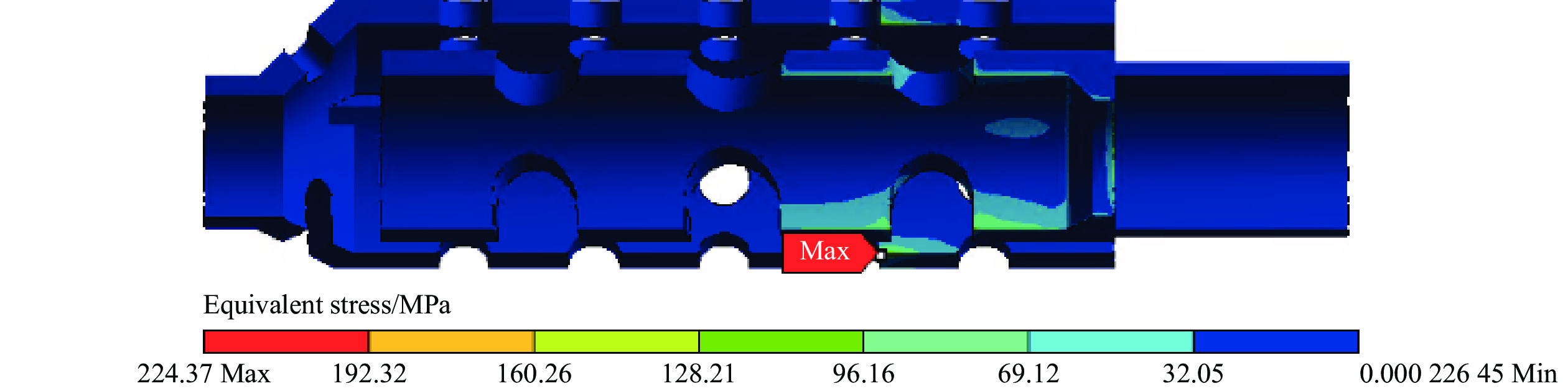 图  16  0.25 ms时制退器结构的等效应力云图