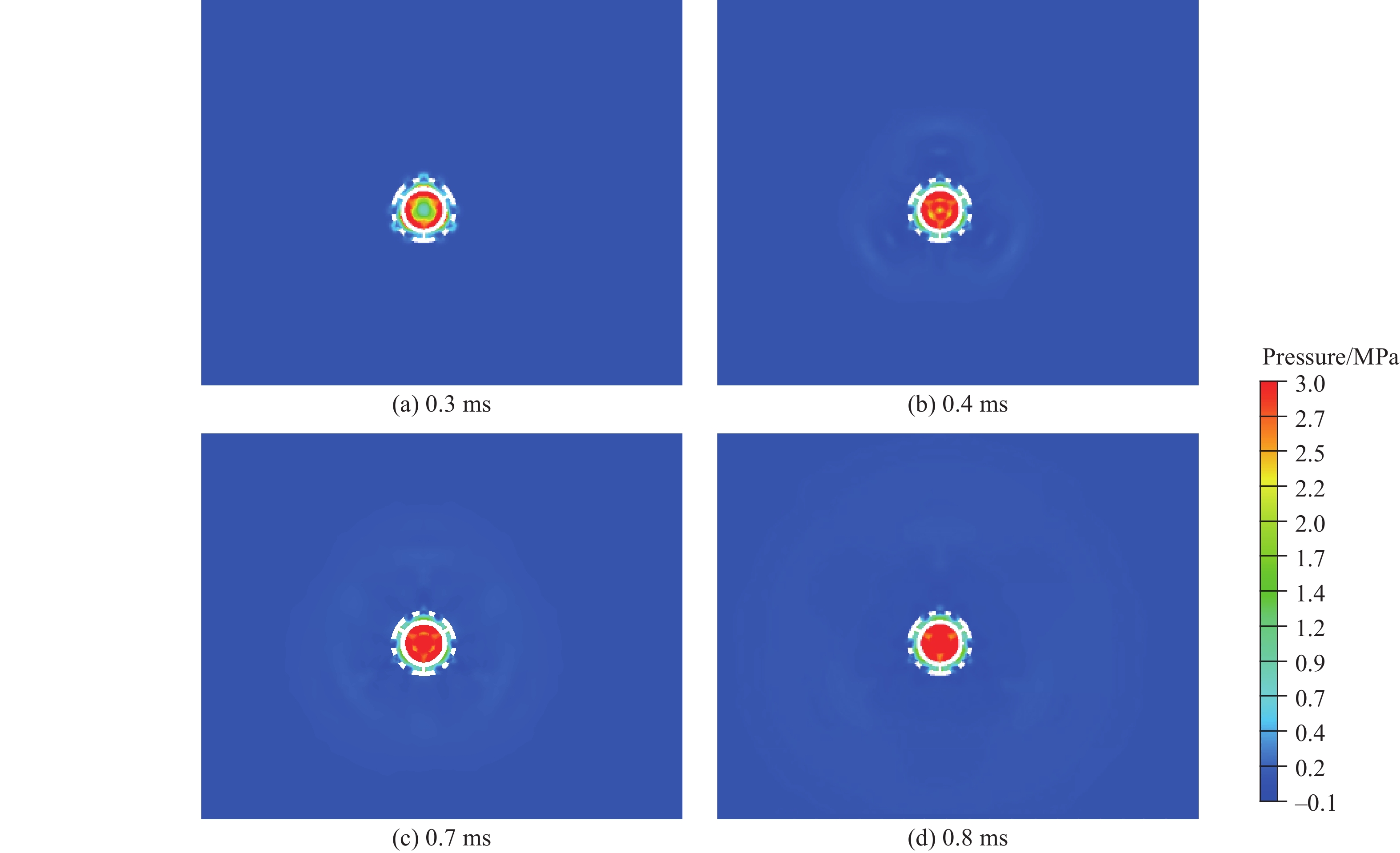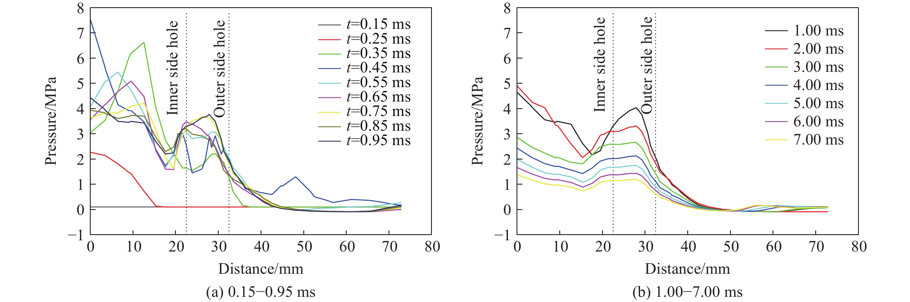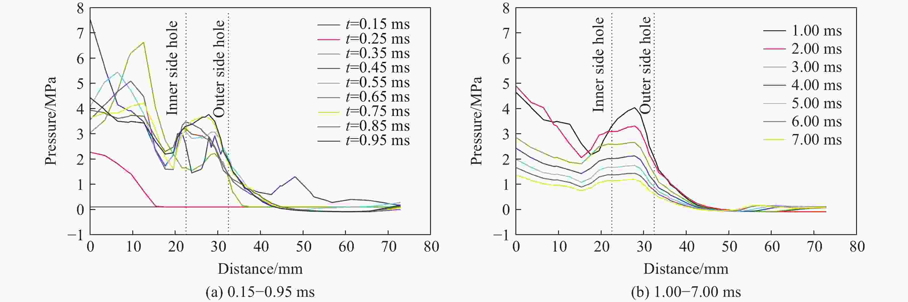 图  不同时刻侧孔径向轴线压力分布曲线