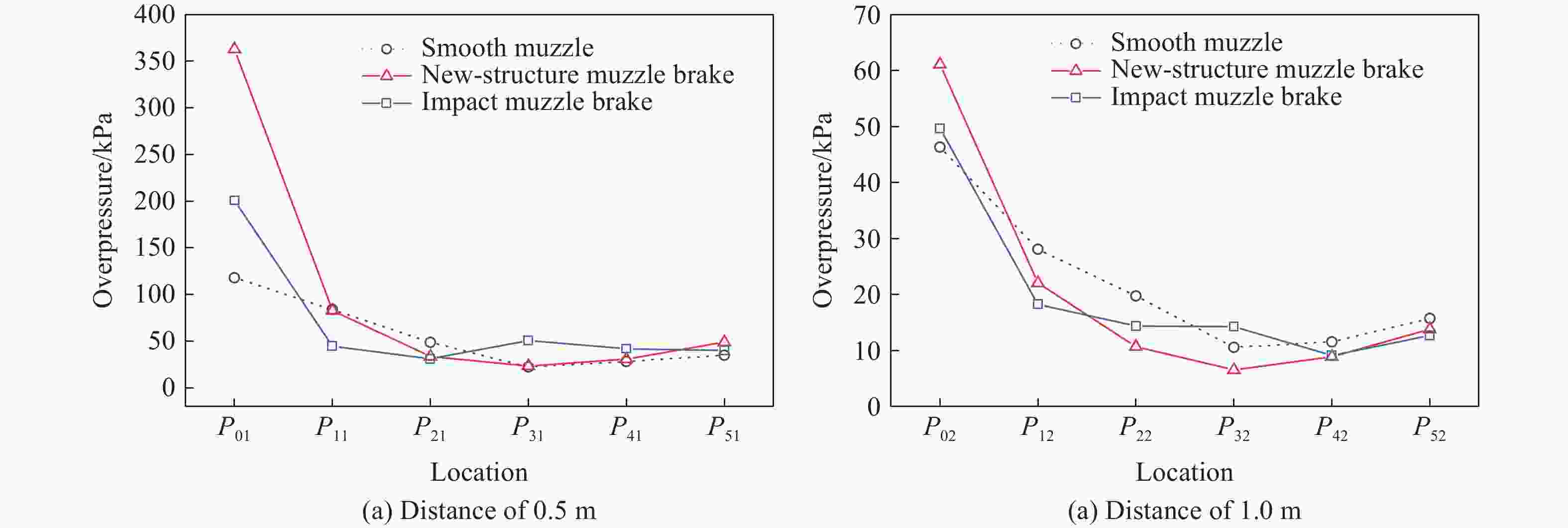 表  3  不同制退器的超压峰值监测结果