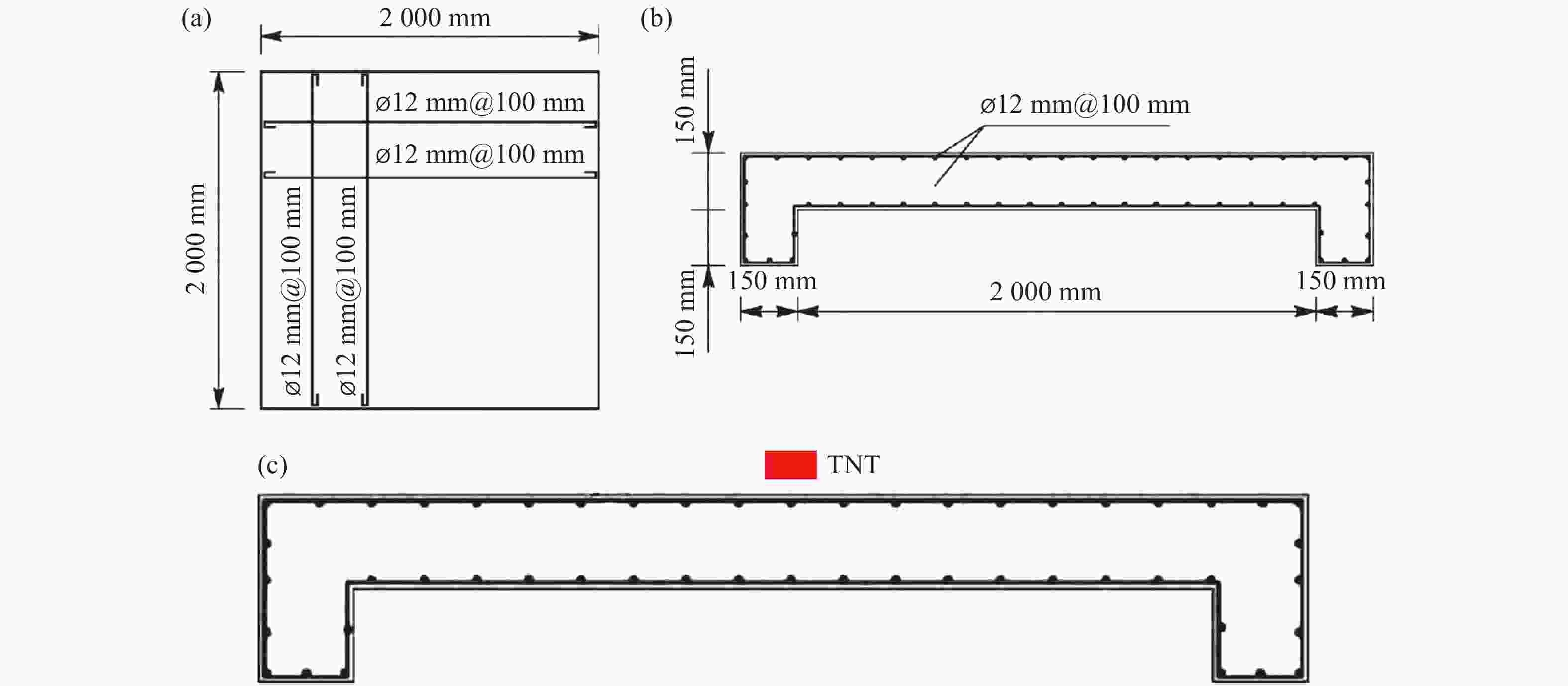 • 图  钢筋混凝土板构件配筋及爆炸工况