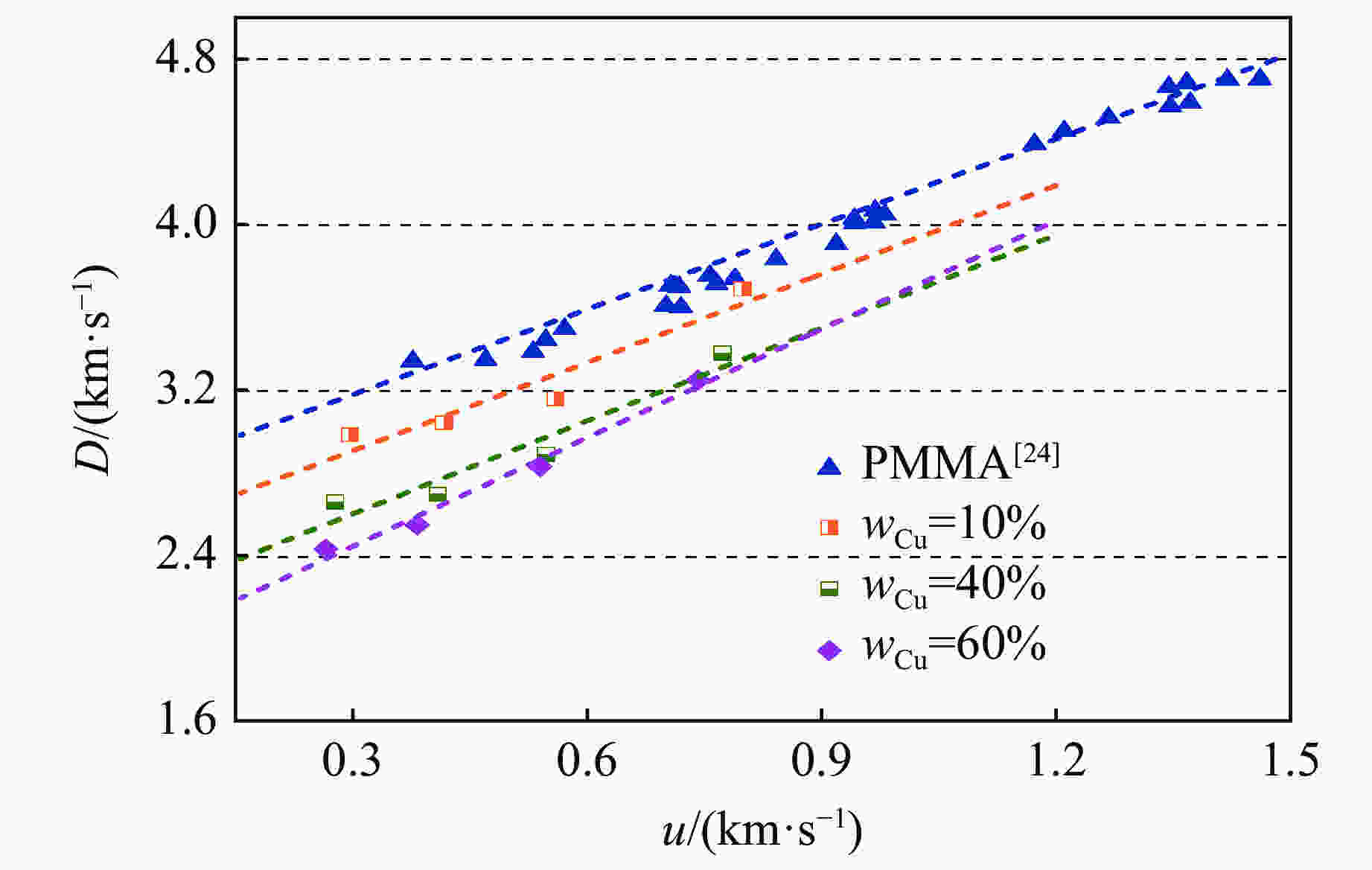 图  10  Cu/PMMA复合材料的冲击波速度-粒子速度曲线