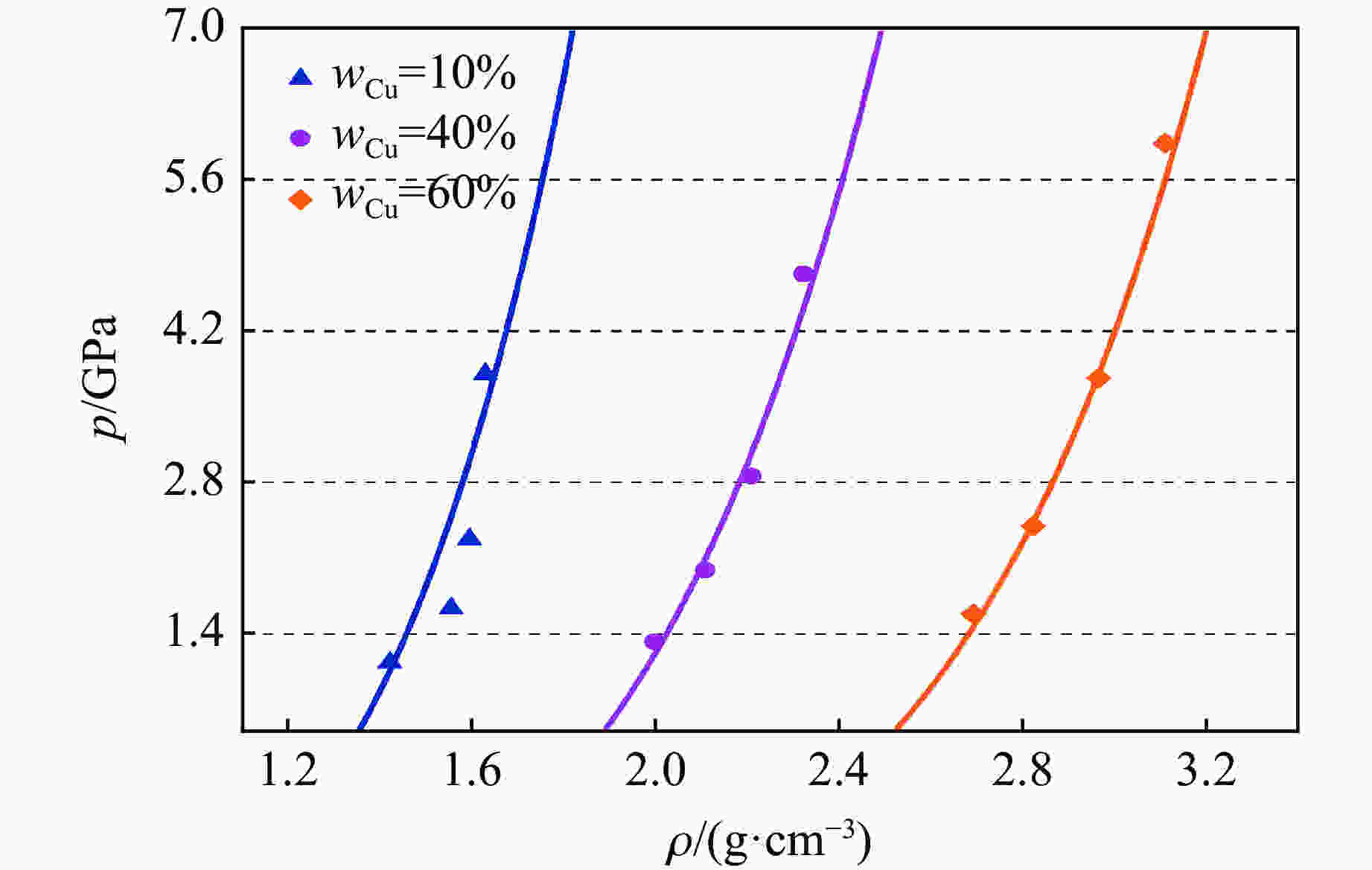 图  14  Cu/PMMA复合材料的p-$\;\rho $关系曲线及其测量值