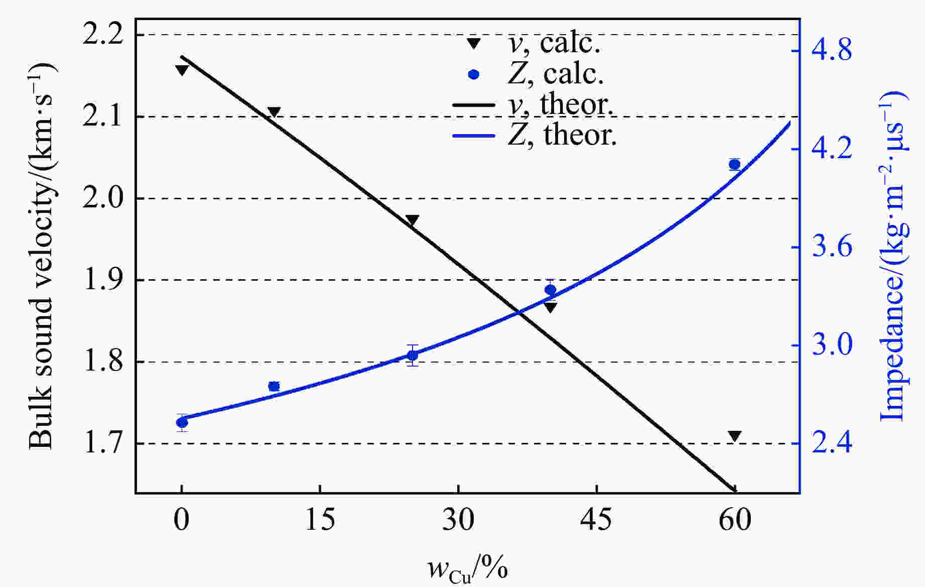 Figure  9.  Bulk sound velocity and wave impedance varying with Cu particle content