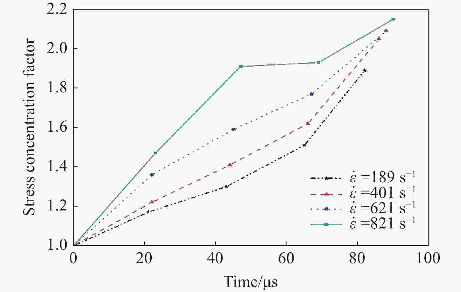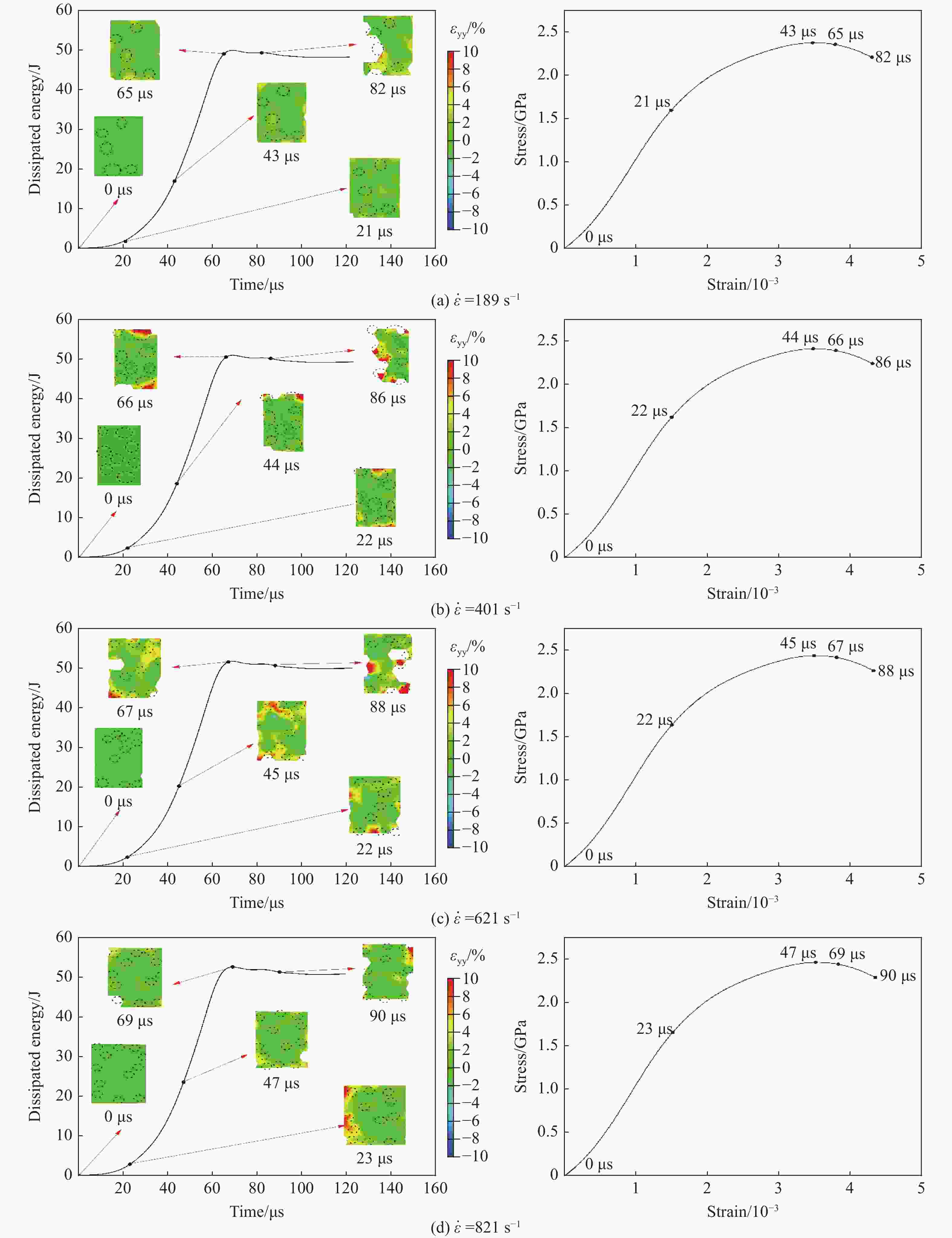 $ \dot{\varepsilon } $/s−1 WL/J WI/J $\eta $/% 189 48.6 406.5 11.96 401 49.6 490.3 10.12 621 50.4 550.8 9.15 821 51.1 631.2 8.10 表 2 不同应变率下的比表面积