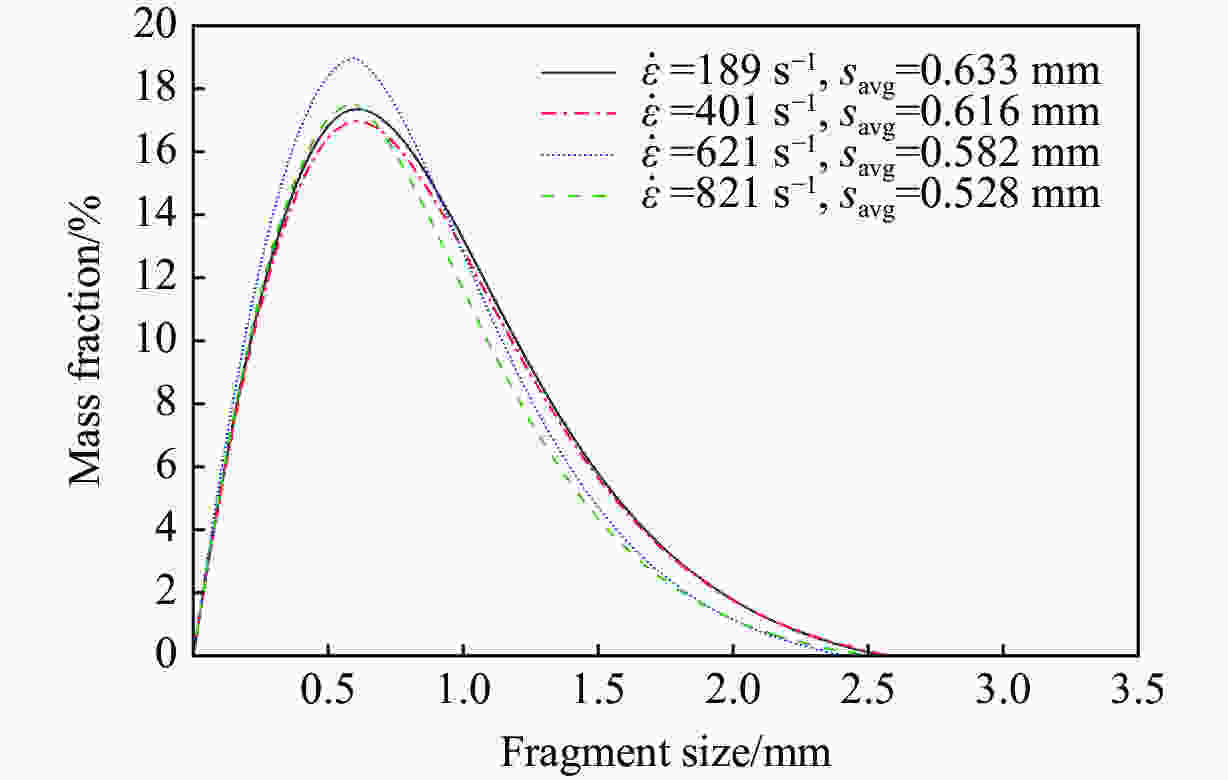 摘要: 开展了99氧化铝陶瓷在不同应变率下的轴向压缩实验,通过对相应应变率下的试件碎片进行软回收,并结合筛余法对碎片进行几何表征,获得了不同应变率下的碎片尺寸分布曲线和试件破坏的能量吸收过程,建立了颗粒陶瓷的外力功与相对破碎率之间的关系。采用数字图像相关(Digital image correlation, DIC)技术获取了不同应变率下沿加载方向的应变场,并结合能量吸收过程和碎片级配表现分析了破坏模式。实验结果表明:99氧化铝陶瓷的破坏强度与应变率呈正相关,在中应变率下,能量吸收率与应变率呈负相关,由于能量吸收机制的改变,样品初始为劈裂破坏;当应变率达到401 s−1时,破坏模式变为劈裂-粉碎混合破坏;随着应变率继续增大,试件变为粉碎破坏,颗粒平均粒径减小,碎片尺寸趋同,应力集中的影响逐渐减弱。分析了能量、破坏过程、碎片分布之间的关系,最终获得了碎片分布规律以及破碎特性。