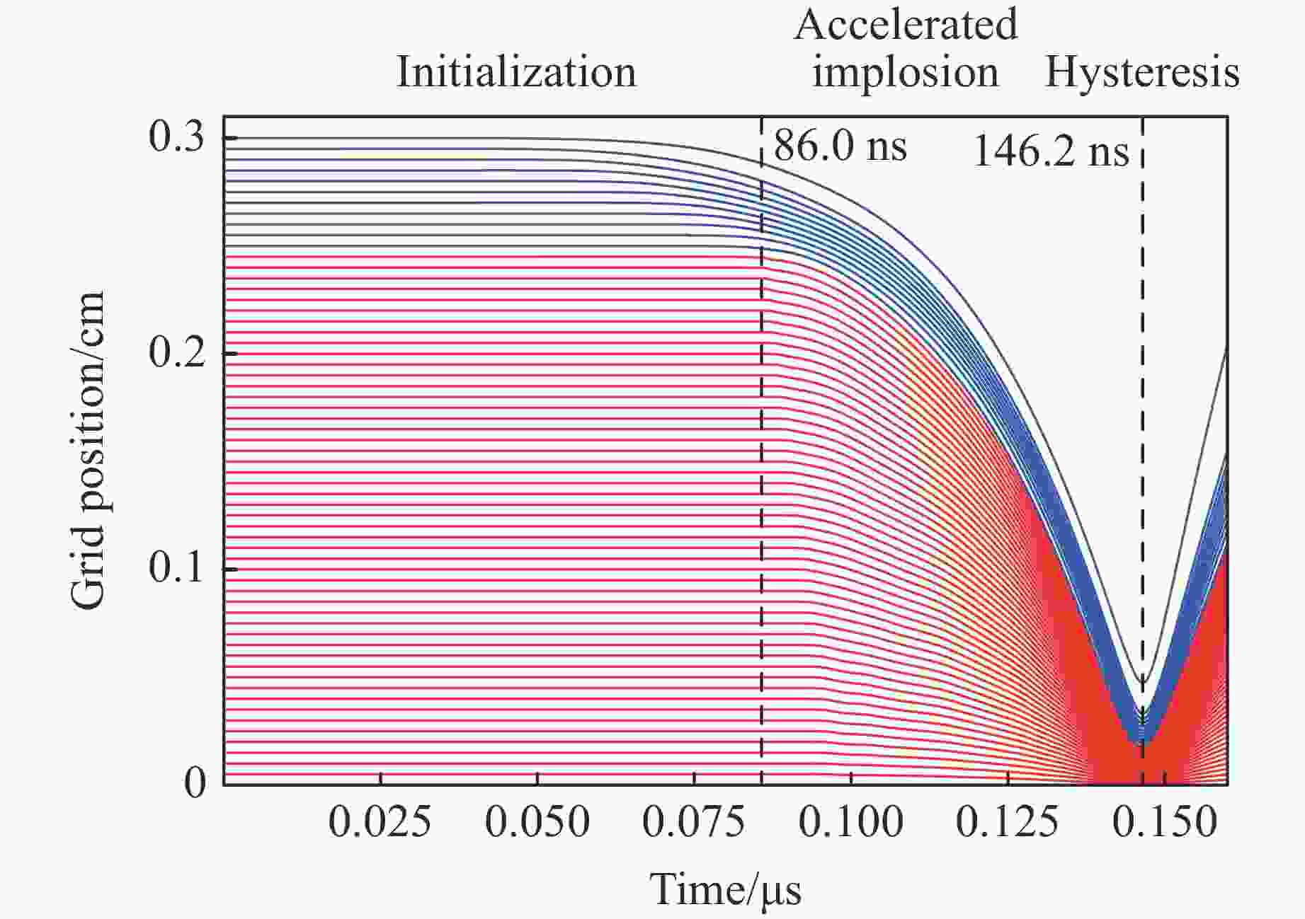 摘要: 磁化套筒惯性聚变(MagLIF)结合了传统磁约束聚变(MCF)与惯性约束聚变(ICF)的优势,理论上在有限的驱动能力下可以有效降低聚变实现的难度,具有极大的应用潜力。基于一维集成化物理模型编写了数值模拟程序,以ZR装置典型驱动能力27 MA为出发点,以时间演化为顺序,通过数值模拟系统性地总结分析了典型负载参数下MagLIF构型初始化、加速内爆及迟滞3个关键过程中重要特征参量的分布及演化情况。数值模拟结果有助于理解MagLIF构型从预加热经由燃料压缩到最终发生聚变这一快速而复杂的过程,从而为建立相应的物理图像和认知提供了重要支撑,与传统ICF典型参数的对比也体现了该构型的优势所在,为后续研究奠定了基础。