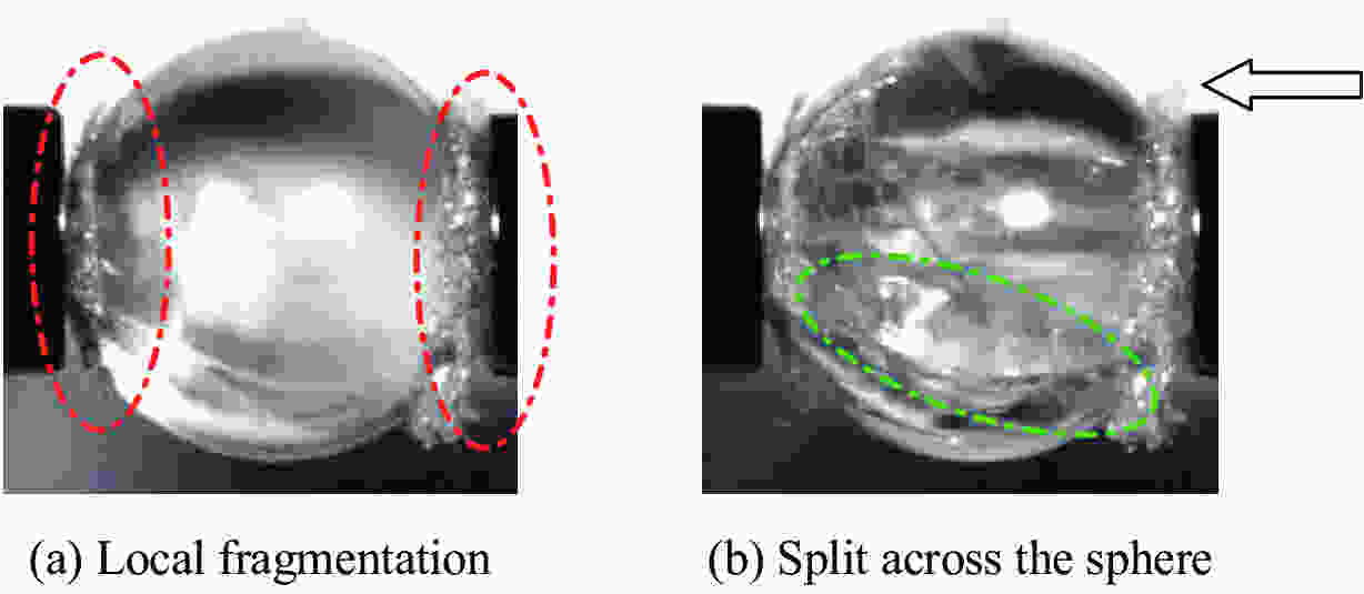 方继松, 王珠, 熊迅, 等. 石英玻璃球撞击刚性壁的破碎过程 [J]. 高压物理学报, 2020, 34(1): 014101.FANG J S, WANG Z, XIONG X, et al. Fragmentation process of quartz glass spheres impacting rigid wall [J]. Chinese Journal of High Pressure Physics, 2020, 34(1): 014101.