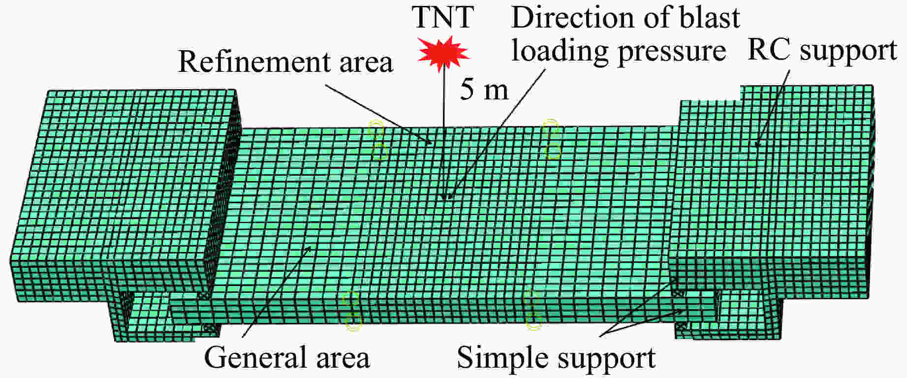 [1] 吴丽丽, 琚祥凯, 吕步凡, 等. 考虑滑移效应的钢板-混凝土组合板刚度分析 [J]. 湖南大学学报(自然科学版), 2019, 46(3): 59–65.WU L L, JU X K, LÜ B F, et al. Stiffness analysis of steel plate-concrete composite slab considering slip Effect [J]. Journal of Hunan University (Natural Sciences), 2019, 46(3): 59–65. [2] 曲艳东, 张迪迪, 李正鹏, 等. 不同连接方式对钢梁钢柱节点抗爆性能的影响 [J]. 工程爆破, 2019, 25(6): 1–6.QU Y D, ZHANG D D, LI Z P, et al. Influence of different link methods on the anti-explosion performance of steel beam-column joints [J]. Engineering Blasting, 2019, 25(6): 1–6. [3] 彭先泽, 杨军, 李顺波, 等. 爆炸冲击载荷作用下双层钢板混凝土板与钢筋混凝土板动态响应对比研究 [J]. 防灾科技学院学报, 2012, 14(3): 18–23. doi: 10.3969/j.issn.1673-8047.2012.03.004PENG X Z, YANG J, LI S B, et al. Comparative study on dynamic response of bi-steel slab and reinforced concrete slab under blast loading [J]. Journal of Institute of Disaster Prevention, 2012, 14(3): 18–23. doi: 10.3969/j.issn.1673-8047.2012.03.004 [4] MENG L Z, WANG Y H, ZHAI X M. Modeling and dynamic response of curved steel-concrete-steel sandwich shells under blast loading [J]. International Journal of Steel Structures, 2020, 20(5): 1663–1681. doi: 10.1007/s13296-020-00403-8 [5] 田志敏, 章峻豪, 江世永. 钢板混凝土复合梁在爆炸荷载作用下的损伤评估研究 [J]. 振动与冲击, 2016, 35(4): 42–48.TIAN Z M, ZHANG J H, JIANG S Y. Damage assessment of steel-concrete composite beam subjected to blast loading [J]. Journal of Vibration and Shock, 2016, 35(4): 42–48. [6] QU Y D, LIU W L, GWARZO M, et al. Parametric study of anti-explosion performance of reinforced concrete T-shaped beam strengthened with steel plates [J]. Construction and Building Materials, 2017, 156: 692–707. doi: 10.1016/j.conbuildmat.2017.08.150 [7] ABBAS A, ADIL M, AHMAD N, et al. Behavior of reinforced concrete sandwiched panels (RCSPs) under blast load [J]. Engineering Structures, 2019, 181: 476–490. doi: 10.1016/j.engstruct.2018.12.051 [8] 柳锦春, 方秦, 张亚栋, 等. 爆炸荷载作用下内衬钢板的混凝土组合结构的局部效应分析 [J]. 兵工学报, 2004, 25(6): 773–776.LIU J C, FANG Q, ZHANG Y D, et al. Analysis of local effects on steel-backed concrete composite structures under blast loading [J]. Acta Armamentarii, 2004, 25(6): 773–776. [9] 卢国强, 林润德. 混凝土-钢板结构在爆炸作用下变形的计算方法 [J]. 同济大学学报, 2000, 28(5): 510–512.LU G Q, LIN R D. Calculating method for deformation of structures of reinforced concrete-steel plate against explosion action [J]. Journal of Tongji University, 2000, 28(5): 510–512. [10] 刘宗贤. 钢板混凝土梁的动力计算与抗爆分析 [J]. 爆炸与冲击, 1985, 5(1): 24–39.LIU Z X. The dynamic calculation and the anti-blast analysis for the composite steel-concrete beams [J]. Explosion and Shock Waves, 1985, 5(1): 24–39. [11] ZHAO C F, LU X, WANG Q, et al. Experimental and numerical investigation of steel-concrete (SC) slabs under contact blast loading [J]. Engineering Structures, 2019, 196: 109337. doi: 10.1016/j.engstruct.2019.109337 [12] BRUHL J C, VARMA A H. Experimental evaluation of steel-plate composite walls subject to blast loads [J]. Journal of Structural Engineering, 2018, 144(9): 4018155. doi: 10.1061/(ASCE)ST.1943-541X.0002163 [13] ANANDAVALLI N, LAKSHMANAN N, IYER N R, et al. A novel modelling technique for blast analysis of steel-concrete composite panels [J]. Procedia Engineering, 2011, 14: 2429–2437. doi: 10.1016/j.proeng.2011.07.305 [14] WU J, ZHOU Y M, ZHANG R, et al. Numerical simulation of reinforced concrete slab subjected to blast loading and the structural damage assessment [J]. Engineering Failure Analysis, 2020, 118: 104926. doi: 10.1016/j.engfailanal.2020.104926 [15] QU Y D, LI X, KONG X Q, et al. Numerical simulation on dynamic behavior of reinforced concrete beam with initial cracks subjected to air blast loading [J]. Engineering Structures, 2016, 128: 96–110. doi: 10.1016/j.engstruct.2016.09.032 [16] 王尧鑫, 龙仁荣, 张庆明, 等. 双层复合材料爆炸圆筒内爆载荷作用变形特征数值模拟研究 [J]. 兵工学报, 2020, 41(Suppl 2): 190–200.WANG Y X, LONG R R, ZHANG Q M, et al. Numerical simulation analysis of deformation characteristics of double layered metal plastic cylindrical shells under internal explosive loading [J]. Acta Armamentarii, 2020, 41(Suppl 2): 190–200. [17] 李正鹏, 曲艳东. 爆炸载荷作用下焊缝区附近埋地X70钢管的动力响应分析 [J]. 高压物理学报, 2020, 34(3): 034204.LI Z P, QU Y D. Dynamic response analysis of buried X70 steel pipe near weld zone under blast loads [J]. Chinese Journal of High Pressure Physics, 2020, 34(3): 034204. [18] LIEW J Y R, WANG T Y. Novel steel-concrete-steel sandwich composite plates subject to impact and blast load [J]. Advances in Structural Engineering, 2011, 14(4): 673–687. doi: 10.1260/1369-4332.14.4.673 [19] ABAQUS analysis user’s manual [M]. Providence: Dassault Systems Simulia Corporation, 2014. -
