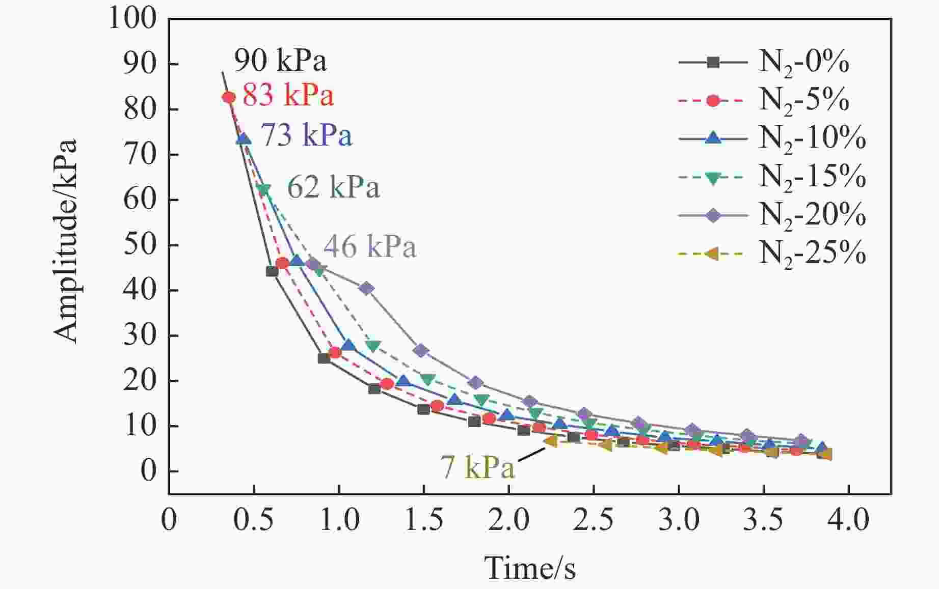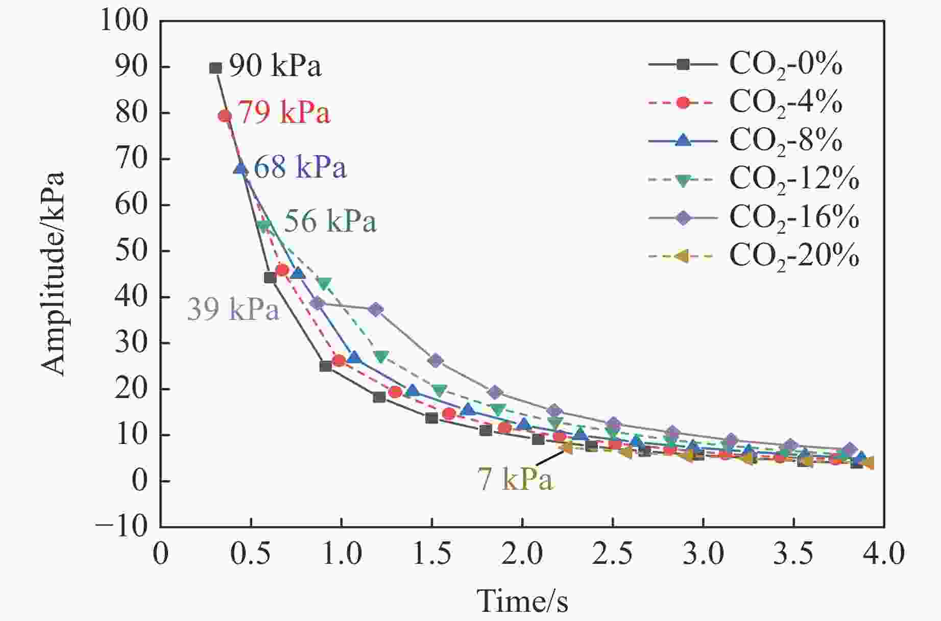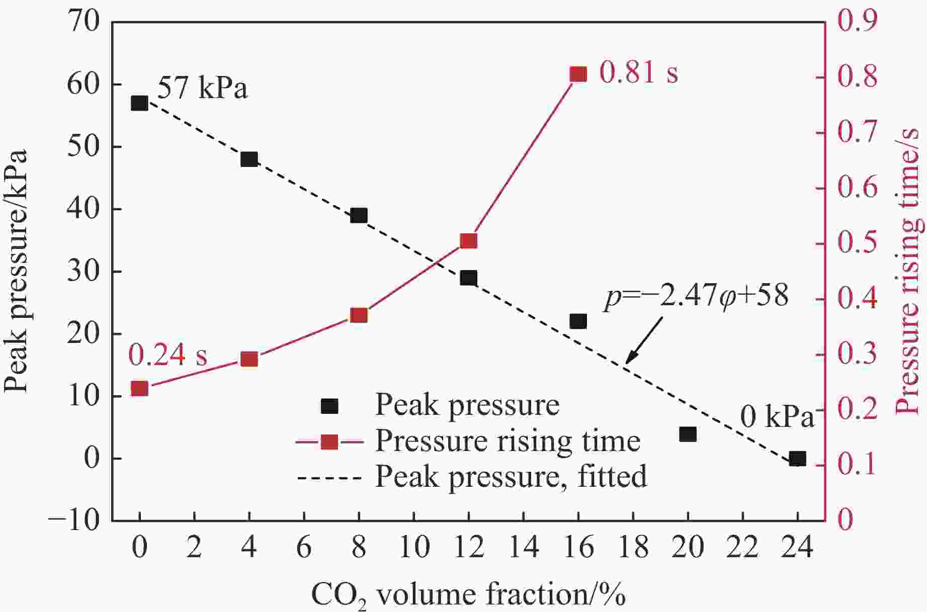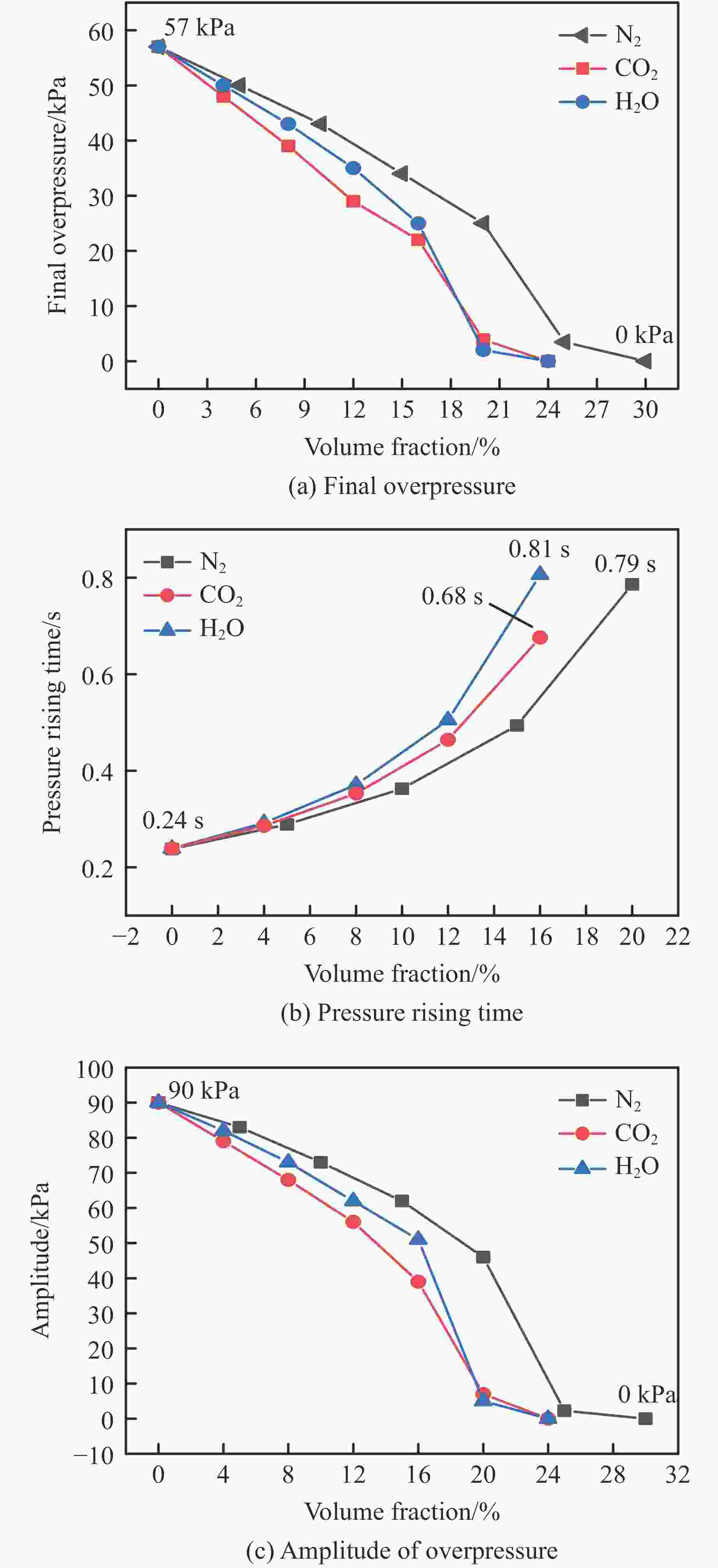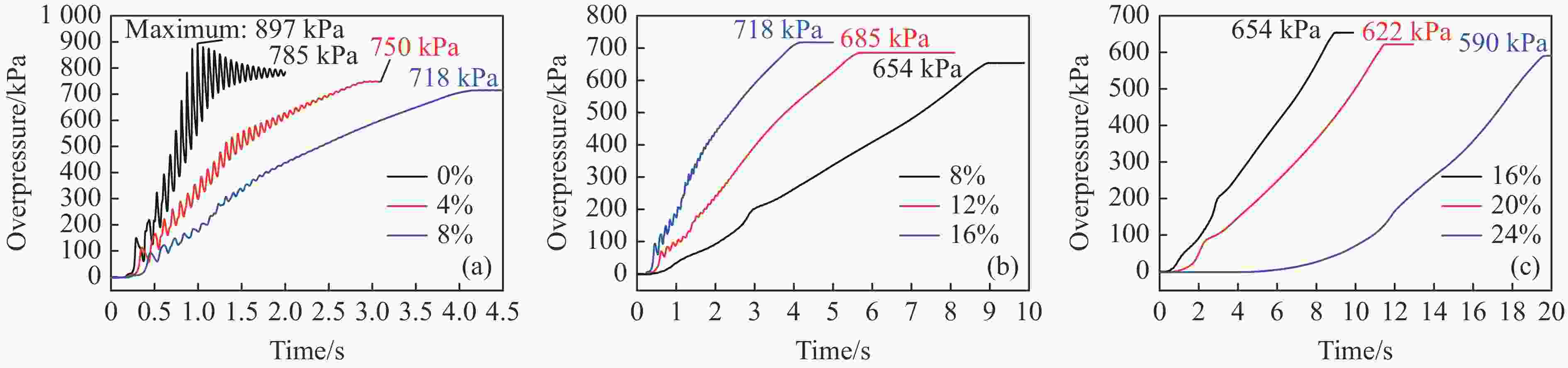 摘要: 长直空间燃气爆炸超压及其振荡将对人员和结构安全产生不利影响。为减轻燃气爆炸危害,基于CFD软件FLACS建立了长直管道空间燃气爆炸数值模型,并对模型进行了验证。利用已验证的数值模型,研究了添加不同体积分数CO2、N2和水蒸气的化学当量比CH4/空气混合气体的爆炸,讨论了惰性气体和水蒸气的体积分数对爆炸超压及其振荡的影响,并对比了3种气体的抑爆效果。结果表明:CO2、水蒸气和N2的体积分数每增加10%,密闭管道气体爆炸的最终超压将分别下降81、47、65 kPa,尾端泄爆管道分别下降24、25、20 kPa,3种气体的体积分数分别为25%、26%、30%时,爆炸被完全抑制;CO2、水蒸气和N2均能有效抑制爆炸超压的振荡,压力振幅和压力振荡频率均随添加气体体积分数的增加而减小;CO2对爆炸超压及其振荡的抑制效果最好,水蒸气次之,N2最弱,这与3种气体的物理特性及其抑爆机理的差异有关。Abstract: The overpressure and its oscillation of gas explosion in long straight space will endanger personnel and structures. In order to reduce the potential hazards, a numerical model of gas explosions in long straight tube was established based on the CFD software FLACS and was verified by using the existing experimental data. Based on the validated numerical models, the suppression of CO2, N2 and water vapor on the CH4/air mixture explosions with stoichiometric concentration was investigated. The influence of the volume fraction of inert gas and water vapor on the explosion overpressure and its oscillation was considered and discussed. It is shown that for every 10% increase in the volume fraction of CO2, water vapor and N2, the final overpressure of the gas explosion in the closed tube drops by 81, 47 and 65 kPa, the final overpressure in the end-vented tube decreases by 81, 47 and 65 kPa. When the volume fractions of CO2, water vapor and N2 are 25%, 26%, and 30%, respectively, the explosion is completely suppressed. CO2, water vapor and N2 can effectively suppress the oscillation of explosive overpressure, both the pressure amplitude and the pressure oscillation frequency decrease with the increase of the volume fraction of added gas. CO2 has the best suppression effect on explosion overpressure and its oscillation, followed by water vapor, and N2 is the weakest. This phenomenon is related to the differences in the physical properties of the three gases and the suppression mechanisms.