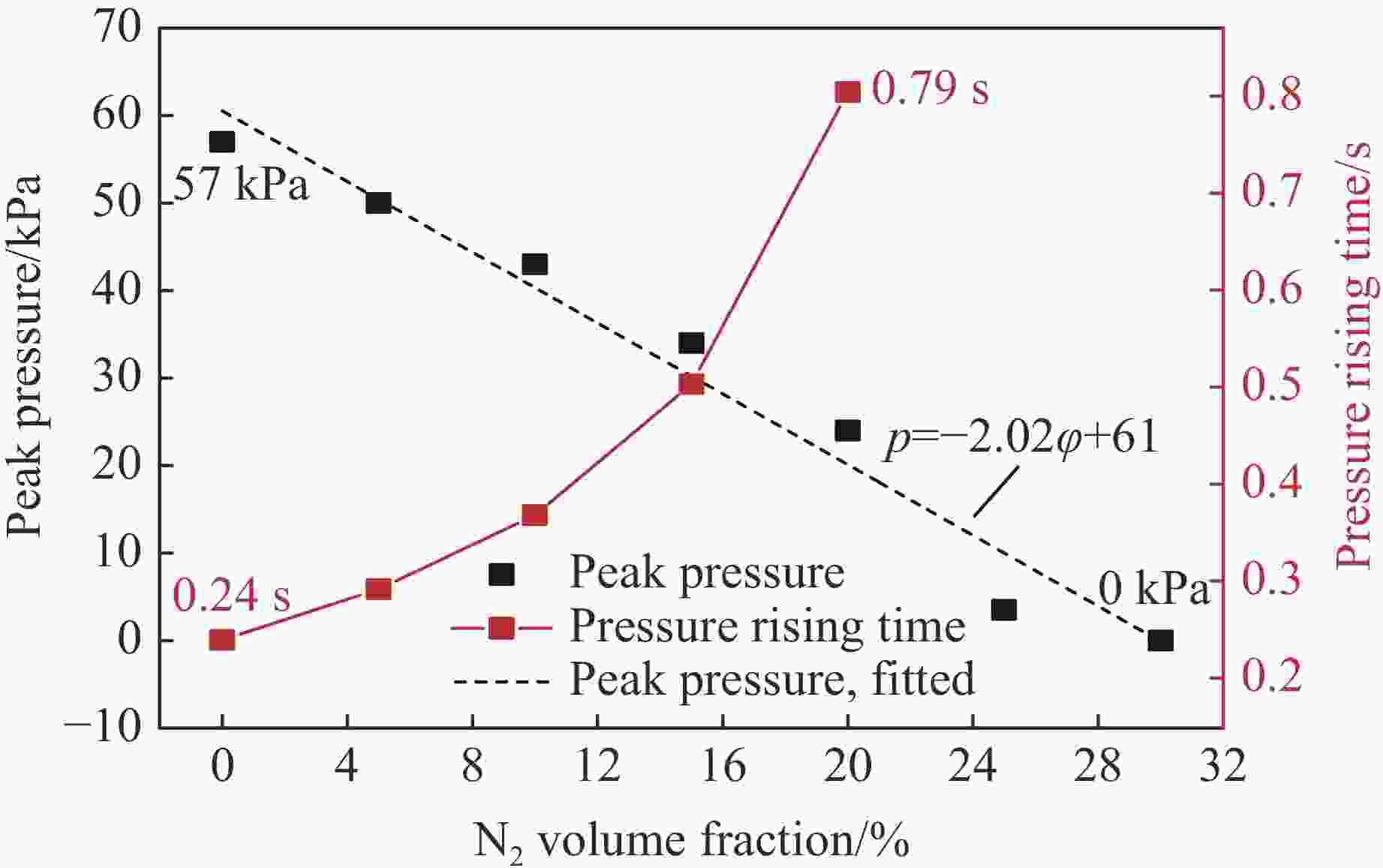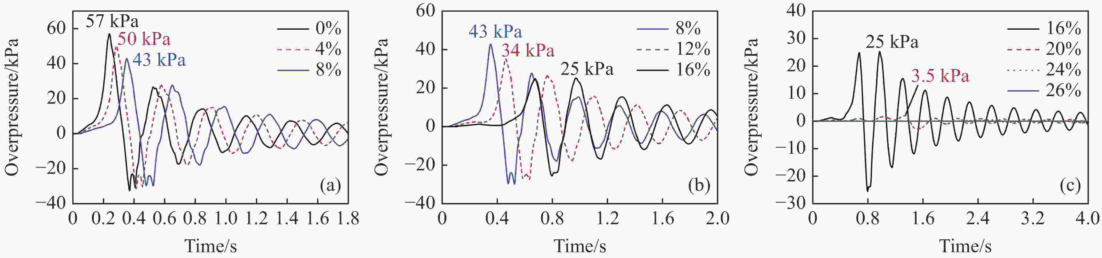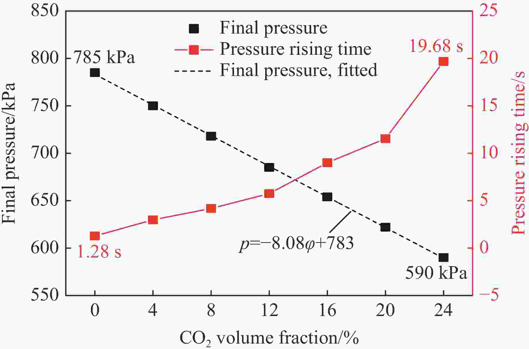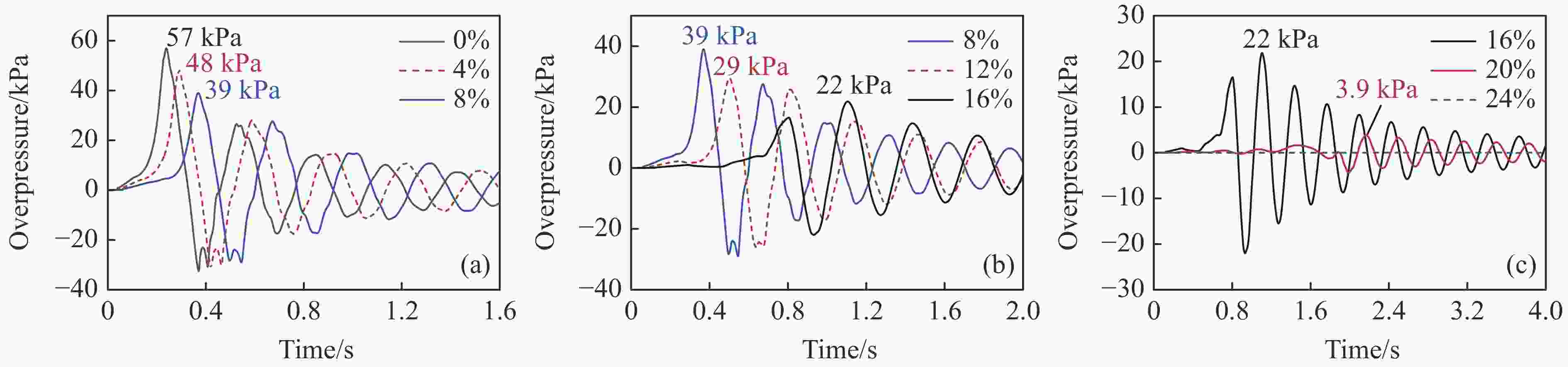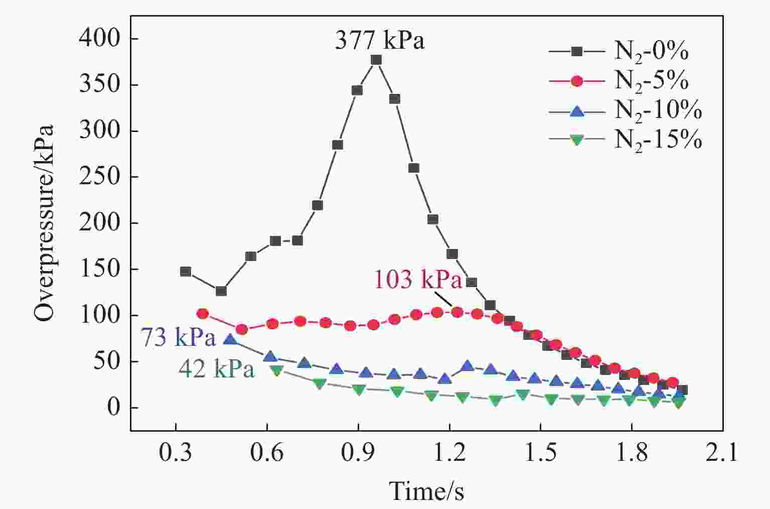 摘要: 长直空间燃气爆炸超压及其振荡将对人员和结构安全产生不利影响。为减轻燃气爆炸危害,基于CFD软件FLACS建立了长直管道空间燃气爆炸数值模型,并对模型进行了验证。利用已验证的数值模型,研究了添加不同体积分数CO2、N2和水蒸气的化学当量比CH4/空气混合气体的爆炸,讨论了惰性气体和水蒸气的体积分数对爆炸超压及其振荡的影响,并对比了3种气体的抑爆效果。结果表明:CO2、水蒸气和N2的体积分数每增加10%,密闭管道气体爆炸的最终超压将分别下降81、47、65 kPa,尾端泄爆管道分别下降24、25、20 kPa,3种气体的体积分数分别为25%、26%、30%时,爆炸被完全抑制;CO2、水蒸气和N2均能有效抑制爆炸超压的振荡,压力振幅和压力振荡频率均随添加气体体积分数的增加而减小;CO2对爆炸超压及其振荡的抑制效果最好,水蒸气次之,N2最弱,这与3种气体的物理特性及其抑爆机理的差异有关。Abstract: The overpressure and its oscillation of gas explosion in long straight space will endanger personnel and structures. In order to reduce the potential hazards, a numerical model of gas explosions in long straight tube was established based on the CFD software FLACS and was verified by using the existing experimental data. Based on the validated numerical models, the suppression of CO2, N2 and water vapor on the CH4/air mixture explosions with stoichiometric concentration was investigated. The influence of the volume fraction of inert gas and water vapor on the explosion overpressure and its oscillation was considered and discussed. It is shown that for every 10% increase in the volume fraction of CO2, water vapor and N2, the final overpressure of the gas explosion in the closed tube drops by 81, 47 and 65 kPa, the final overpressure in the end-vented tube decreases by 81, 47 and 65 kPa. When the volume fractions of CO2, water vapor and N2 are 25%, 26%, and 30%, respectively, the explosion is completely suppressed. CO2, water vapor and N2 can effectively suppress the oscillation of explosive overpressure, both the pressure amplitude and the pressure oscillation frequency decrease with the increase of the volume fraction of added gas. CO2 has the best suppression effect on explosion overpressure and its oscillation, followed by water vapor, and N2 is the weakest. This phenomenon is related to the differences in the physical properties of the three gases and the suppression mechanisms.