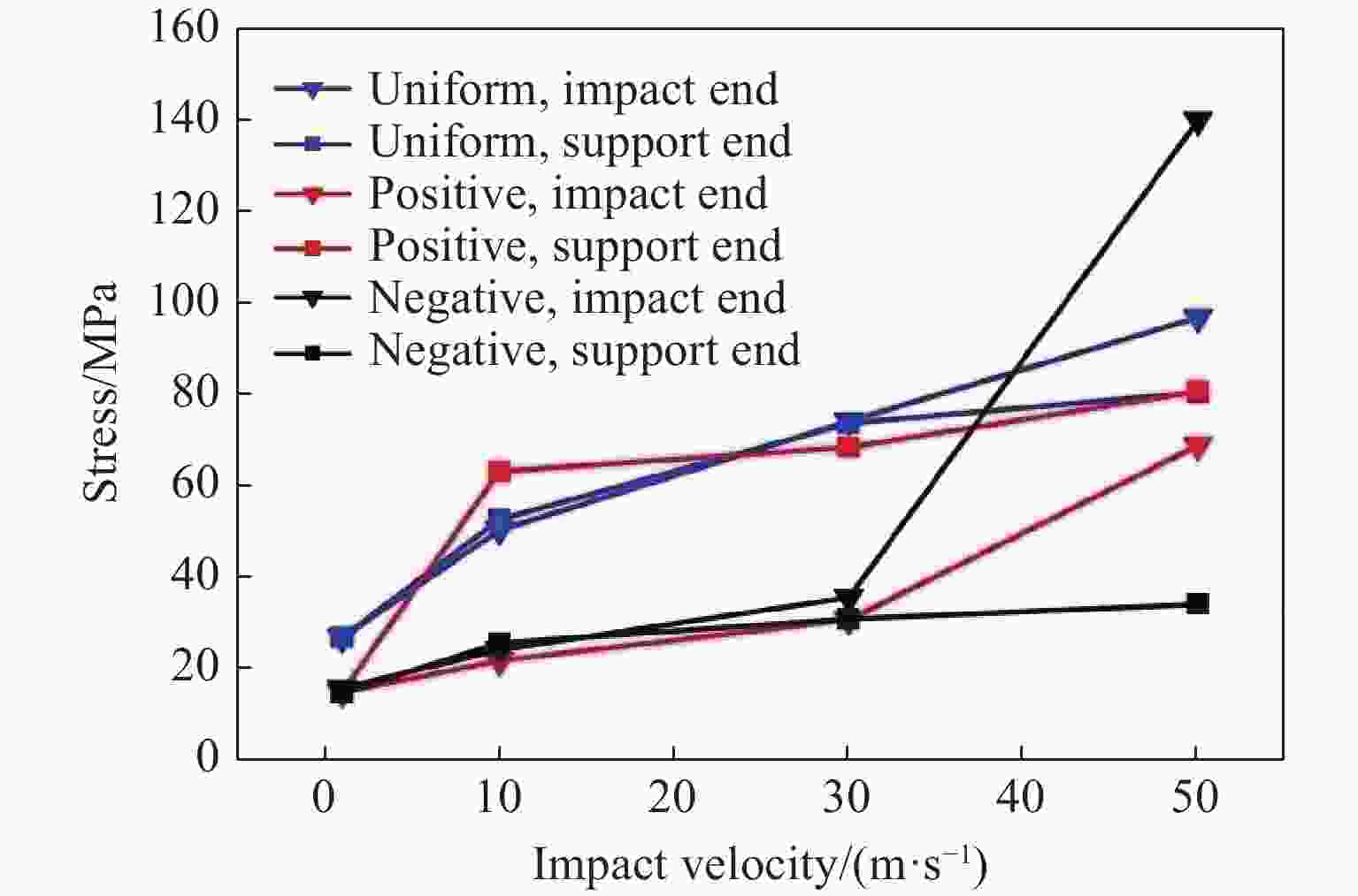 Figure  7.  Stress comparison between the impact end and support end of different structures