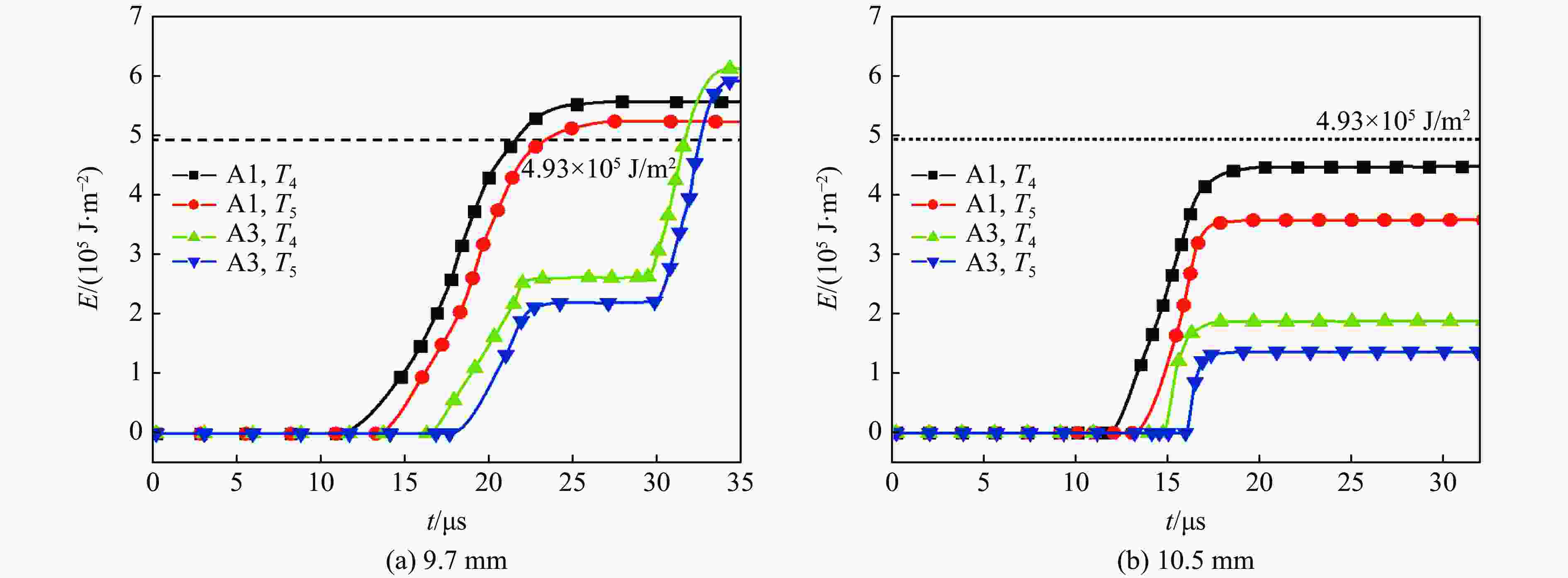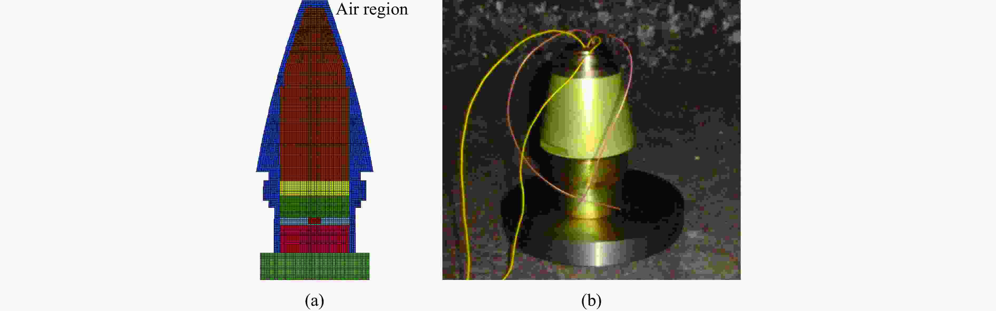 摘要: 为研究不敏感弹药或不敏感引信在战备和后勤贮存过程中的殉爆现象,利用装填JH-14C传爆药的某引信传爆序列,开展了冲击波作用下的殉爆数值模拟研究,获得了引信传爆序列爆轰波成长历程、传播规律以及临界殉爆距离,建立了冲击波能量判据,并给出了殉爆条件。结果表明:冲击波由传爆药左上向右下传播,在最右下端面处起爆,引信传爆序列的临界殉爆距离为9.7 mm;当作用冲击波能量大于临界起爆能量时,引信传爆序列发生殉爆。Abstract: In order to resolve the problem of martyred detonation of insensitive munitions or fuzes during combat readiness and logistical storage, numerical simulation of detonation sequence of the fuze under shock wave was carried out by using nonlinear finite element method. The growth course, propagation law and critical detonation distance of the fuze explosive train were obtained. And the criterion of shock wave energy was established and the condition of sympathetic detonation was given. The results showed that the detonation wave propagates from the top left to the bottom right and explodes at the bottom right, and the critical sympathetic detonation distance of the fuze explosive train is 9.7 mm. When the shock wave energy was greater than the critical detonation energy, the sympathetic detonation occurs in the fuze explosive train.