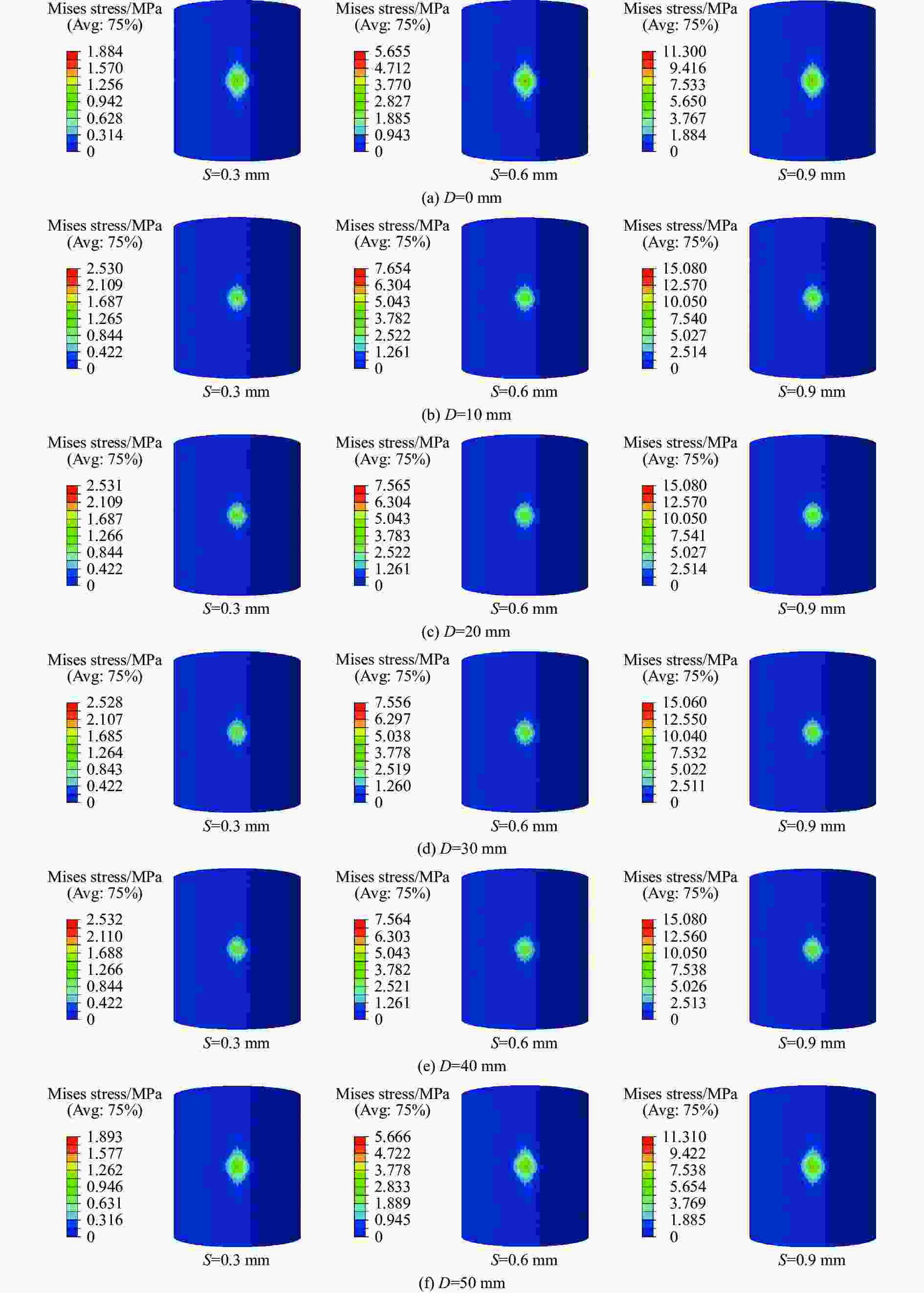 图  含有不同尺寸分层缺陷复合材料压力容器的应力云图