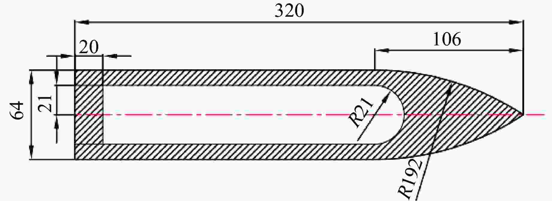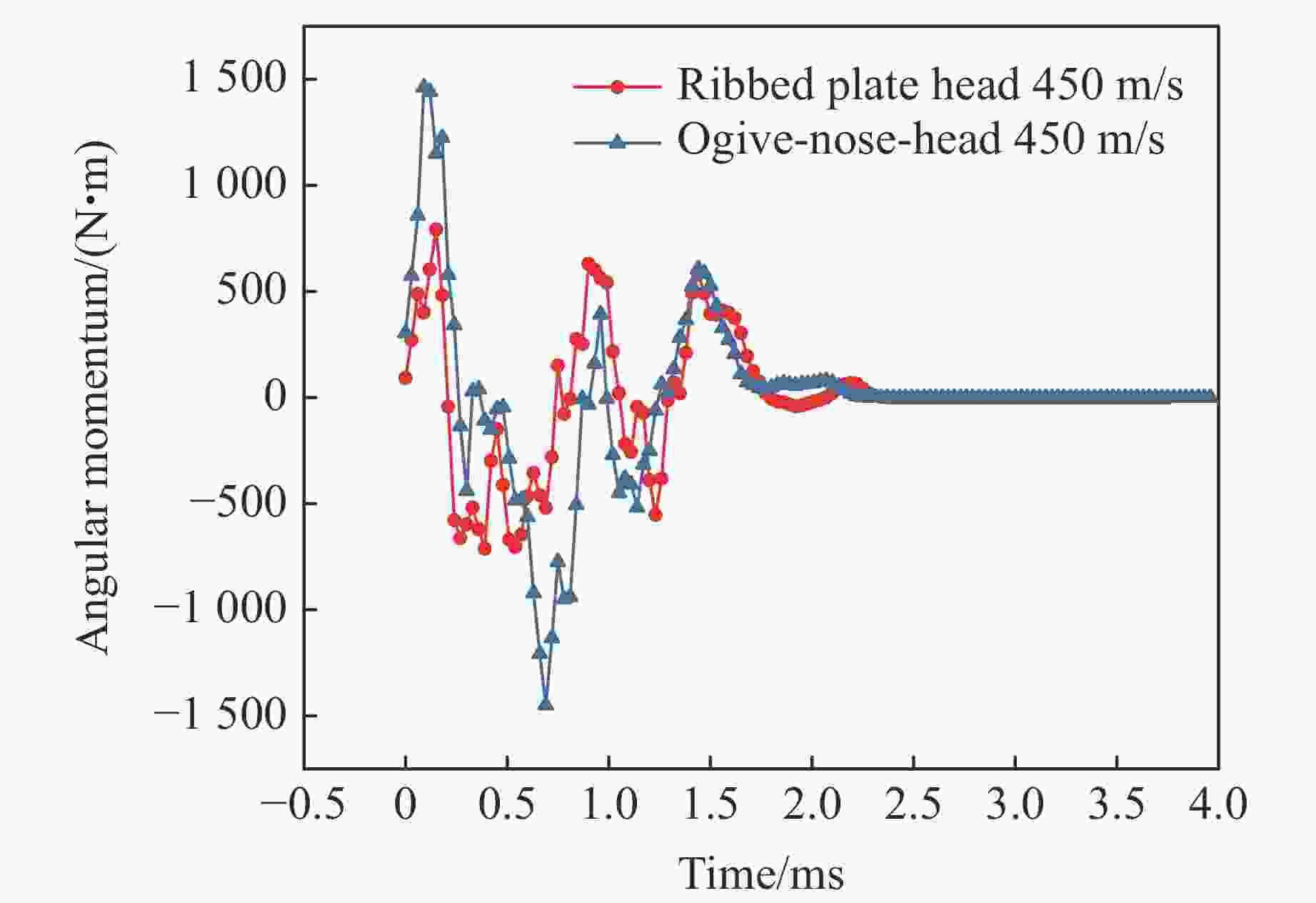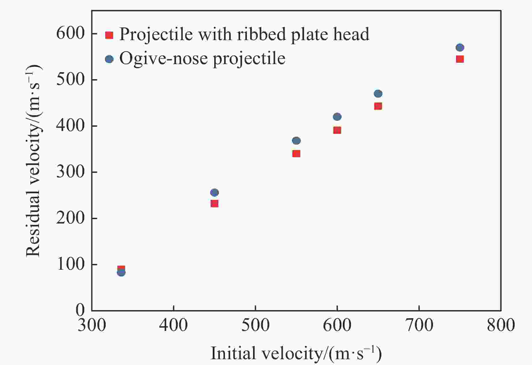 摘要: 为了探究一种新型头部带肋板的异形结构弹体斜贯穿混凝土靶的能力和弹道稳定性,利用一级轻气炮,开展了250~350 m/s速度范围内,以0°、15°和30°倾角贯穿300 mm厚混凝土靶的实验,并对同质量、同质心位置的尖卵形头部弹体和头部带肋板异形弹进行了不同速度和倾角下贯穿混凝土靶的模拟计算,模拟结果与实验结果吻合较好。实验和数值模拟结果表明:斜侵彻会降低弹体的贯穿能力,同时影响弹体姿态;在实验工况下,靶板贯穿只有开坑区和冲塞区,开坑区会增大弹体姿态角,而冲塞区会减小弹体姿态角;与尖卵形弹相比,虽然该异形弹头部凸台结构增加了弹靶作用面积导致侵彻能力下降,但是头部的肋板结构使得弹体侵入靶体时受到的偏转力矩更小,弹体有更为优异的抗偏转效果和弹道稳定性。Abstract: This paper is focused on a special-shaped projectile with ribbed plate head. In order to explore its penetration ability and trajectory stability, the 152 mm diameter light gas gun was used to launch projectiles to penetrate concrete targets of 300 mm thickness at different angles within the speed range of 250–350 m/s. In the meantime, numerical simulations of ogive-nose projectile and ribbed-head projectile perforating concrete targets with different velocities and inclination angles were implemented with LS-DYNA, and the simulation results are in good agreement with the experimental results. The experimental and simulation results show that oblique penetration will reduce the penetration ability and affect the trajectory stability of projectile. Under experimental conditions, the main damage of the target plate includes the open pit area and the shear plug area. The crater area will increase the attitude angle of projectile, while the caving zone will reduce the attitude angle. Compared with the ogive-nose projectile, although the penetration ability of the special-shaped projectile decreases due to the increase of the action area, the rib structure of the special-shaped projectile makes the missile body suffer less deflection moment when the projectile intrudes into the target, which makes the projectile body have an excellent anti-deflection effect and trajectory stability.