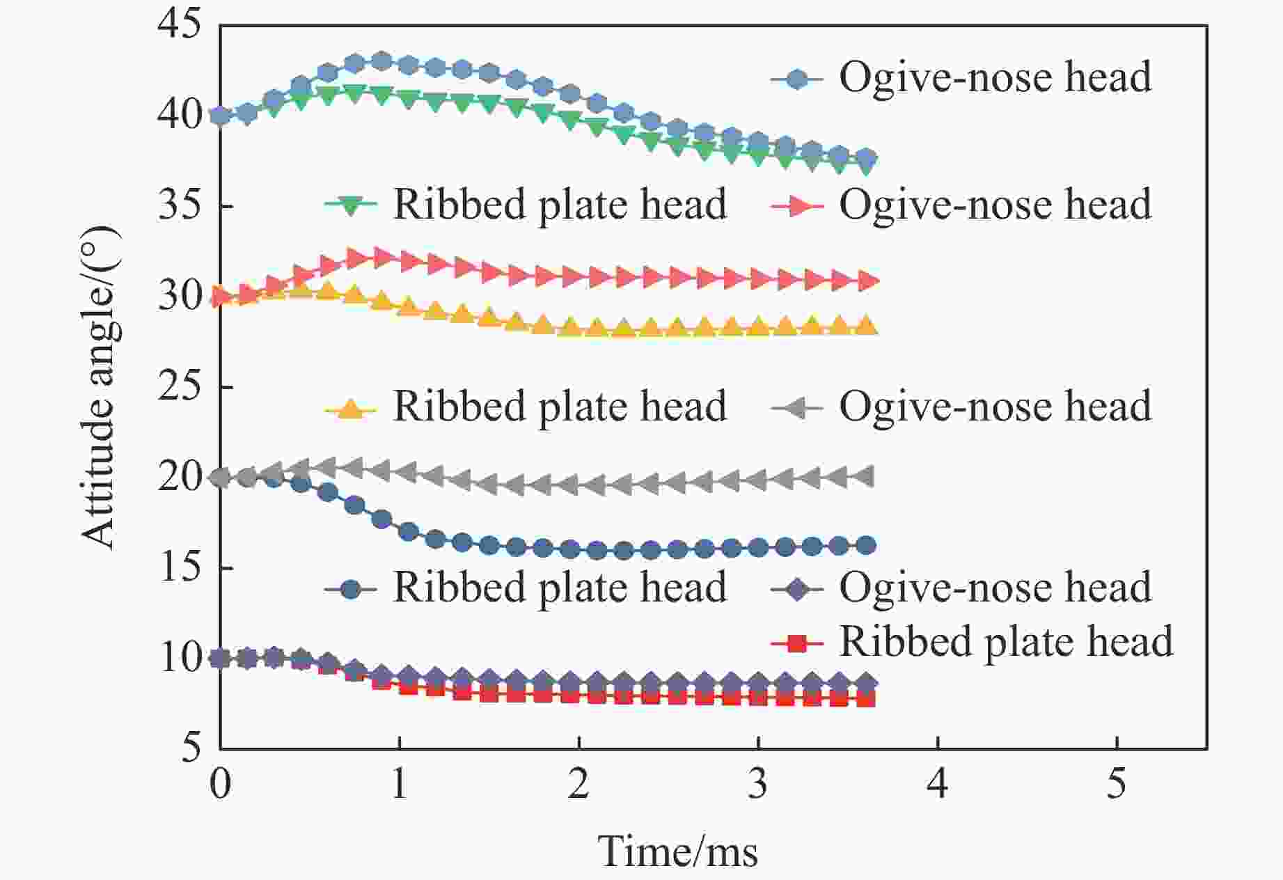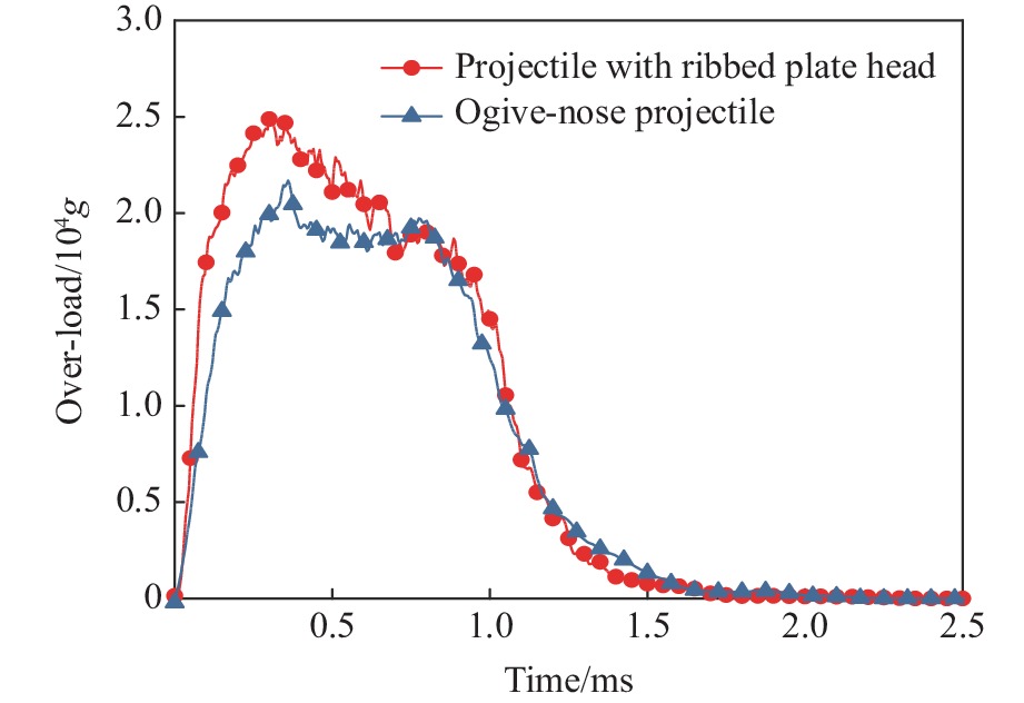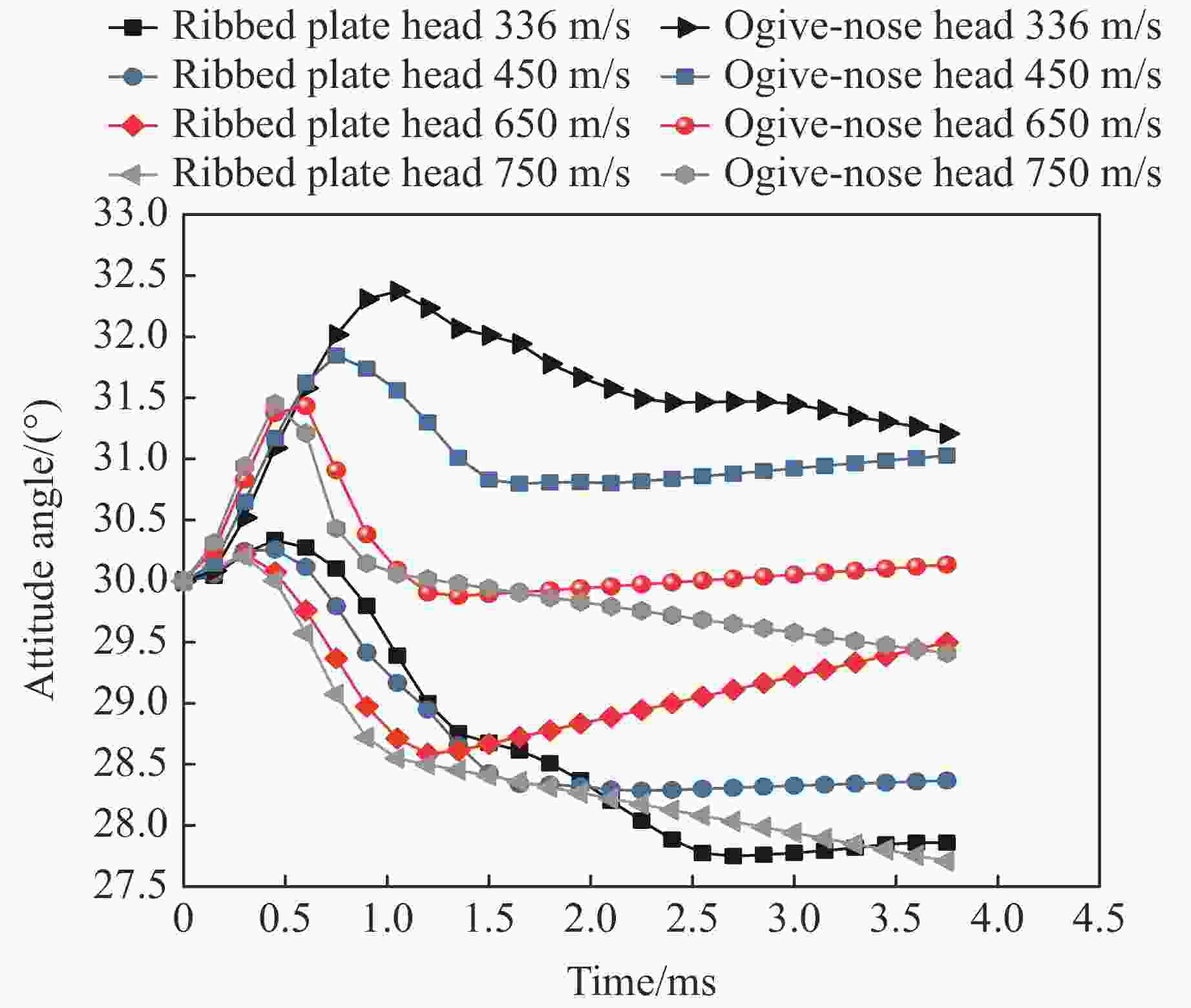 摘要: 为了探究一种新型头部带肋板的异形结构弹体斜贯穿混凝土靶的能力和弹道稳定性,利用一级轻气炮,开展了250~350 m/s速度范围内,以0°、15°和30°倾角贯穿300 mm厚混凝土靶的实验,并对同质量、同质心位置的尖卵形头部弹体和头部带肋板异形弹进行了不同速度和倾角下贯穿混凝土靶的模拟计算,模拟结果与实验结果吻合较好。实验和数值模拟结果表明:斜侵彻会降低弹体的贯穿能力,同时影响弹体姿态;在实验工况下,靶板贯穿只有开坑区和冲塞区,开坑区会增大弹体姿态角,而冲塞区会减小弹体姿态角;与尖卵形弹相比,虽然该异形弹头部凸台结构增加了弹靶作用面积导致侵彻能力下降,但是头部的肋板结构使得弹体侵入靶体时受到的偏转力矩更小,弹体有更为优异的抗偏转效果和弹道稳定性。Abstract: This paper is focused on a special-shaped projectile with ribbed plate head. In order to explore its penetration ability and trajectory stability, the 152 mm diameter light gas gun was used to launch projectiles to penetrate concrete targets of 300 mm thickness at different angles within the speed range of 250–350 m/s. In the meantime, numerical simulations of ogive-nose projectile and ribbed-head projectile perforating concrete targets with different velocities and inclination angles were implemented with LS-DYNA, and the simulation results are in good agreement with the experimental results. The experimental and simulation results show that oblique penetration will reduce the penetration ability and affect the trajectory stability of projectile. Under experimental conditions, the main damage of the target plate includes the open pit area and the shear plug area. The crater area will increase the attitude angle of projectile, while the caving zone will reduce the attitude angle. Compared with the ogive-nose projectile, although the penetration ability of the special-shaped projectile decreases due to the increase of the action area, the rib structure of the special-shaped projectile makes the missile body suffer less deflection moment when the projectile intrudes into the target, which makes the projectile body have an excellent anti-deflection effect and trajectory stability.