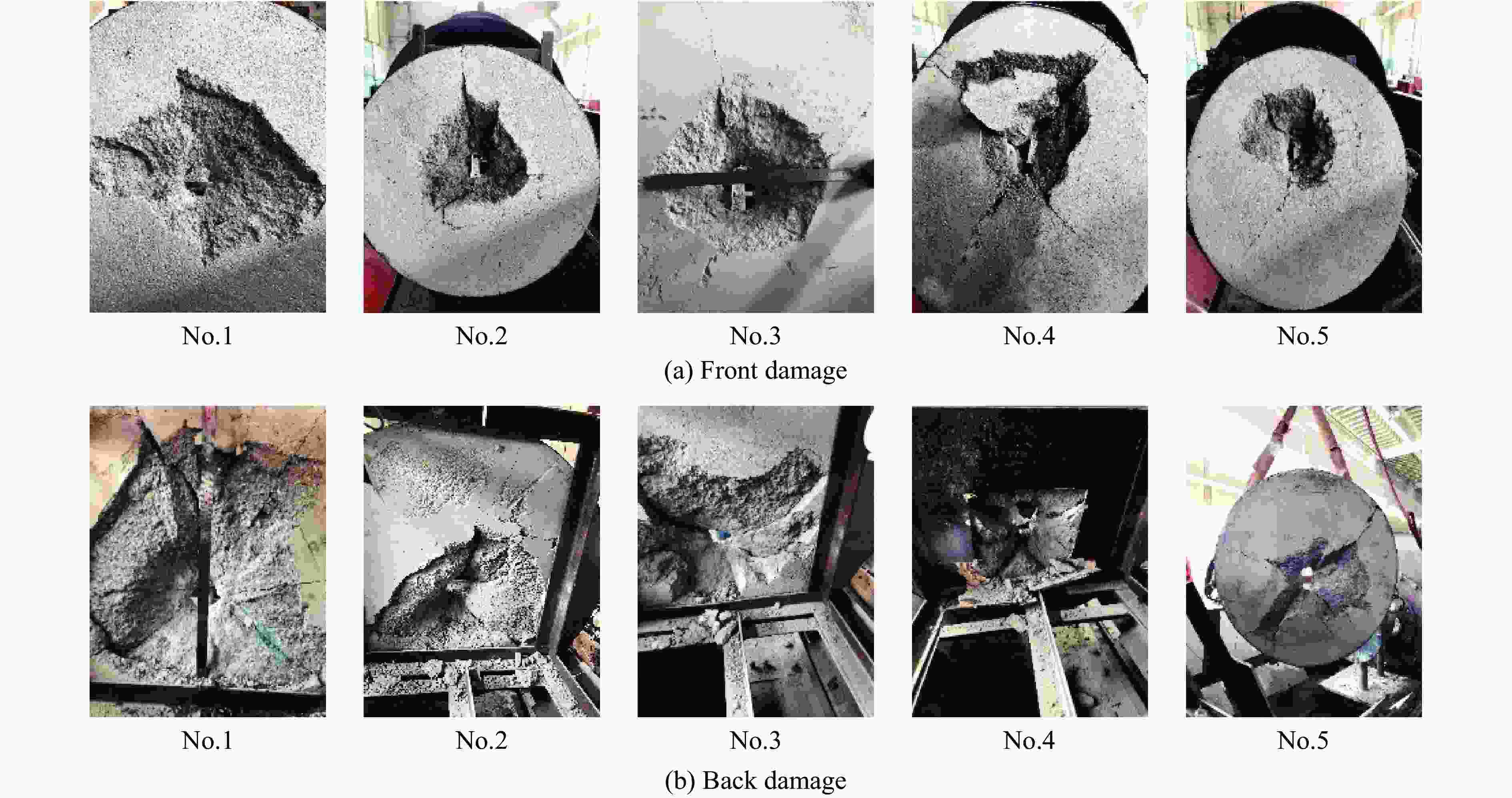 No. $\,\beta $0/(°) $\,\beta $1/(°) v0/(m·s−1) v1/(m·s−1) d1/cm d2/cm 1 0 0 322.3 133.5 59.4 70.1 2 15 −4 330.8 106.4 53.6 62.0 3 15 −27 258.0 25.2 39.1 62.5 4 30 1 335.9 81.7 59.6 74.5 5 30 −31 259.6 13.4 55.5 55.9 表 2 HJC材料模型参数