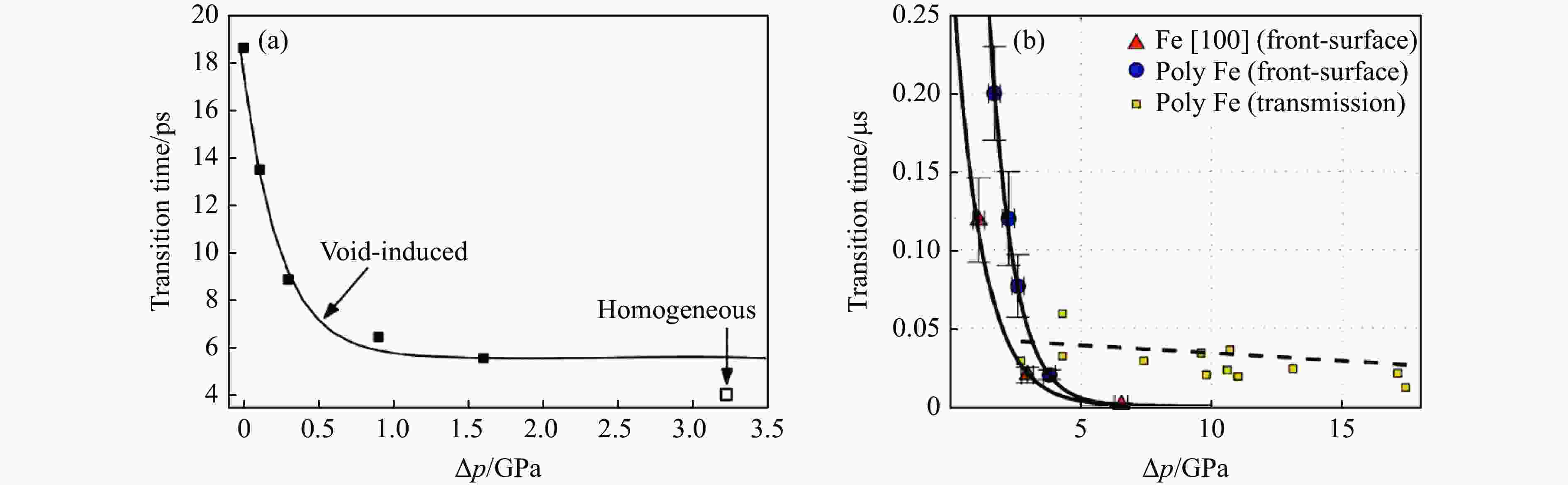 $\alpha $ ↔$\varepsilon$ 相变是金属高压相变研究领域的经典范例,随着测试技术的进步,其相变机制与动力学研究不断深入,基于激光加载的原位X射线观察结合非平衡分子动力学模拟研究是解决该问题最有效的手段之一。为此,综述了铁在动态载荷下塑性与相变的原子模拟研究进展,综合分析了铁的高压势函数,平面应变加载下晶体的各向异性、冲击强度、应变率、应变梯度、各种初始晶体缺陷等对铁相变机制的影响,以及铁的相变与层裂,同时报道了铁在非平面加载下响应规律研究的最新进展,最后进行了归纳总结和展望。Abstract:$\alpha $ ↔$\varepsilon $ transformation of iron is a prototype of high-pressure phase transition in metals. With the progress of detecting technology, mechanism and dynamics of the phase transition have being investigated in depth. Laser-driven in situ X-ray observation combined with non-equilibrium molecular dynamics simulation is one of the most effective approach to the issue. In present paper, the progress of atomic investigations on plasticity and phase transformation of iron under dynamic loading is reviewed. The effects of high-pressure interatomic potential of iron, crystal anisotropy, impact strength, strain rate, strain gradient and various initial crystal defects on phase transformation mechanism, phase transformation and spalling of iron are analyzed. Meanwhile, the latest progress of our researches on nonplanar-loading responses of iron is reported. Finally, the conclusion and prospect are given.-