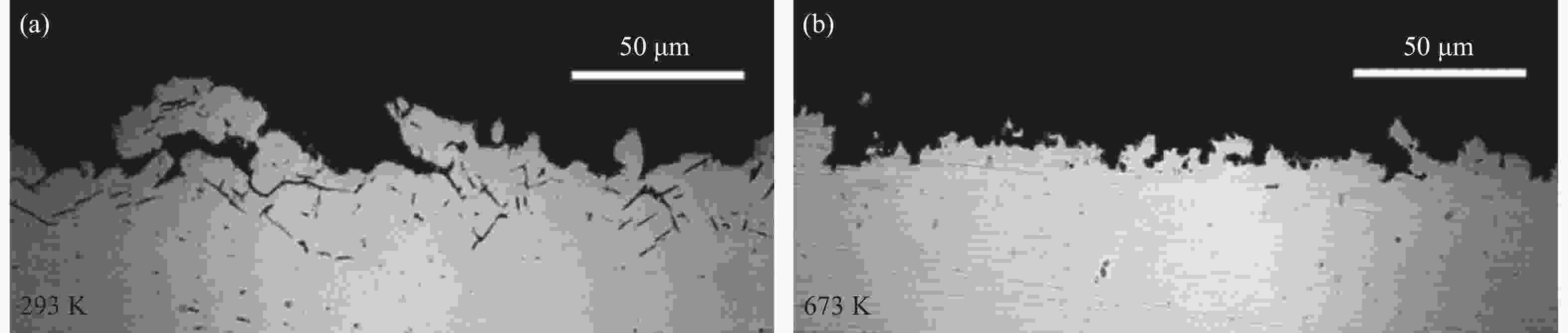 $\varSigma3$ twist grain boundary (a) and$\varSigma3$ tilt grain boundary (b) under the shock with a particle velocity of 0.5 km/s, where shock wave propagates along z direction, corresponding to <110> and <111> crystallographic direction, respectively[75]图 20 激光冲击实验回收的铁样品:(a)样品初始温度293 K,层裂面处的最高加载状态处于