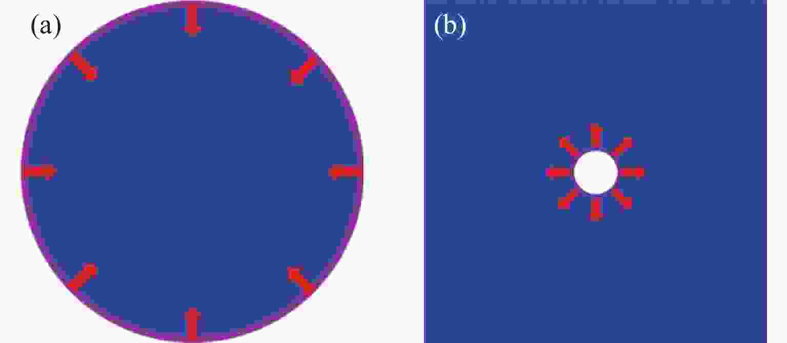 $\alpha $ →$\varepsilon $ phase transition boundary, and (b) at 673 K, where the maximum loading state of the spall plane locates at the two-phase-coexistence region[81]图 21 柱面内爆(a)和外爆(b)冲击加载示意图(蓝色表示试样,紫色圆环表示柱形势能面,红色箭头表示加载方向)