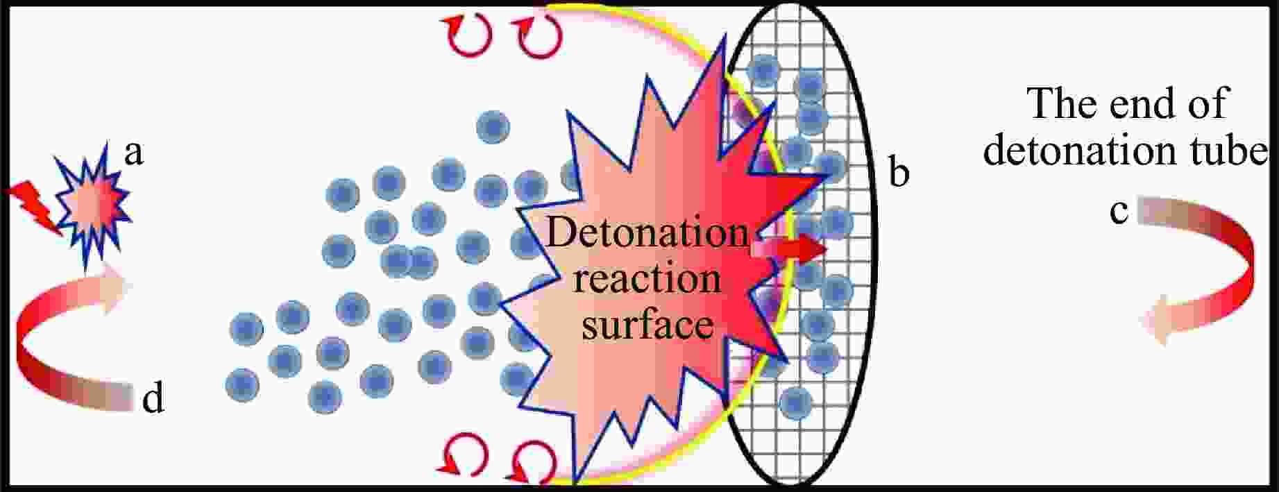 摘要: 在气相爆轰制备纳米TiO2实验中,将设计的可移动纳米粉体收集网台内置于爆轰管内,收集到了爆轰反应过程中生成的纳米TiO2,首次采用实验的方法探讨了气相爆轰制备纳米颗粒的生长机制。经分析发现,网台上与爆轰管壁收集的粉体为金红石相与锐钛矿相TiO2,且网台上TiO2的粒径明显小于管壁上收集的TiO2粒径。网台到爆轰管尾端的距离对颗粒尺寸影响非常显著,距离越近,纳米TiO2的粒径越小。结合爆轰波/冲击波在爆轰管中的传播规律,基于实验观察,进一步揭示了气相爆轰合成纳米颗粒的生长机制。Abstract: During the preparation of nano TiO2 particles via the gaseous detonation method, a portable nano-powder collection platform was located inside the gaseous detonation tube where the nano-TiO2 powders were collected based on the detonation reaction. The growth mechanism of gaseous detonation preparing nanoparticles was investigated experimentally for the first time. The results demonstrated that the TiO2 powders collected from platform and detonation tube wall consisted of rutile and anatase phases, and the particle size of TiO2 from platform is much smaller than that of tube wall. The particle size was significantly affected by the distance from platform to the end of detonation tube, and the closer the distance, the smaller the TiO2 particle size. The growth mechanism of nanoparticles prepared via gaseous detonation method was revealed based on the theory of detonation/shock wave propagation and experimental observation in detonation tube.