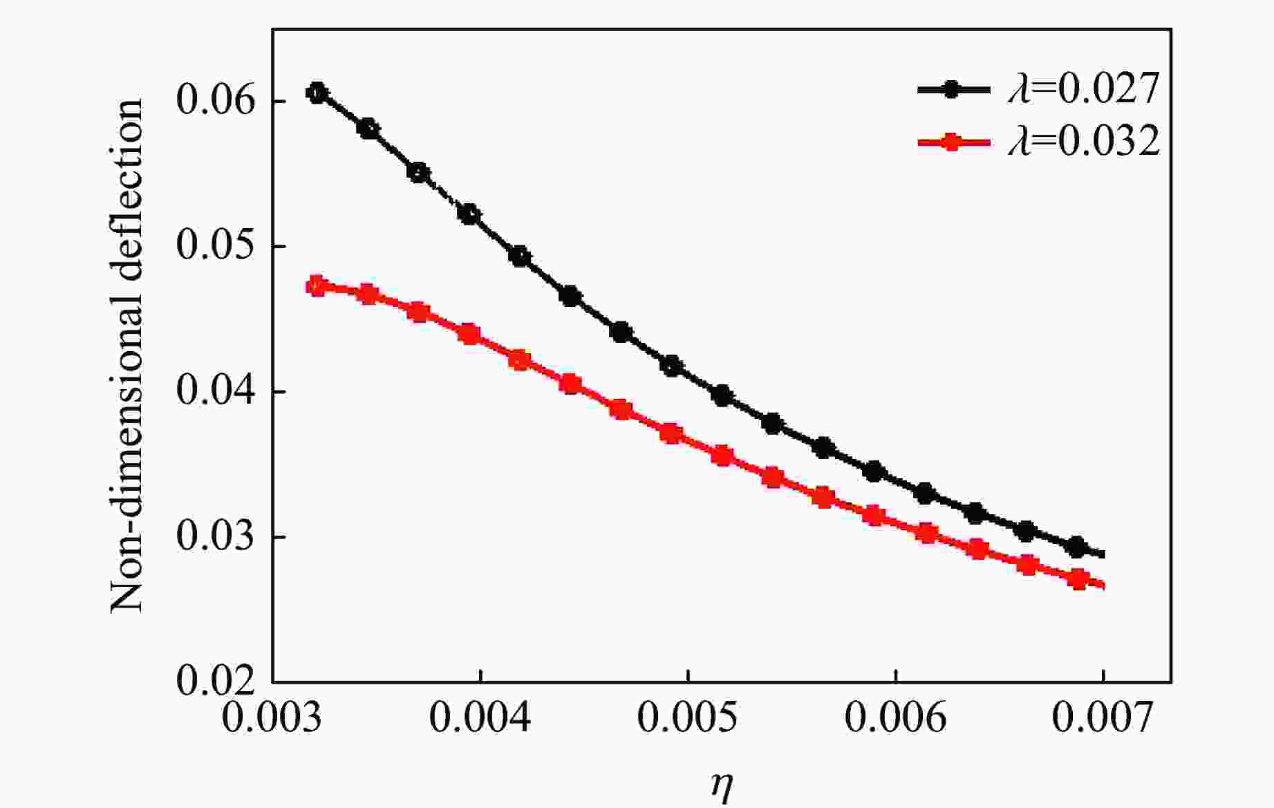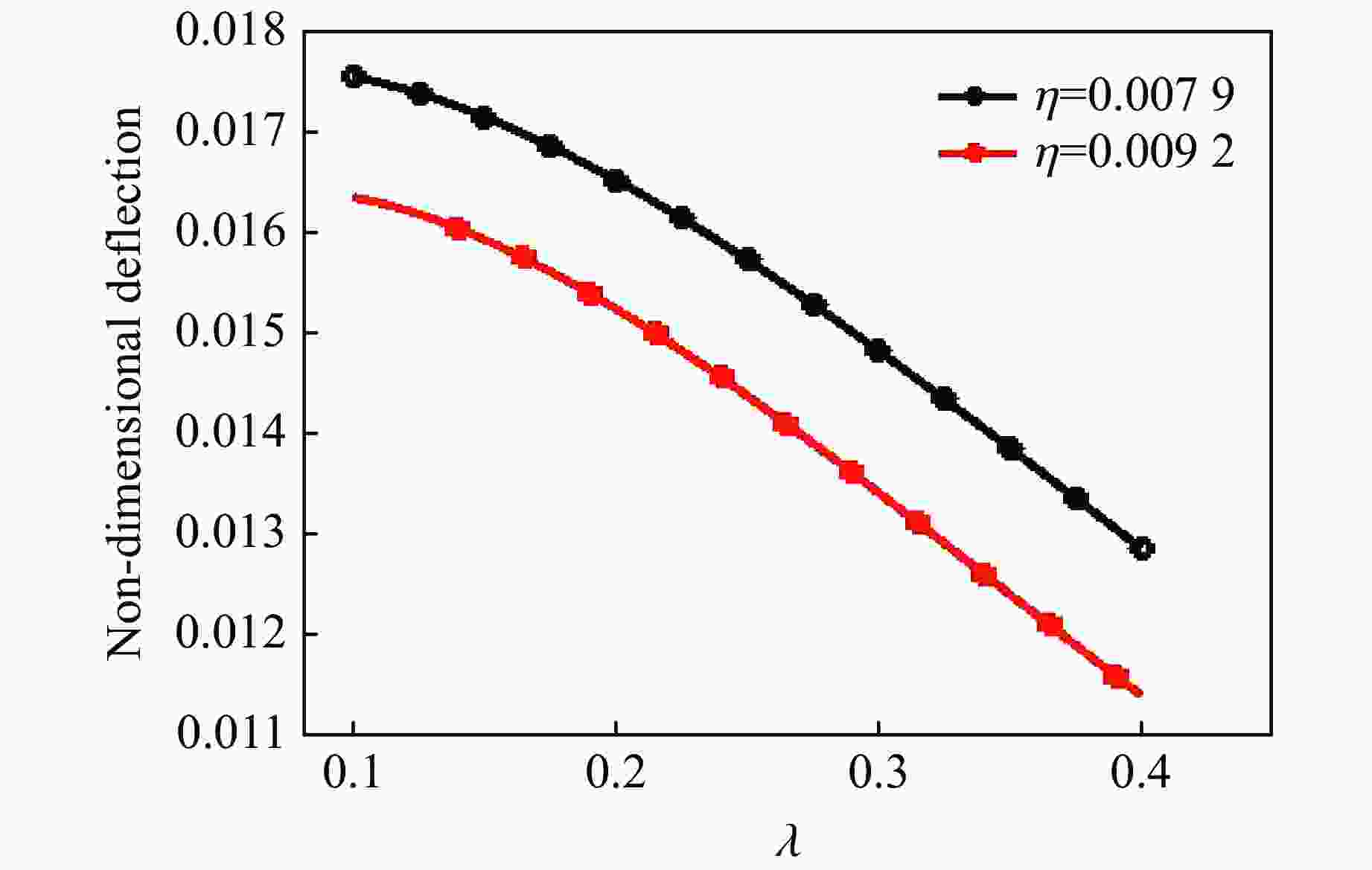 图  无量纲挠度-无量纲量η曲线