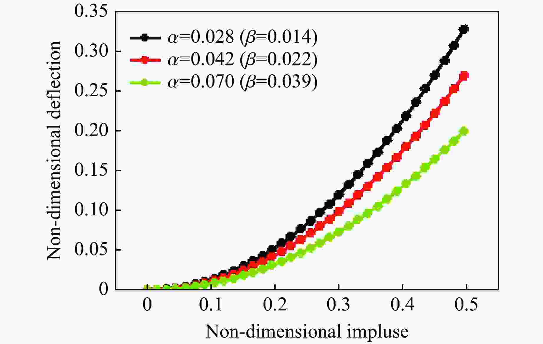 图  无量纲挠度-无量纲冲量曲线