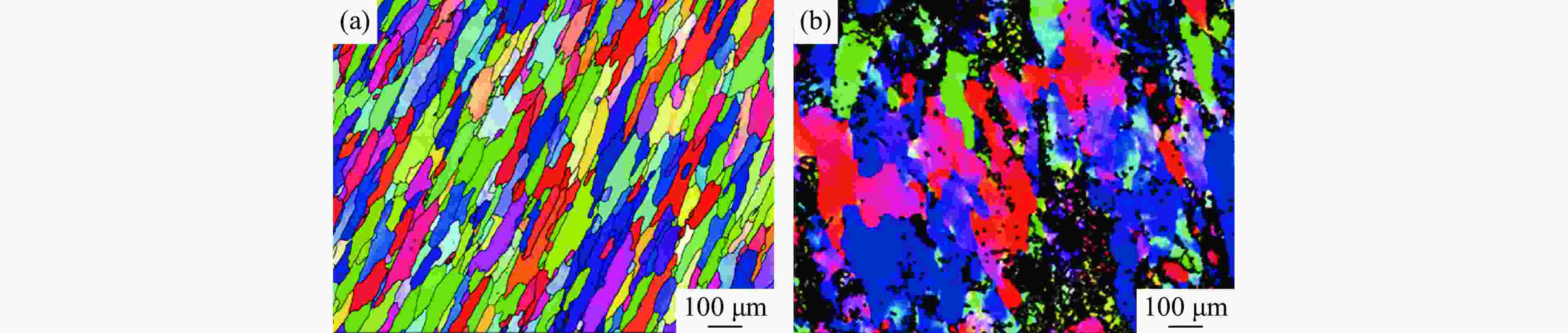 图  冲击载荷作用下增材制造AA 2624-T351合金的反极图(IPF):(a) 冲击前试样,(b) 冲击后试样(注意冲击后的试样中产生了大量小角晶界)[59]