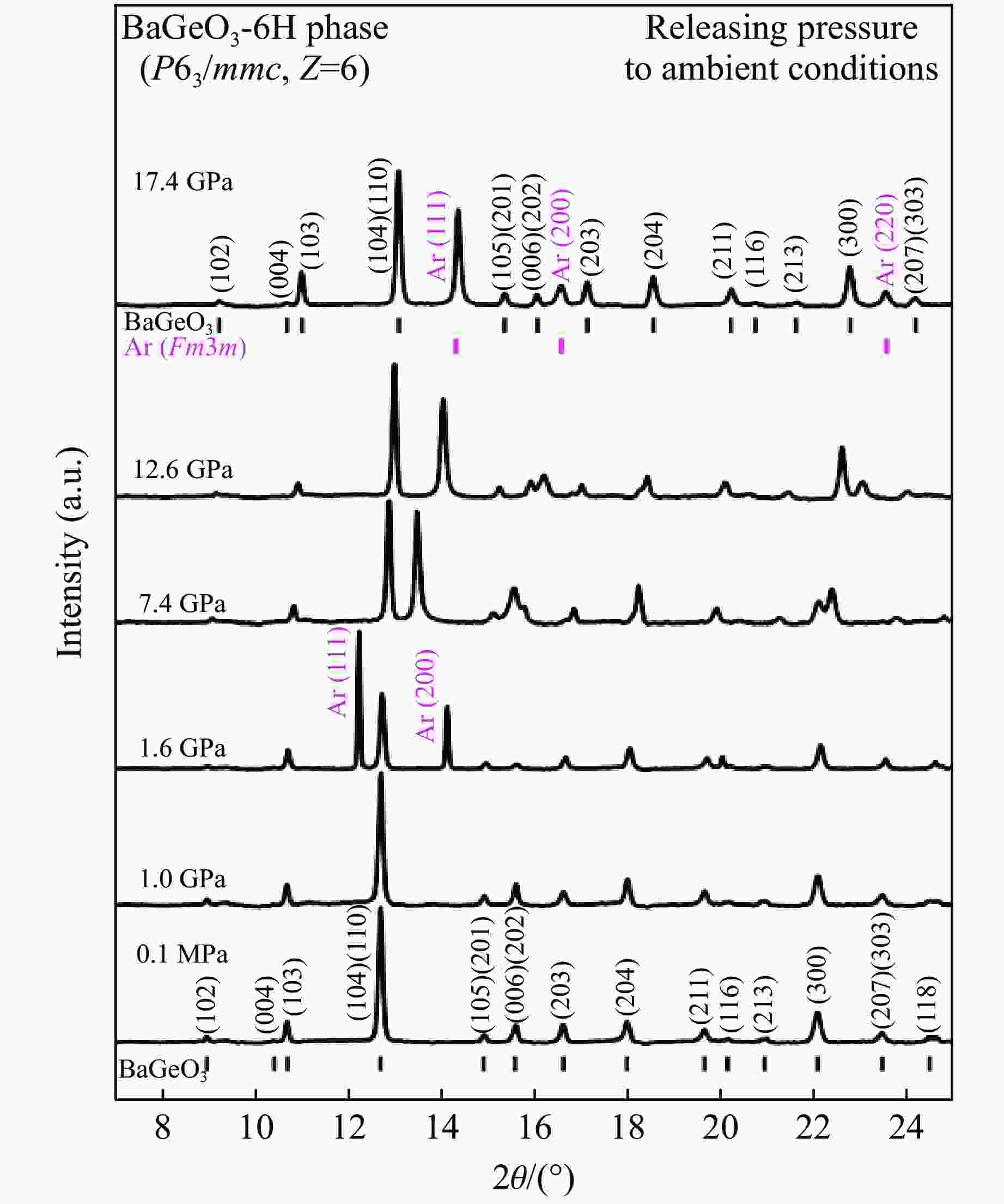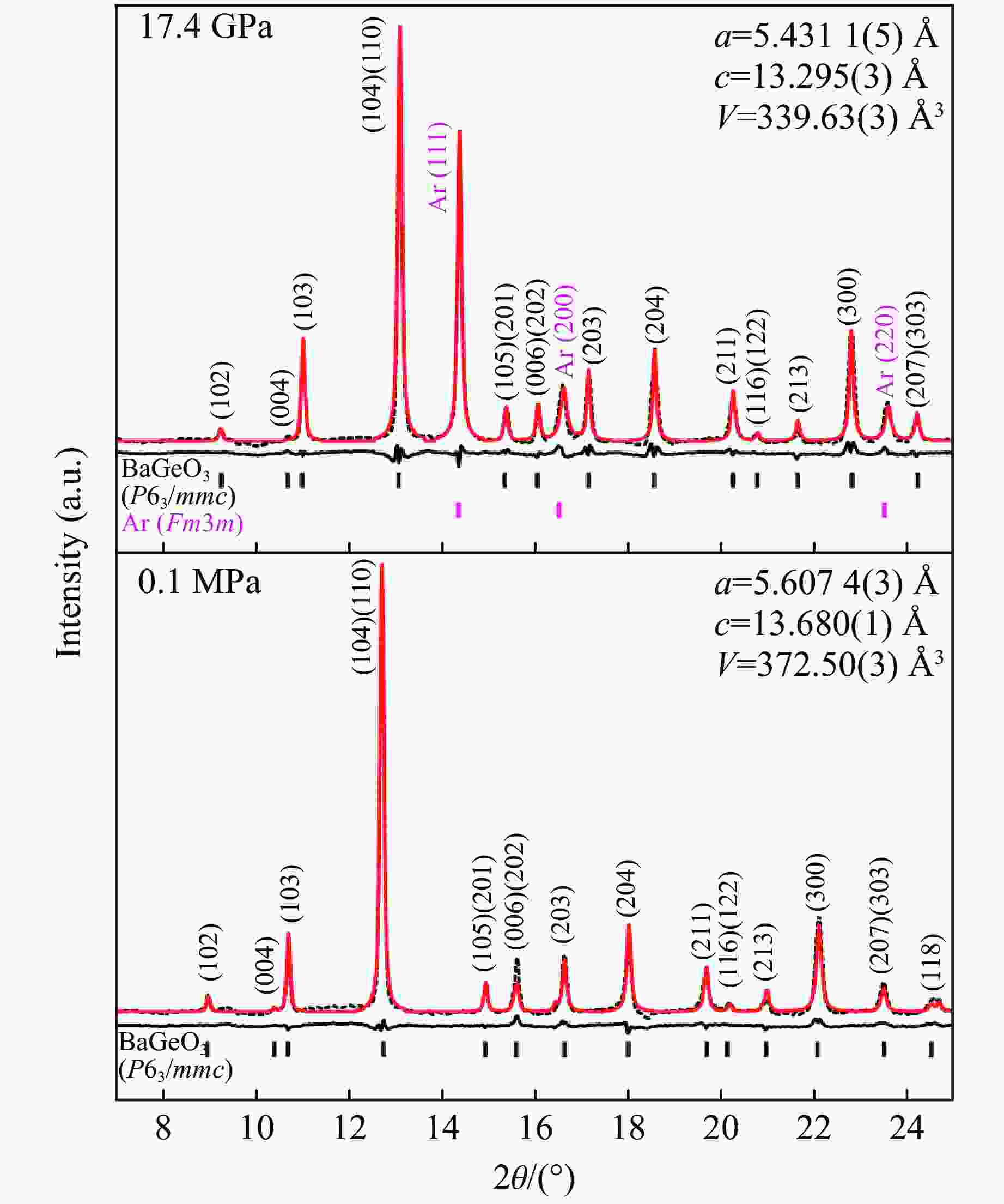 Table 1. Structural parameters of hexagonal perovskite phase BaGeO3 (6H-type) at ambient pressure and 17.4 GPa