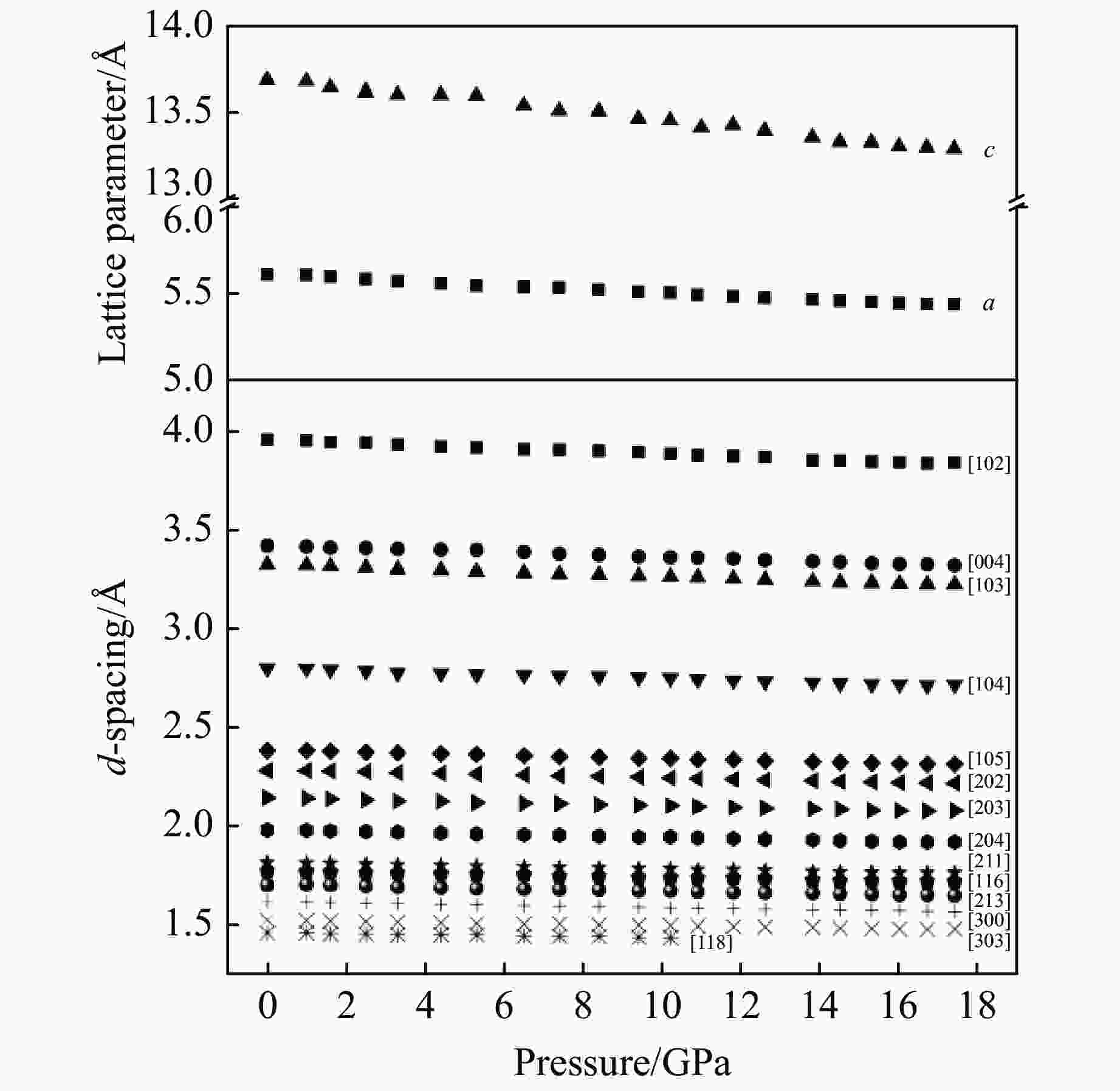 摘要: 利用金刚石对顶砧高压装置,结合显微激光双面加热技术,对BaGeO3开展了高温高压实验研究。常温常压下赝硅灰石相的BaGeO3于12 GPa左右开始非晶化。进一步加压到22 GPa并对已完全非晶化的BaGeO3样品进行(1800 ± 200) K的高温处理,拉曼光谱显示其转变成一种未见报道的高压新相。在0~17.4 GPa压力范围对BaGeO3高压新相开展同步辐射X射线衍射测试,其衍射谱可以用6H型六方钙钛矿相进行指标化,并且卸压到常压时仍保持稳定。以6H型钙钛矿相为结构模型,分别对17.4 GPa和常压下的X射线衍射谱进行Rietveld结构精修,获得其结构参数。应用二阶Birch-Murnaghan状态方程拟合实验体积-压力数据,得到其体弹模量K0 = 150(2) GPa和零压晶胞体积V0 = 373.0(3) Å3。在实验研究的基础上,对6H型钙钛矿相BaGeO3进行第一性原理理论计算,所得不同压力下的晶格常数和体积数据与实验结果符合得很好,状态方程参数K0 = 153(1) GPa,V0 = 374.2(1) Å3。20.0 GPa时计算的拉曼光谱也很好地描述了拉曼实验测量结果。研究结果补充了赝硅灰石相BaGeO3在更高温压条件下的结构相转变。6H型钙钛矿相BaGeO3的获得为进一步表征该相的物理化学性质奠定了基础,为开发高性能钙钛矿结构锗酸盐材料提供了可能性,同时对于理解硅酸盐钙钛矿结构的相变规律及稳定性、地球下地幔物理化学性质及其变化等具有重要的指示意义。