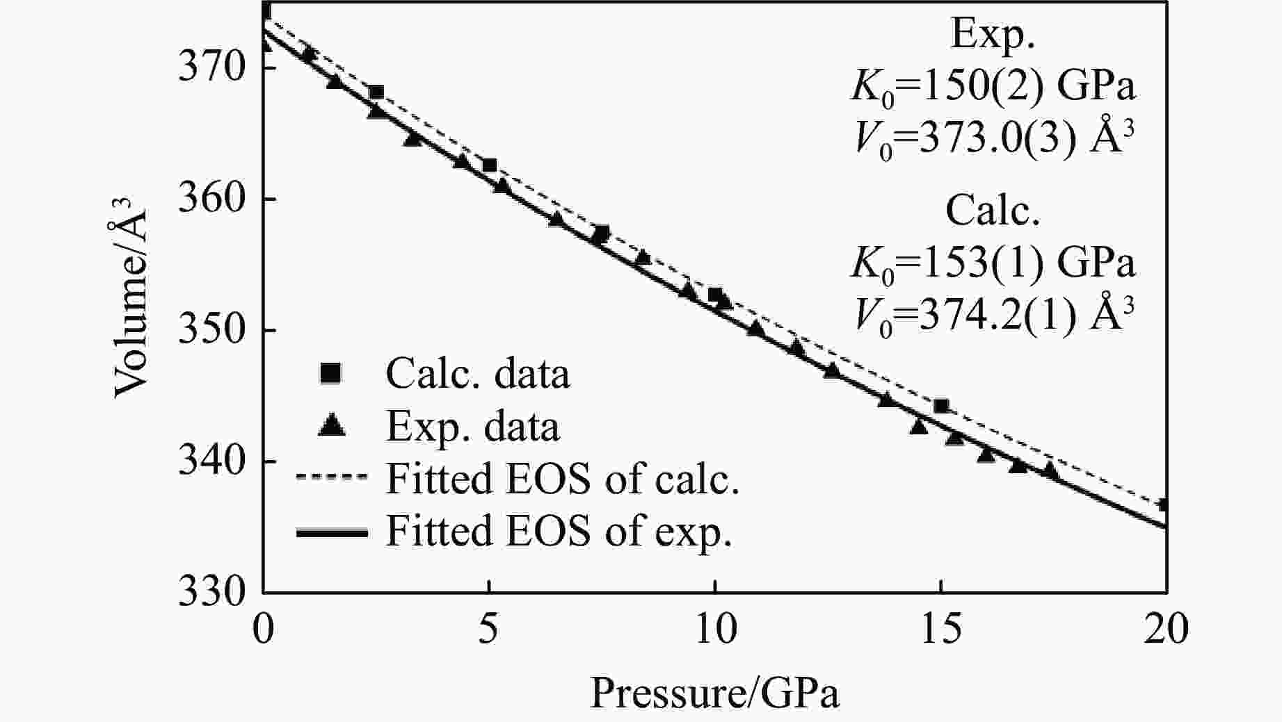 Structural parameters at 17.4 GPa Structural parameters at 0.1 MPa Atom Site x y z Atom Site x y z Ba1 2b 0 0 0.2500 Ba1 2b 0 0 0.2500 Ba2 4f 0.3333 0.6667 0.0896(5) Ba2 4f 0.3333 0.6667 0.0930(5) Ge1 2a 0 0 0 Ge1 2a 0 0 0 Ge2 4f 0.3333 0.6667 0.8392(5) Ge2 4f 0.3333 0.6667 0.8427(5) O1 6h 0.5178(27) 0.0360(5) 0.2500 O1 6h 0.4976(23) −0.0050(5) 0.2500 O2 12k 0.8342(27) 0.6680(5) 0.0730(5) O2 12k 0.8140(23) 0.6280 0.0765 Bond lengths at 17.4 GPa/Å Bond lengths at 0.1 MPa/Å Ge1―O2 Ge2―O2 Ge2―O1 Ge1―O2 Ge2―O2 Ge2―O1 1.837(19) × 6 1.961(16) × 3 1.835(17) × 3 2.088(17) × 6 1.808(14) × 3 2.075(15) × 3 Note: Numbers in parentheses indicate standard deviation. 表 2 计算得到的6H型六方钙钛矿相BaGeO3在20.0 GPa下的拉曼振动模