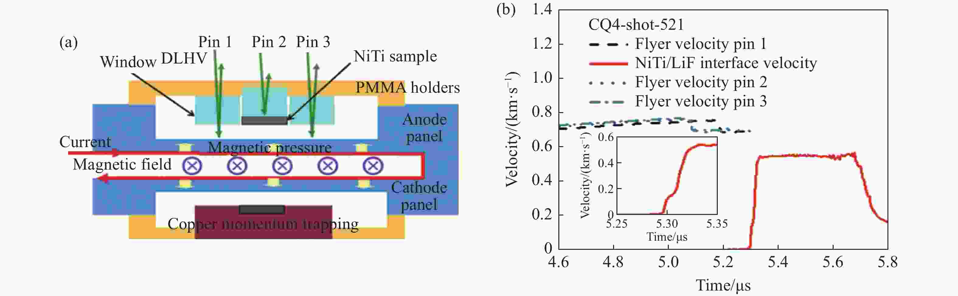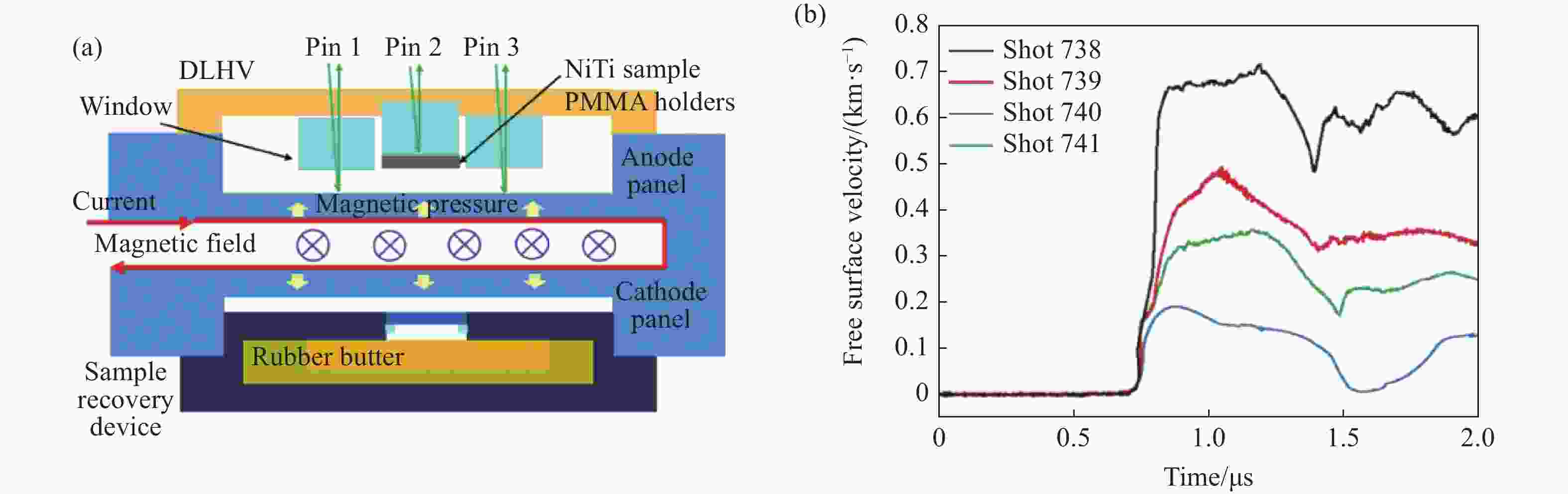 Figure  3.  Schematic of magnetically driven planar shock compression and unloading tensile experiments (a) and the free surface velocity profiles of samples (b)[23]